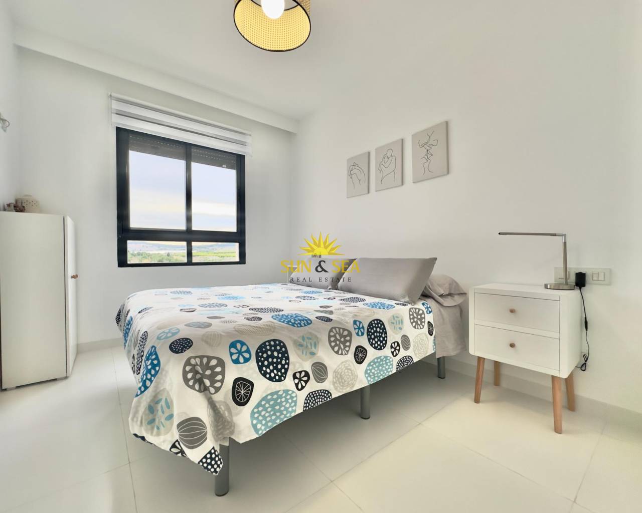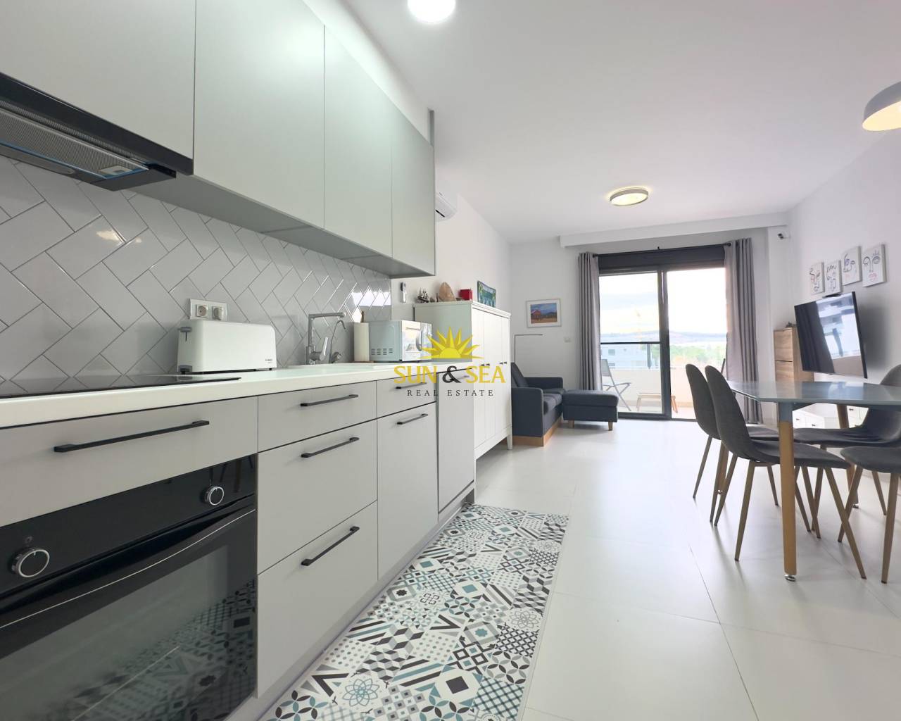 Luminoso apartamento en tercera planta y en esquina, situado en un edificio de reciente construcción en la zona nueva y en plena expansión de San Miguel de Salinas. La vivienda cuenta con 2 dormitorios y 2 baños, ofreciendo una distribución cómoda y funcional.~~La cocina está integrada en el salón, creando un espacio moderno y abierto, ideal para el día a día. Desde el salón se accede a un balcón con orientación suroeste, que disfruta de sol durante la mayor parte del día y ofrece vistas despejadas a la rambla, aportando una agradable sensación de amplitud y tranquilidad.~~El apartamento forma parte de un residencial cerrado con piscina comunitaria, perfecto para disfrutar del clima mediterráneo. Además, incluye plaza de parking y trastero, aportando un extra de comodidad y espacio de almacenaje.~~Una vivienda ideal tanto como residencia habitual, segunda vivienda o inversión, en una zona bien comunicada y con todos los servicios cercanos.~~San Miguel de Salinas es un destino cada vez más demandado en la Costa Blanca, ideal para la inversión en alquiler turístico. Su ubicación estratégica, cerca de las playas de Orihuela Costa, campos de golf y servicios, junto a su clima soleado durante todo el año, garantiza una alta demanda tanto vacacional como de larga estancia.~