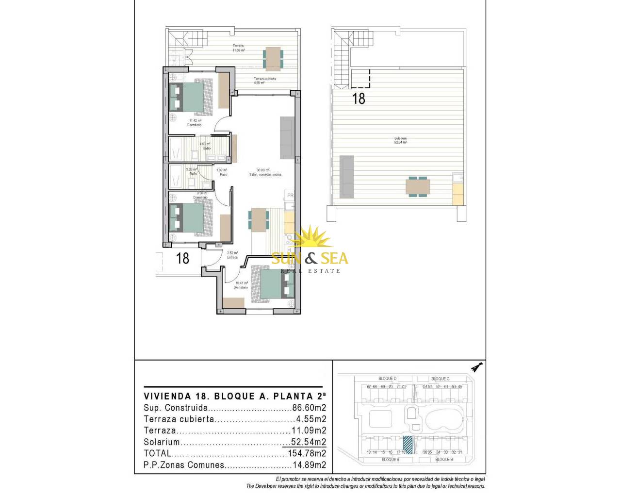 Modernos apartamentos de nueva construcción en San Cayetano, Torrepacheco, Murcia Vida contemporánea en un tranquilo entorno mediterráneo Este exclusivo complejo residencial de nueva construcción está situado en San Cayetano, Murcia, en el municipio de Torre Pacheco, a solo 9 km del mar y rodeado de varios campos de golf de renombre. El proyecto combina tranquilidad, comodidad y diseño contemporáneo, ofreciendo un entorno ideal para vivir de forma permanente, pasar las vacaciones o invertir en la Costa Cálida. La promoción consta de 72 apartamentos de 2 y 3 dormitorios y 2 baños, uno de ellos en suite, distribuidos en cuatro modernos edificios. También está prevista una segunda fase con bungalows y villas, lo que añadirá aún más valor y atractivo a la zona. Zonas comunes diseñadas para el relax y el bienestar Los residentes disfrutarán de espacios comunes cuidadosamente ajardinados que incluyen dos piscinas, hermosos jardines y un gimnasio totalmente equipado. Estas zonas crean un entorno agradable y social donde los vecinos pueden relajarse, hacer ejercicio y disfrutar del estilo de vida mediterráneo. El complejo residencial también cuenta con 40 kW de paneles solares fotovoltaicos que ayudan a sufragar los gastos de electricidad de la comunidad, contribuyendo a un entorno de vida más sostenible y eficiente desde el punto de vista energético. Apartamentos con espacios exteriores privados y solárium Cada apartamento está diseñado para aprovechar al máximo la vida al aire libre. Las propiedades de la planta baja incluyen jardines privados, los apartamentos de la primera planta ofrecen amplias terrazas y las viviendas de la última planta se benefician tanto de una terraza como de un solárium privado en la azotea. Todas las propiedades incluyen una cocina de verano en la terraza o el solárium, perfecta para disfrutar del sol durante todo el año. Todas las viviendas cuentan con una plaza de aparcamiento exterior y un trastero privado en el sótano, lo que añade comodidad y practicidad. Características de calidad e instalaciones energéticamente eficientes Estos apartamentos de nueva construcción se entregan con acabados de calidad e instalaciones modernas para garantizar el confort y la funcionalidad, incluyendo: Cocina totalmente equipada con electrodomésticos Baños totalmente equipados con muebles, espejos, iluminación y mamparas de ducha Preinstalación para aire acondicionado por conductos Sistema aerotérmico para agua caliente La combinación de materiales modernos y sistemas energéticamente eficientes hace que estas viviendas sean ideales para su uso durante todo el año. Excelente ubicación cerca de golf, playas y servicios San Cayetano es un pueblo tranquilo y bien comunicado, con servicios locales, tiendas y comercios. Su ubicación estratégica permite un fácil acceso a las playas, los campos de golf y las principales conexiones de transporte. Las distancias clave a los puntos de interés incluyen: Playas del Mar Menor 9 km Roda Golf 6 km Golf La Serena 14 km Los Alcázares 10 km Cartagena 30 km Aeropuerto de Murcia Corvera 25 km Aeropuerto de Alicante 90 km Asegure hoy mismo su propiedad en San Cayetano Este moderno complejo residencial ofrece una excelente oportunidad para disfrutar de la vida mediterránea en una zona tranquila y bien comunicada. Póngase en contacto con nosotros hoy mismo para obtener más información y reservar su apartamento de nueva construcción en San Cayetano.