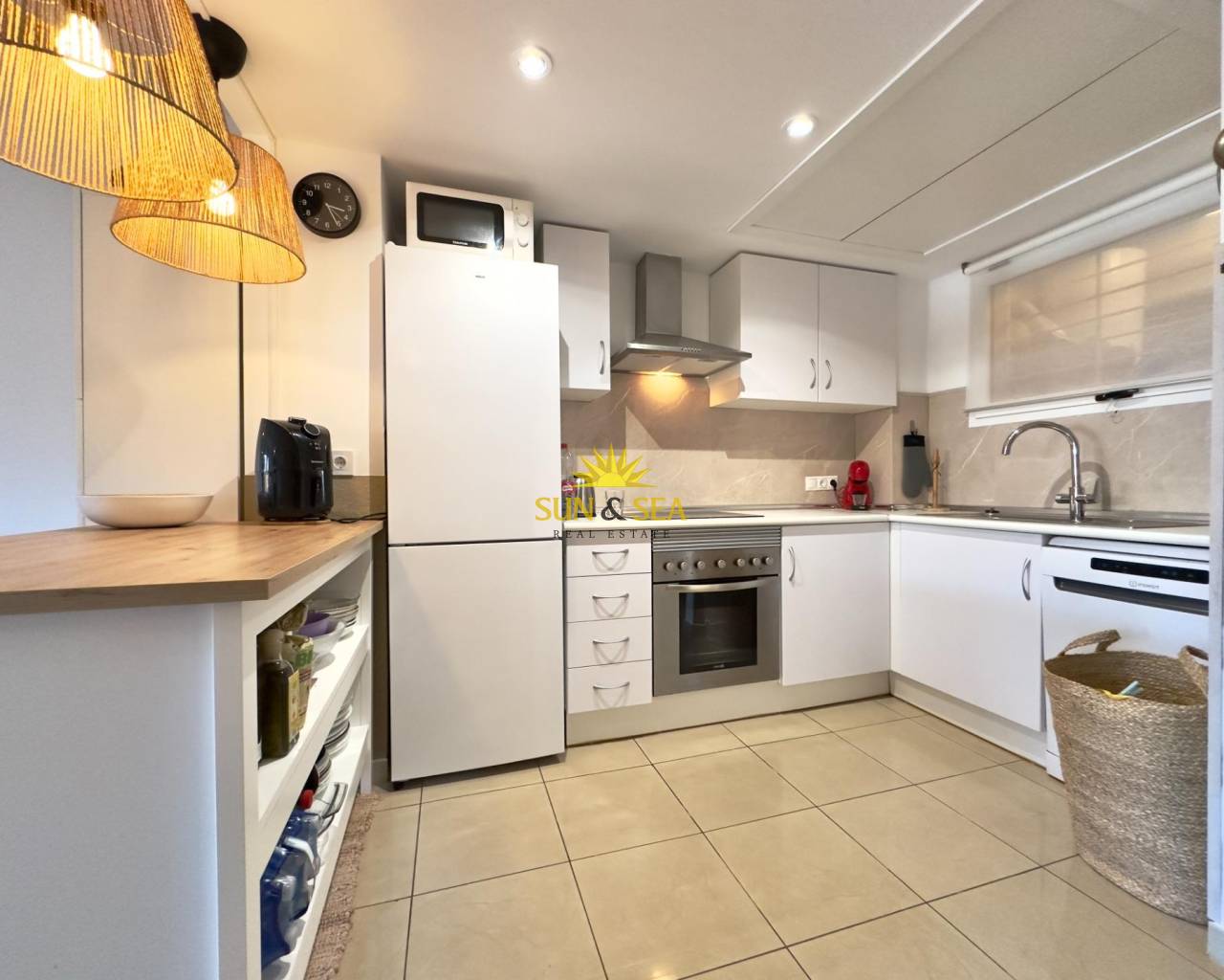 Este encantador apartamento, ubicado en la segunda planta de un moderno complejo residencial cerrado, ofrece un estilo de vida cómodo y tranquilo. Con una distribución bien pensada, la vivienda cuenta con dos dormitorios amplios. Ambos dormitorios comparten un baño espacioso y bien iluminado, con acceso directo desde cada habitación, lo que aporta una gran funcionalidad para su uso diario.~~El salón, amplio y luminoso, se conecta con una cocina americana completamente equipada, que incluye electrodomésticos, perfectos para quienes disfrutan de la cocina abierta. Este diseño de concepto abierto facilita la integración de los espacios, haciendo que el ambiente sea más amplio y acogedor. Además, desde el salón, se accede a un balcón de 15 metros, ideal para disfrutar de vistas despejadas y de un buen momento al aire libre, ya sea para tomar el sol, leer o compartir una comida al fresco.~~El apartamento también cuenta con un práctico lavadero, que aporta un toque de funcionalidad adicional al hogar, permitiendo organizar mejor el espacio y mantener todo en orden.~~El complejo residencial El Bosque es muy popular, con acceso restringido y zonas comunes muy cuidadas. Uno de los principales atractivos del lugar es su gran piscina, rodeada de césped natural, perfecta para disfrutar durante los cálidos días de verano. La piscina ofrece un espacio para relajarse, hacer ejercicio o pasar tiempo con la familia y amigos.~~Por último, el apartamento incluye una plaza de parking privada, lo que añade un plus de comodidad y seguridad al contar con espacio exclusivo para el estacionamiento de vehículos. Este apartamento es ideal para quienes buscan una vivienda tranquila, moderna y bien equipada en una ubicación residencial exclusiva.