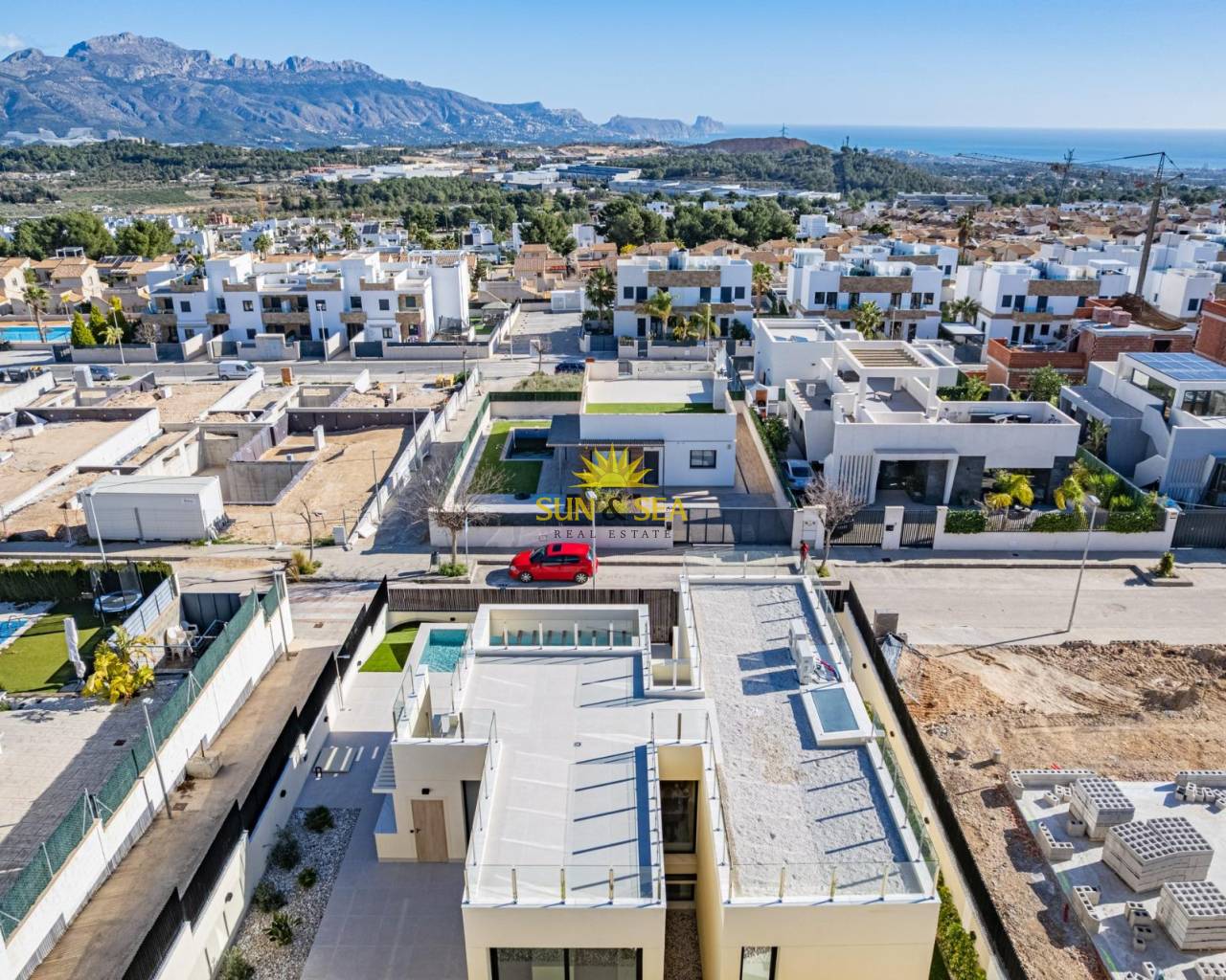 Villa nueva llave en mano con vistas al mar en La Alberca Polop Villa moderna de lujo en un entorno natural de montaña Esta villa contemporánea llave en mano se encuentra en La Alberca, una tranquila zona residencial de Polop, rodeada de bosques y montañas. Situada en un entorno elevado, la propiedad disfruta de vistas panorámicas al mar Mediterráneo, las montañas y el centro histórico de Polop. La villa ofrece privacidad, tranquilidad y excelentes conexiones con la costa y las localidades cercanas. Polop es un encantador pueblo de la comarca de la Marina Baixa, en la Costa Blanca, conocido por su carácter tradicional y su entorno natural. La propiedad está cerca de todos los servicios de La Nucía, incluyendo tiendas, restaurantes, centros deportivos y colegios, mientras que las playas y las animadas localidades costeras se encuentran a poca distancia en coche. Amplia distribución entre la planta principal, el sótano y el solárium La villa se distribuye en una planta principal, un sótano y un solárium en la azotea, lo que ofrece un amplio espacio habitable y flexibilidad. En la planta principal, un acogedor vestíbulo de entrada con armario empotrado conduce a dos dormitorios en suite, incluida una suite principal con puertas ventanas elevables que dan a un balcón Juliette y a una terraza. La sala de estar y el comedor de planta abierta conectan a la perfección con una terraza cubierta con pérgola y una piscina privada de agua salada. El sótano cuenta con dos dormitorios adicionales con baño, grandes ventanas, una sala de juegos o cine flexible con conexiones de agua y electricidad para una zona de bar, un lavadero totalmente equipado con electrodomésticos Haier y dos cuartos técnicos. El solárium de la azotea ofrece un amplio espacio al aire libre con vistas panorámicas al mar y está preparado para la futura instalación de paneles solares. Una cocina al aire libre, múltiples armarios y un jardín de estilo mediterráneo con riego automático completan el exterior. Características de alta gama y eficiencia energética Esta villa destaca por sus acabados de primera calidad y sus instalaciones avanzadas, entre las que se incluyen: Isla de cocina central con electrodomésticos BOSCH integrados Encimeras de piedra natural en interiores y exteriores Preinstalación de calefacción por suelo radiante Sistema de aire acondicionado aerotérmico Mitsubishi Clasificación de eficiencia energética Clase A Preinstalación para sistema domótico Piscina de agua salada con calefacción opcional Aparcamiento privado para dos vehículos Las grandes ventanas con cristales de protección solar maximizan la luz natural y garantizan el confort y la seguridad. Excelente ubicación y distancias Centro de Polop a 2 km La Nucia a 4 km Benidorm a 12 km Altea a 10 km Playas a 10 km Villaitana Golf a 14 km Aeropuerto de Alicante a 65 km Asegúrese la casa de sus sueños en Polop Esta excepcional villa llave en mano combina privacidad, diseño y vistas panorámicas en una de las zonas más atractivas del interior de la Costa Blanca. Póngase en contacto con nosotros hoy mismo para concertar una visita privada y hacer de esta lujosa villa en La Alberca Polop su nuevo hogar.