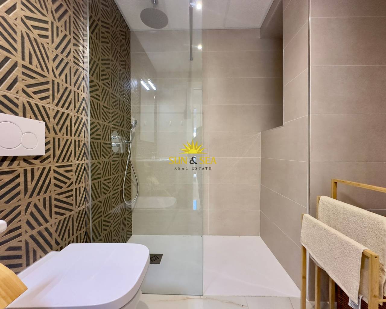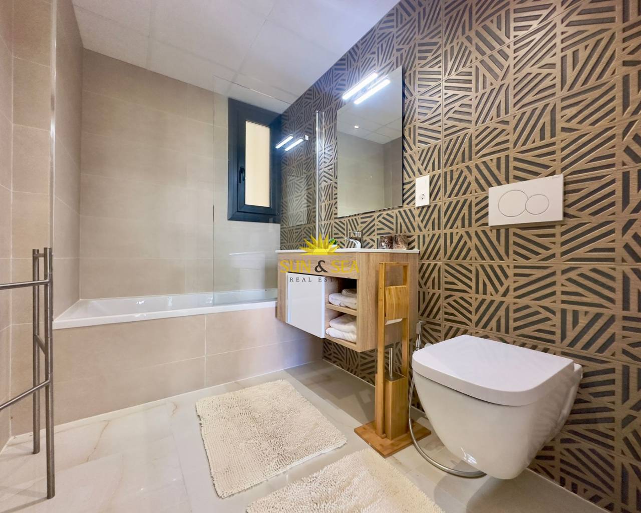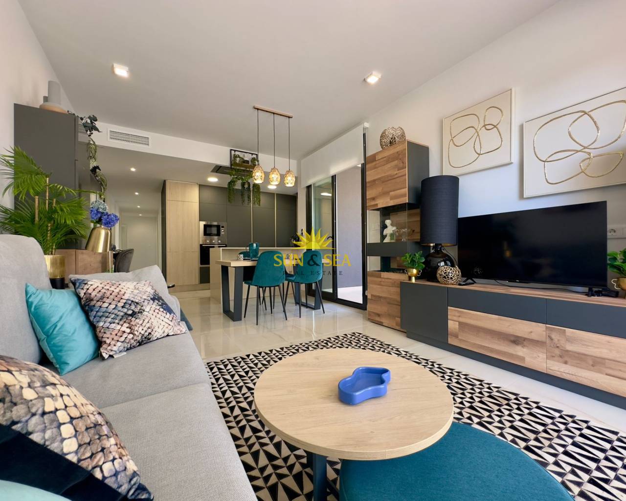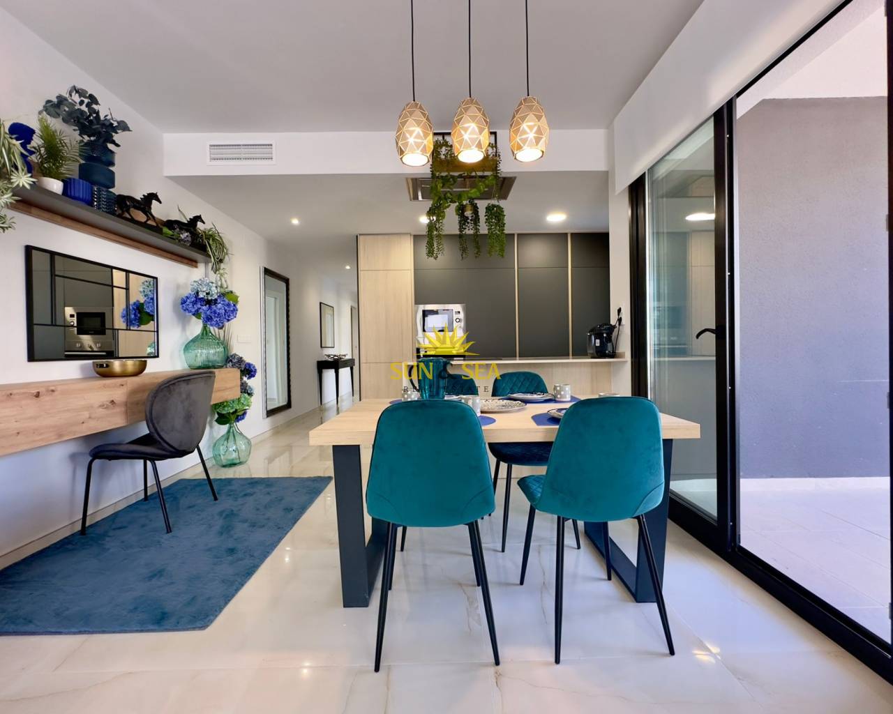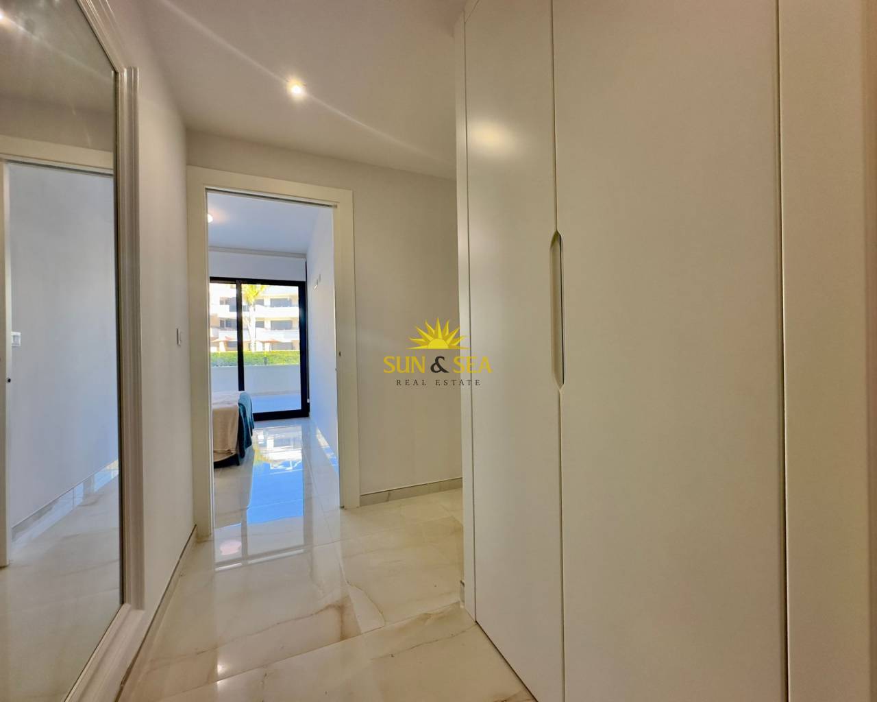 Descubre esta espectacular vivienda nueva a estrenar en el exclusivo residencial Amanecer Deluxe, ubicado en la codiciada zona de Playa Flamenca.~~Se trata de un amplio apartamento en planta baja que destaca por su impresionante terraza privada de aproximadamente 136 m2, ideal para disfrutar del clima mediterráneo todo el año, organizar reuniones al aire libre o simplemente relajarse con vistas despejadas al mar y a las zonas verdes.~~Características principales:~~3 dormitorios amplios, todos exteriores~~2 baños completos (uno de ellos en suite)~~Luminoso salón-comedor con acceso directo a la terraza~~Cocina moderna~~Vistas al mar y a jardines~~2 plazas de garaje incluidas~~Trastero incluido en el precio~~ Zonas comunes exclusivas:~~Amplias zonas verdes y ajardinadas~~Piscina comunitaria~~Parque infantil~~Gimnasio totalmente equipado~~Sauna~~Una vivienda perfecta tanto como residencia habitual, segunda vivienda o inversión, gracias a su amplitud, privacidad y excelentes prestaciones.