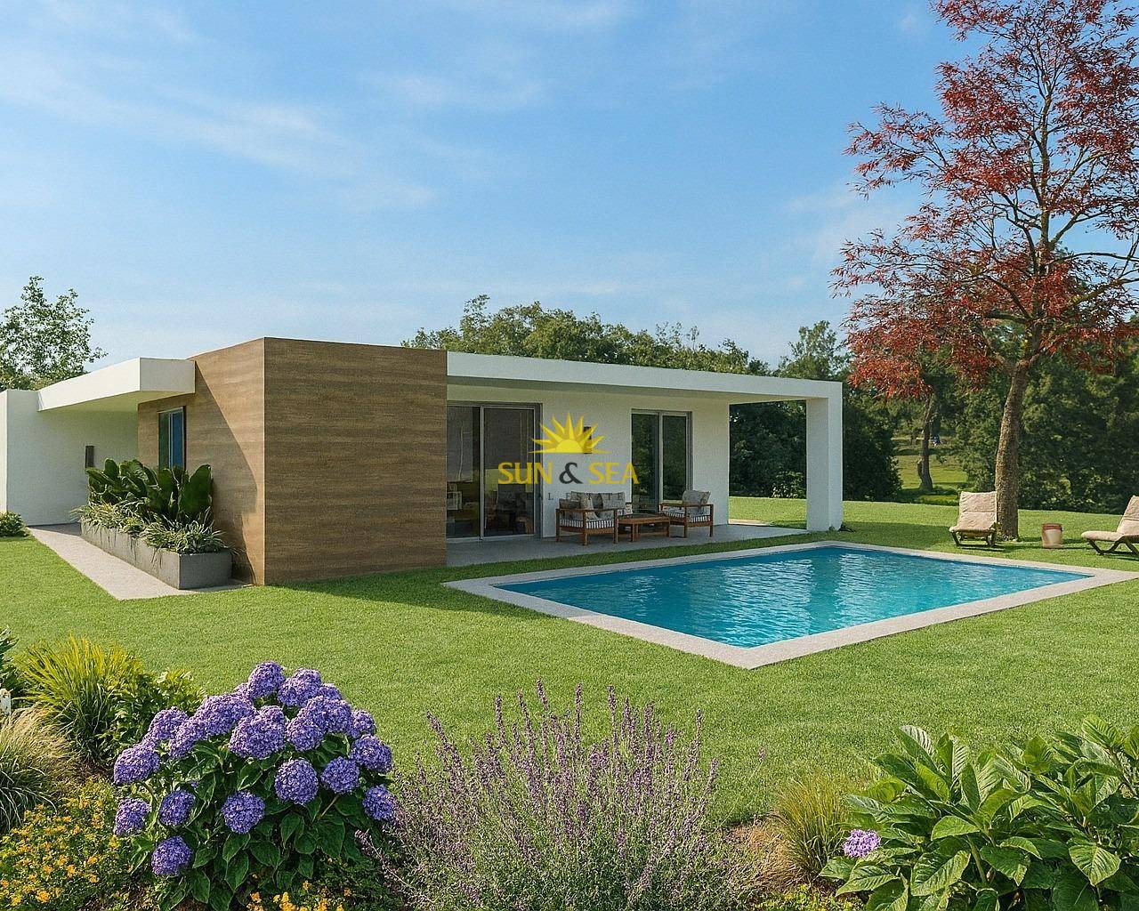 VILLAS DE OBRA NUEVA CON PISCINA PRIVADA EN MONFORTE DEL CID Villas de obra nueva en Monforte del Cid, con el campo de golf a sólo 3 minutos de casa y justo al lado de las ciudades de Alicante y Elche, donde encontrará una amplia oferta cultural, gastronómica, de ocio y por supuesto de costa. Las playas de arena dorada del Mediterráneo a un paso de tu nuevo hogar, un espacio donde disfrutar de días de sol y mar en cualquier momento. Villas situadas a 3 minutos del centro deportivo del campo de golf Alenda Golf, lo que la convierte en la ubicación perfecta para disfrutar de la paz de una urbanización tranquila pero tener todos los servicios al lado de casa (A tan sólo 12 minutos del Aeropuerto de Alicante-Elche). La urbanización es una comunidad que reúne lo mejor de la vida moderna y la tranquilidad del entorno natural (Sin gastos de comunidad). Descubra la elegancia y el confort de este precioso chalet independiente de 180 m2, diseñado para ofrecerle un estilo de vida excepcional, todo en planta baja. Situada en la prestigiosa Urbanización, esta propiedad le ofrece una experiencia de vida única y de calidad. En parcelas desde 600 m2, proporcionándole un amplio espacio para disfrutar tanto del interior como del exterior. Disfrute de la privacidad que le ofrece este chalet independiente, donde podrá relajarse en su propio jardín con piscina privada incluida. La casa se distribuye en dos grandes zonas: Zona de día: Donde encontramos un amplio salón comedor con cocina abierta tipo office (muebles de cocina incluidos) que conecta con el amplio y moderno porche a través de sus dos grandes ventanales, dando paso a la zona exterior ajardinada y por qué no... a la piscina. La luz inunda cada rincón gracias a los grandes ventanales del salón, que se abren al porche, un espacio moderno y funcional que invita a disfrutar al máximo del aire libre. Imagina pasar las tardes con la familia y los amigos, rodeado de un entorno sereno y natural. Como espacio extra, cuenta con una zona de lavandería estratégicamente situada en la distribución de la vivienda donde será muy fácilmente accesible desde cualquier punto de la casa. Zona de noche o descanso: En esta zona encontramos 4 dormitorios. El dormitorio principal cuenta con un amplio vestidor y baño en suite. Además, un segundo baño para dar servicio al resto de dormitorios y vivienda y un aseo. Aquí no sólo encontrará una comunidad residencial, sino un lugar donde la naturaleza y la elegancia se entrelazan para proporcionarle un estilo de vida inigualable. Ya sea para establecer su residencia permanente, para disfrutar de una casa de vacaciones o si desea invertir en su futuro, esta villa es perfecta para usted. Urbanización privada cercana a las principales ciudades de la provincia de Alicante, a 15 minutos en coche de Elche y Alicante, así como del aeropuerto y de las mejores playas. La urbanización se encuentra en un entorno tranquilo cerca del campo de golf Alenda en Monforte del Cid.