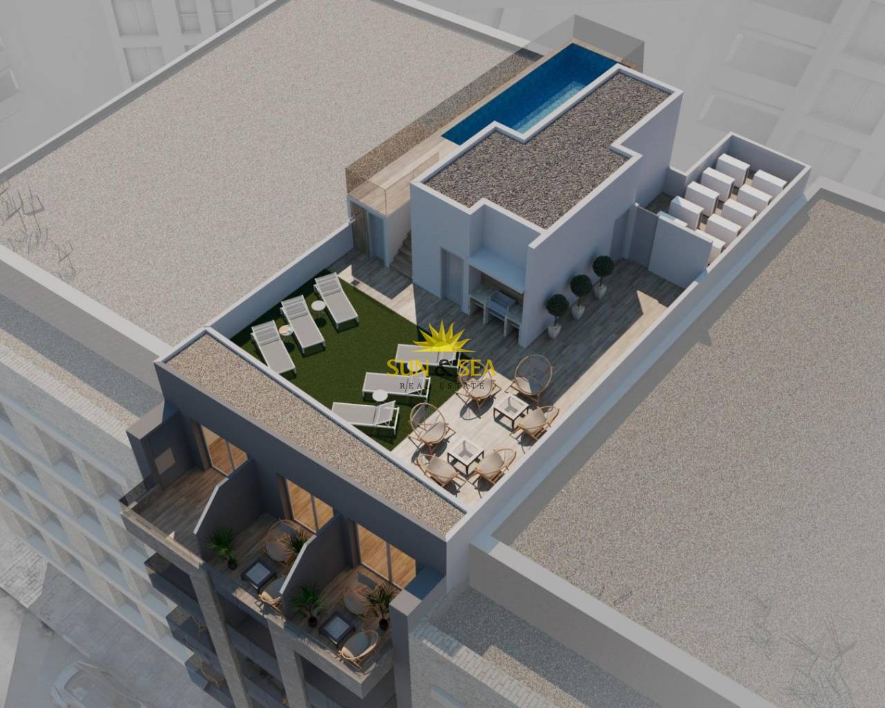Apartamentos de nueva construcción en Torrevieja a solo 100 m de la Playa de Los Locos Ubicación privilegiada en el corazón de Torrevieja Descubra estos apartamentos y áticos a estrenar en una de las zonas más cotizadas de Torrevieja, a solo 100 m de la Playa de Los Locos. Situado en el centro de la ciudad, este animado barrio ofrece todos los servicios esenciales a poca distancia, incluyendo supermercados, tiendas, restaurantes, cafeterías y transporte público. Torrevieja es una conocida ciudad costera de la Costa Blanca, famosa por su clima mediterráneo templado, su animado ambiente y su estilo de vida junto al mar durante todo el año. Apartamentos modernos con distribuciones espaciosas Esta exclusiva promoción nueva consta de solo 17 apartamentos y áticos entre estudios o apartamentos de 2 dormitorios, diseñados para ofrecer comodidad, funcionalidad y estilo contemporáneo. Todas las viviendas incluyen una cocina abierta conectada con el salón-comedor, equipada con electrodomésticos, lo que crea interiores luminosos y acogedores. Los dormitorios cuentan con armarios empotrados y los baños están totalmente equipados con muebles, espejos, suelo radiante y mamparas de ducha. Acabados de calidad y características de eficiencia energética Los apartamentos están construidos con materiales de alta calidad y un fuerte enfoque en la eficiencia energética. La carpintería exterior de aluminio incluye tecnología de rotura de puente térmico y doble acristalamiento para el aislamiento térmico y acústico. Las persianas motorizadas añaden comodidad y seguridad. Cada vivienda cuenta con preinstalación de aire acondicionado y calefacción por conductos, puertas de entrada reforzadas, pack de iluminación y puertas interiores lacadas en blanco. El agua caliente se produce mediante un sistema aerotérmico, lo que reduce el consumo de energía y mejora la sostenibilidad. Solárium en la azotea con piscina comunitaria Los residentes pueden disfrutar de un solárium exclusivo en la azotea con piscina comunitaria, barbacoa, sauna y zona de solarium con tumbonas, accesible por ascensor o escaleras. Esta zona privada es perfecta para relajarse, tomar el sol y disfrutar de las vistas panorámicas de la ciudad. Ofrece un refugio tranquilo sobre las animadas calles de Torrevieja y añade un valor significativo a la promoción. Estilo de vida y alrededores de Torrevieja Torrevieja es conocida por su extenso litoral, sus playas de arena y sus emblemáticas salinas. El Parque Natural de las Lagunas de La Mata y Torrevieja se encuentra a unos 5 km y ofrece rutas de senderismo y paisajes únicos. Varios campos de golf, como Villamartin Golf y Las Colinas Golf, se encuentran a entre 12 y 18 km. El puerto deportivo y el puerto de Torrevieja están a aproximadamente 2 km. El aeropuerto de Alicante está a unos 45 km y el aeropuerto internacional de Murcia a unos 65 km, ambos con excelentes conexiones europeas. Su hogar en la costa le espera No pierda esta oportunidad de adquirir un moderno apartamento de nueva construcción cerca de la playa en Torrevieja. Póngase en contacto con nosotros hoy mismo para obtener más información o concertar una visita privada.