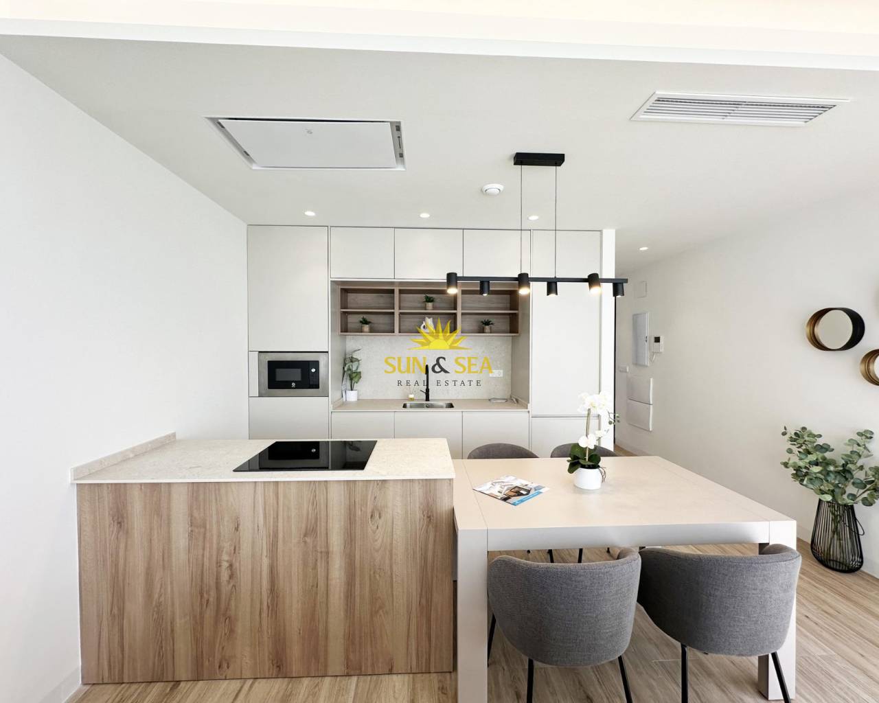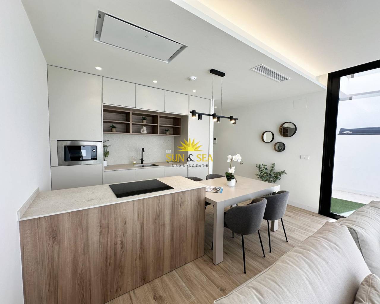 Exclusivas villas de nueva construcción a 300 m de la playa en Torre de la Horadada Vida costera de lujo en una ubicación privilegiada Descubra este exclusivo proyecto de villas de nueva construcción en Torre de la Horadada, una de las localidades costeras más cotizadas del sur de Alicante. Situadas a solo 300 m del mar Mediterráneo y a poca distancia de tiendas, restaurantes y servicios cotidianos, estas villas ofrecen una oportunidad excepcional para disfrutar del estilo de vida de la Costa Blanca. Torre de la Horadada es conocida por su ambiente relajado, su precioso paseo marítimo y sus playas de arena fina, lo que la convierte en un lugar ideal tanto para vivir como para pasar las vacaciones. Última villa llave en mano totalmente equipada Esta urbanización boutique consta de solo cuatro villas independientes, y la última unidad disponible está llave en mano y totalmente amueblada. La villa se entrega completa con muebles, electrodomésticos y aire acondicionado por conductos, lo que le permite mudarse inmediatamente y empezar a disfrutar de su nueva casa junto al mar. Situada en una parcela privada de aproximadamente 207 m2, la villa ofrece alrededor de 130 m2 de superficie construida distribuidos en planta baja, primera planta y solárium privado en la azotea. Diseño moderno con piscina privada y solárium La villa presenta un diseño contemporáneo con espacios abiertos y luminosos. En el interior, encontrará tres amplios dormitorios y tres baños, un salón-comedor con cocina abierta y acceso directo al jardín y a la piscina privada. El solárium de la azotea ofrece un espacio ideal para relajarse, tomar el sol o disfrutar de las vistas, creando una zona de estar al aire libre perfecta durante todo el año. Especificaciones de alta calidad y comodidad La propiedad está construida con altos estándares e incluye una puerta de entrada reforzada, persianas motorizadas en los dormitorios, una piscina privada y un sistema básico de domótica para controles electrónicos. El aire acondicionado por conductos está completamente instalado, lo que garantiza el confort en todas las estaciones. Una plaza de aparcamiento privada dentro de la parcela añade comodidad y seguridad. Torre de la Horadada y alrededores Torre de la Horadada ofrece un encantador entorno costero con un largo paseo marítimo, puertos deportivos y una amplia gama de restaurantes, bares y tiendas locales. Las cercanas playas de Torre de la Horadada y Mil Palmeras se encuentran entre las mejores de la zona, ideales para nadar, practicar deportes acuáticos, snorkel y buceo. La zona está bien comunicada y rodeada de campos de golf, centros comerciales y opciones de ocio. Distancias a los principales puntos de interés Playa: 0,3 km Zona comercial Plaza Nueva: 0,2 km Lo Romero Golf: 7 km Puerto deportivo de Torre de la Horadada: 1,5 km Aeropuerto de Murcia Corvera: 45 km Aeropuerto de Alicante: 50 km Su nuevo hogar junto al Mediterráneo le espera Esta villa llave en mano en Torre de la Horadada es una oportunidad única para adquirir una vivienda moderna a pocos pasos de la playa. Póngase en contacto con nosotros hoy mismo para concertar una visita y asegurarse esta excepcional villa de nueva construcción en la Costa Blanca.
