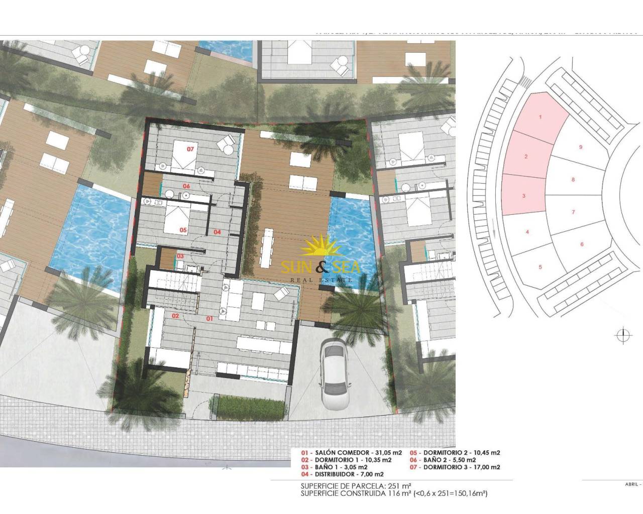 Villas de nueva construcción en Roldán: vida moderna con estilo mediterráneo Villas exclusivas de nueva construcción en El Alba Mediterranean Resort Descubra esta colección limitada de 3 villas independientes de nueva construcción en Roldán, situadas en el prestigioso El Alba Mediterranean Resort. Diseñadas en una sola planta para ofrecer el máximo confort y funcionalidad, cada villa ofrece la posibilidad de elegir entre 2 o 3 dormitorios e incluye 2 baños, una piscina privada y un solárium en la azotea. Estas viviendas contemporáneas combinan un elegante diseño interior con exteriores de inspiración mediterránea con elementos de piedra natural y madera. El resultado es una mezcla perfecta de estilo, calidad y comodidad en un entorno tranquilo y bien comunicado. Interiores amplios, luminosos y funcionales Cada villa cuenta con: Salón-comedor diáfano con moderna cocina americana Armarios empotrados en todos los dormitorios Jardín privado con piscina Solárium en la azotea ideal para tomar el sol y disfrutar al aire libre Dos plazas de aparcamiento privadas Preinstalación de aire acondicionado por conductos Cocinas equipadas con armarios altos y bajos La distribución en una sola planta garantiza una fácil accesibilidad y una distribución práctica en toda la vivienda, lo que hace que estas villas sean ideales tanto para vivir todo el año como para pasar las vacaciones. Ubicación inmejorable en Roldán, Murcia El Alba Mediterranean Resort es una comunidad residencial cerrada que ofrece una amplia gama de servicios, entre los que se incluyen: Club social con bar y salón Piscina comunitaria Pistas de pádel Zonas ajardinadas y calles peatonales Situado a pocos pasos del centro de Roldán, los residentes tienen acceso a supermercados, bancos, restaurantes y cafeterías. La tranquila localidad de Roldán ofrece todos los servicios necesarios para el día a día, conservando al mismo tiempo el encanto de un pueblo tranquilo. Lugares de interés cercanos Playas del Mar Menor: 15 km Campo de golf Terrazas de la Torre: 4 km La Torre Golf Resort: 6 km Centro comercial Dos Mares: 25 km Aeropuerto Internacional de Murcia (RMU): 20 km Centro de Cartagena: 35 km Centro de Murcia: 36 km Esta región de Murcia es conocida por su clima templado, su belleza natural y su alta calidad de vida. Gracias a las excelentes conexiones por carretera, se puede llegar a las ciudades, playas y campos de golf cercanos en pocos minutos. La casa de sus sueños al sol le está esperando. Póngase en contacto con nosotros ahora para concertar una visita o solicitar más información.