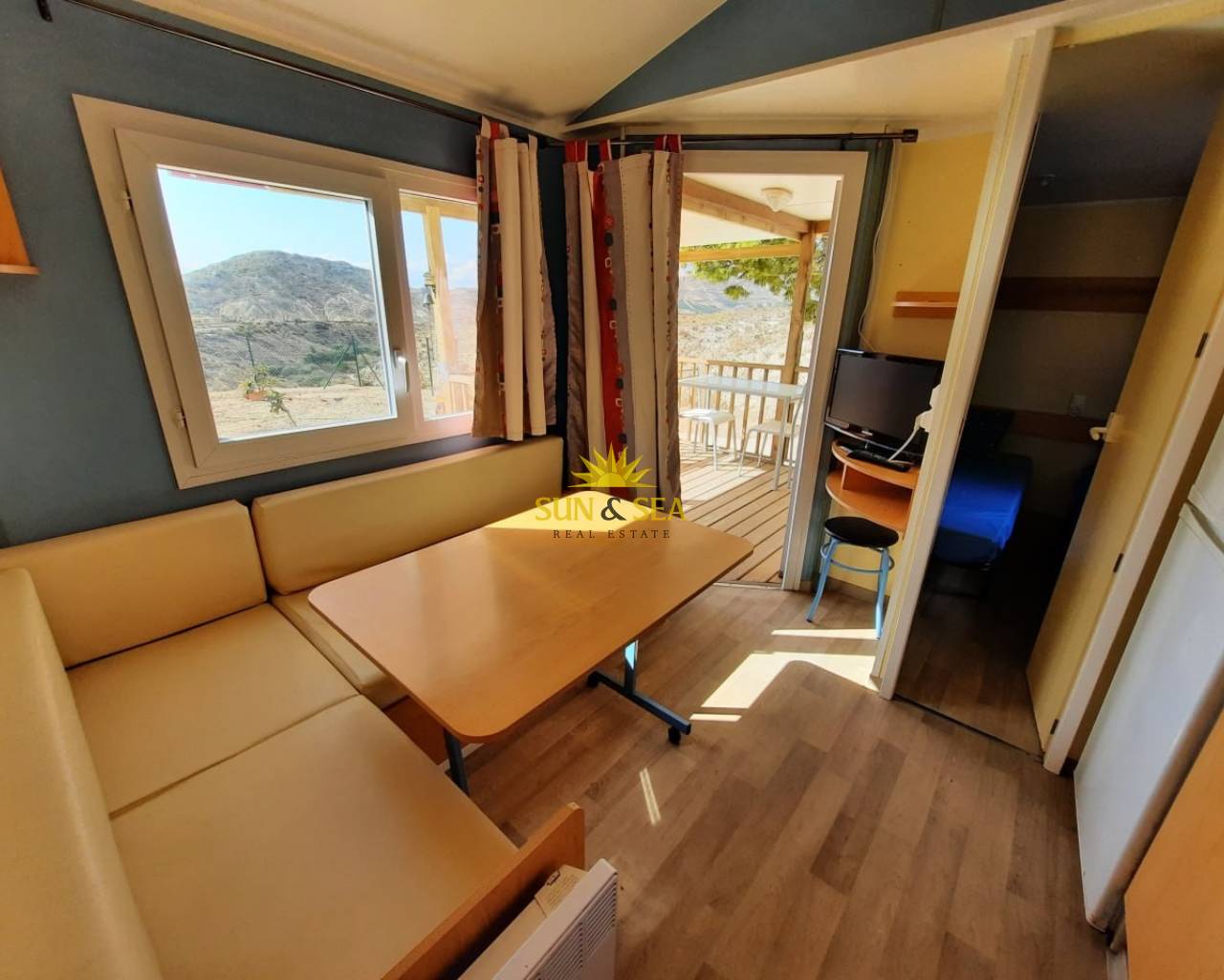 La propiedad consiste en una casa móvil de 30 m², perfectamente distribuida para aprovechar al máximo cada rincón, ubicada sobre una parcela privada de 175 m² que ofrece múltiples posibilidades de uso al aire libre.