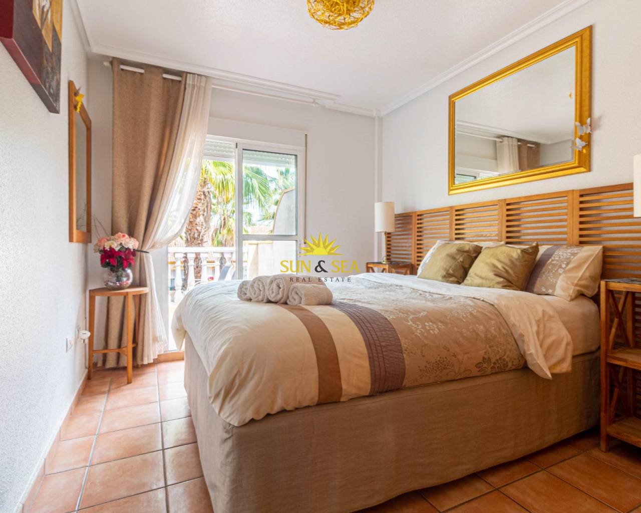 Este adosado en venta en el residencial Aldeas de Aguamarina, en Cabo Roig, es una verdadera joya en la Costa Blanca. Con licencia turística, esta propiedad cuenta con 3 dormitorios y 2 baños, lo que la convierte en un espacio perfecto para disfrutar de unas vacaciones o para vivir todo el año. ~~La vivienda dispone de una terraza, jardín y solarium, ofreciendo múltiples espacios al aire libre para relajarse, tomar el sol y disfrutar de las vistas laterales al mar. Rodeado de palmeras, este adosado ofrece un ambiente tropical y tranquilo que invita al descanso y la relajación.~~La ubicación es inmejorable, a un paso de todo tipo de servicios como tiendas, restaurantes y supermercados, lo que garantiza una vida cómoda y práctica. Además, la proximidad a la playa hace que sea fácil disfrutar del mar y del sol durante todo el año.~~La propiedad cuenta con aire acondicionado para mayor comodidad, y se entrega parcialmente amueblada, lo que facilita la mudanza y permite disfrutar de la vivienda de inmediato.~~Este adosado en el residencial Aldeas de Aguamarina es una oportunidad única para aquellos que buscan una propiedad lista para disfrutar en la hermosa Costa Blanca. No dudes en visitar esta propiedad y descubrir todas las comodidades y encantos que tiene para ofrecer. ¡Una verdadera joya en un entorno paradisíaco!