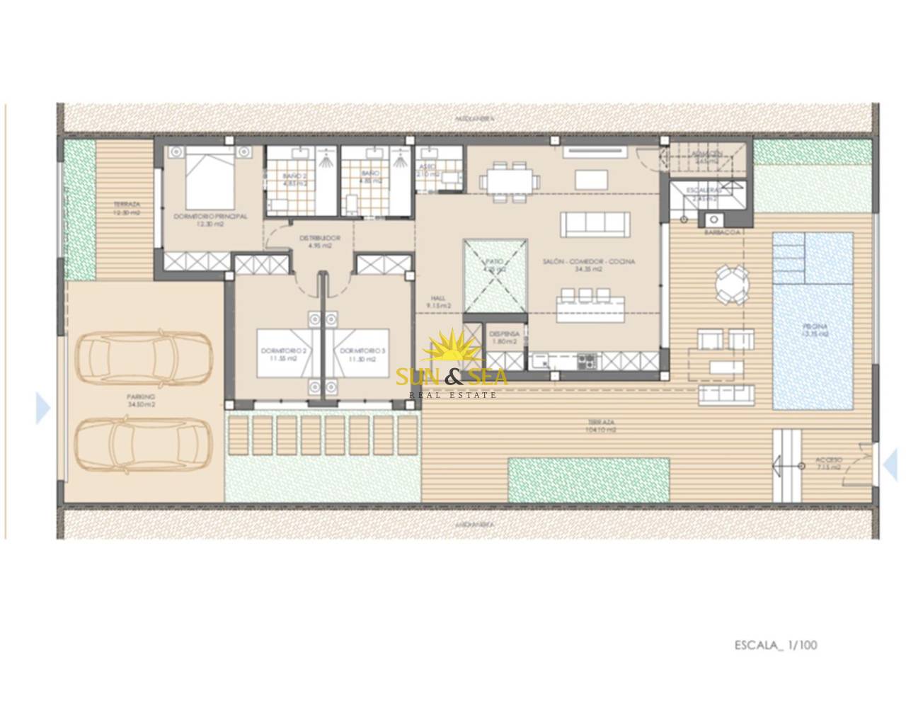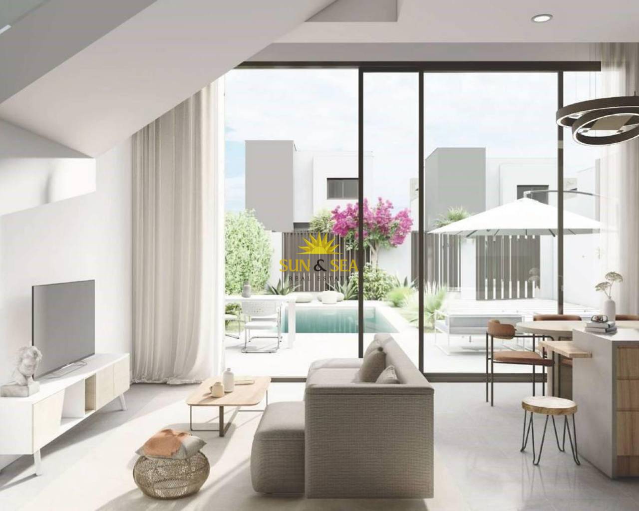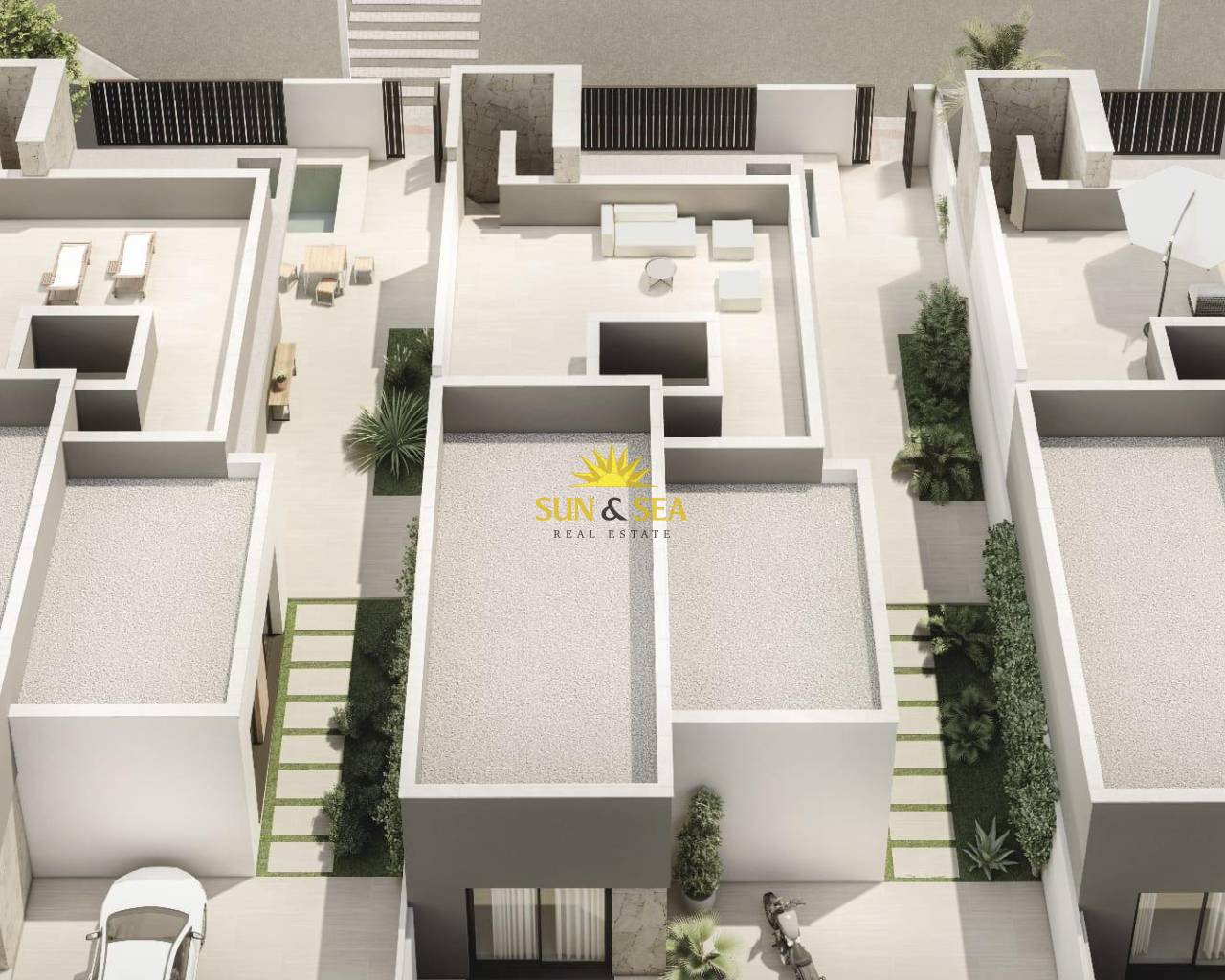 VILLAS DE OBRA NUEVA EN SAN JUAN DE LOS TERREROS La arquitectura contemporánea e innovadora de las villas modernas llega para crear un complejo residencial situado en la localidad de San Juan de los Terreros en Pulpí, Almería, en el sur de España. Estas cuidadas viviendas y complejo residencial combinan un excepcional nivel de diseño y calidad con los más altos estándares de sostenibilidad y bienestar. Viviendas meticulosamente diseñadas por el equipo técnico de arquitectos, para que la luz, la amplitud y la orientación doten a cada vivienda y parcela de un carácter especial. Espacios únicos que abren la puerta a un nuevo estilo de vida para disfrutar. La cimentación y estructura de las viviendas están resueltas con hormigón armado y bajo garantía decenal. Fachadas diseñadas para reducir la demanda energética de la vivienda, combinadas con diversos materiales para conseguir una estética coherente en cuanto a composición y color como se refleja en la infografía. Amplias terrazas dotadas de sólidos antepechos para proporcionar seguridad en las barandillas de las terrazas, otorgando amplitud y luminosidad. Los cerramientos exteriores de la parcela se tratarán con los mismos materiales utilizados en la vivienda, garantizando la integración en el conjunto residencial. Cubiertas planas ventiladas y aisladas sobre forjados, con diferentes acabados según su ubicación y uso. La puerta de entrada a la vivienda será blindada. Las puertas del dormitorio principal, baños secundarios y aseos incluirán cerraduras. La carpintería exterior constará de ventanas y balconeras de Aluminio lacado con persianas enrollables de lamas de aluminio, motorizadas en salones. Sistema de video portero, que garantiza el control de acceso individual para cada una de las viviendas. Los cuartos de baño estarán equipados con lavabo, inodoro y ducha, y los aseos dispondrán de inodoro y lavabo. Los baños cuentan con sanitarios de diseño moderno, de porcelana vitrificada acabada en blanco, de la marca Roca y modelo Gap, con grifería monomando cromada o negro mate a elegir. Las mamparas de ducha irán fijadas con cristal templado de 8mm con una longitud de 80cm. Cada preinstalación está diseñada para un sistema de hasta 10 paneles, que pueden instalarse con un inversor solar conectado a la red eléctrica de la vivienda para minimizar el consumo eléctrico. Estos paneles se integrarán en el tejado, en la zona de instalación, ocultos desde el exterior de la vivienda. La entrada de aire a las viviendas se asegurará mediante la incorporación de un sistema de microventilación en las ventanas de salones y dormitorios. Salida de humos independiente para campana extractora de cocina. Preinstalación de domótica en la vivienda con preparación para una futura instalación de domótica para control de climatización y calefacción de habitaciones, persianas y posibles sistemas de alarma de intrusión. Preinstalación de videovigilancia en la zona de aparcamiento y zonas interiores de la parcela. Cada vivienda dispondrá de una cocina totalmente instalada y acabada en color blanco mate, según diseño, con sistema GOLA. Los armarios interiores serán blancos, con puertas abatibles y cajones con freno bajo placa vitrocerámica, listos para instalar electrodomésticos vistos. Los electrodomésticos no están incluidos. Los dormitorios con armarios empotrados se entregarán con puertas correderas en color blanco mate. Estas viviendas se caracterizarán por su eficiencia y ahorro energéticos, así como por su baja contaminación. Están diseñadas con un enfoque de mayor eficiencia para un menor consumo energético, promoviendo un uso racional de la energía a la vez que se cuida el medio ambiente, la calidad y el confort climático dentro de la vivienda. Los vidrios de baja emisividad evitan la pérdida de calor hacia el exterior, lo que se traduce en un ahorro económico al retener el calor en la vivienda durante el invierno y evitar la entrada de calor durante el verano. Los sistemas de climatización y agua caliente sanitaria están diseñados con sistemas individuales para maximizar el consumo y la eficiencia de cada vivienda. San Juan de los Terreros es una pedanía costera perteneciente al municipio de Pulpí. Es conocida por sus magníficas playas, las últimas de Andalucía. Frente a la costa de San Juan de los Terreros se encuentran dos pequeños islotes de naturaleza volcánica que forman el Monumento Natural de Isla de Terreros-Isla Negra. El monumento más característico de la localidad es el Castillo de San Juan de los Terreros, construido en 1764 sobre un promontorio desde el que, en días despejados, se divisa gran parte de las costas de Almería y Murcia. Integrado en la tranquilidad y belleza de su propia naturaleza, bañado por playas y calas de aguas cristalinas, clasificadas entre las mejores de España. Rodeado de paisajes naturales protegidos que nos llenan de calma y a la vez, nos recargan de energía, gracias a una vibrante oferta gastronómica, social y deportiva. Restaurantes exclusivos, clubes deportivos y, por supuesto, excelentes campos de golf con vistas al mar como Aguilón Golf. Un destino perfecto para disfrutar en familia durante todo el año.