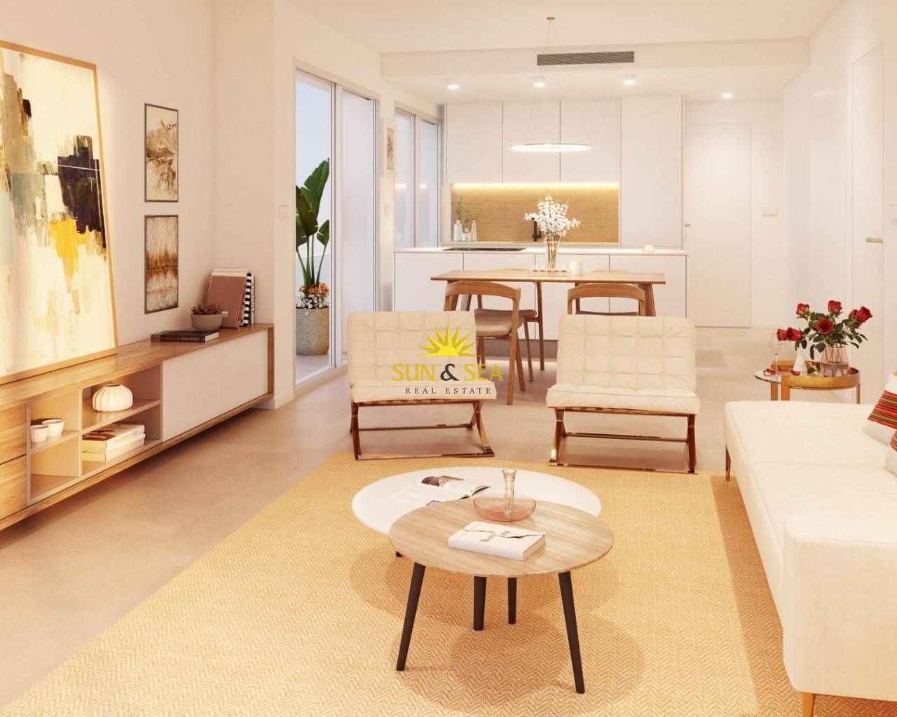 RESIDENCIAL DE OBRA NUEVA EN PILAR DE LA HORADADA Residencial de obra nueva de apartamentos y áticos con excepcionales acabados en Pilar de la Horadada. Apartamentos en planta baja con jardín privado, apartamentos en planta media con amplias terrazas y áticos en planta alta con solarium privado. La cocina se entrega totalmente amueblada, dejando espacio suficiente para que usted elija los electrodomésticos según sus preferencias. Sólo se han utilizado materiales nobles, como carpintería interior íntegramente de madera y ventanas exteriores Climalit/aluminio, ideales tanto por su diseño como por el alto nivel termo-acústico que poseen. Todas las terrazas están orientadas al sur. Puertas automáticas en el residencial, tanto para el acceso peatonal como para el acceso de vehículos. El edificio está rodeado de zonas ajardinadas, contará además con piscina comunitaria, aparcamiento dentro del complejo y cada vivienda dispone de su propio trastero privado. En las inmediaciones de este residencial encontrará todas las facilidades de transporte público, colegios, supermercados, centros comerciales, campos de golf y fantásticos parques municipales con sus zonas infantiles. Todo a tu alcance para que disfrutes de una excelente ubicación. Pilar de la Horadada es un típico pueblo español en la parte más meridional de la Costa Blanca. La gran calle principal tiene supermercados, muchas tiendas, restaurantes y bares y algunas plazas encantadoras. Las hermosas playas de Torre de la Horadada y Mil Palmeras con paseo marítimo de arena fina está a sólo 5 minutos. Los aeropuertos de Corvera (Murcia) y Alicante están respectivamente a 40 y 55 minutos.