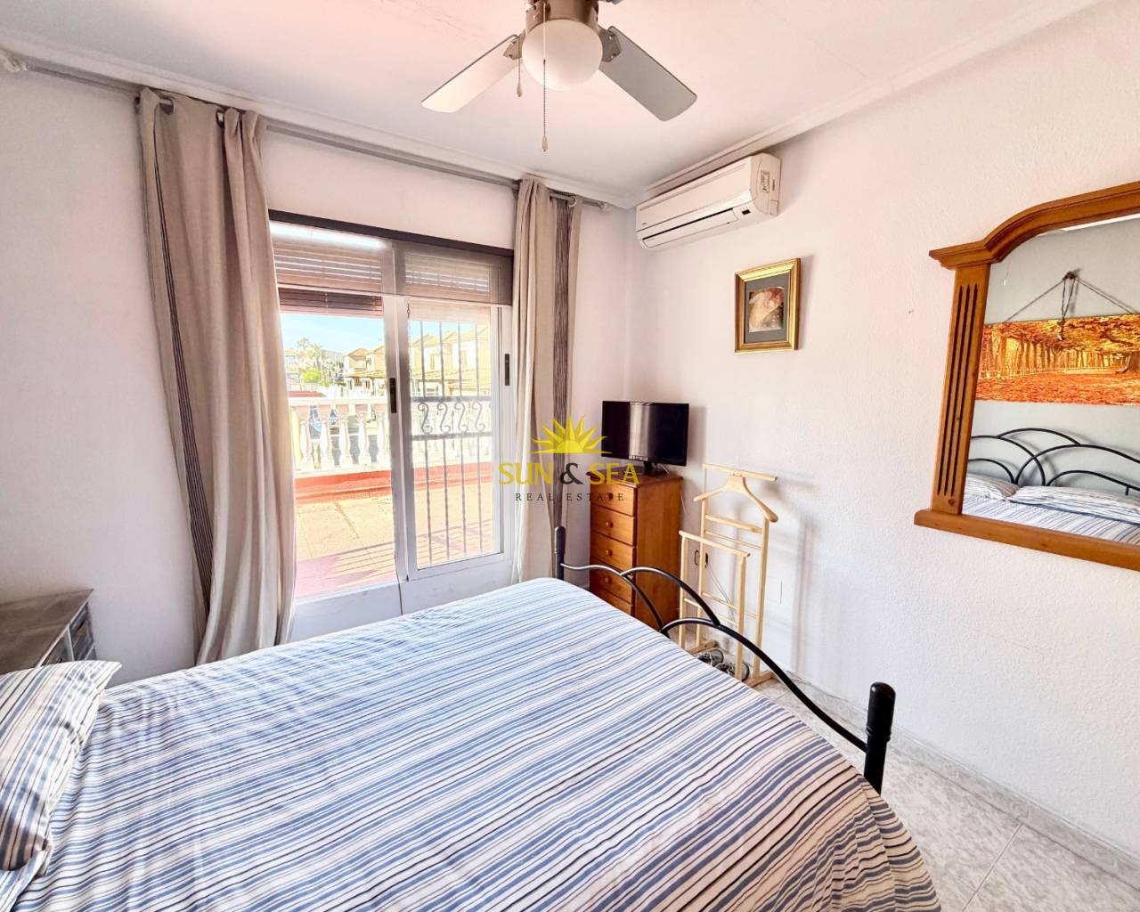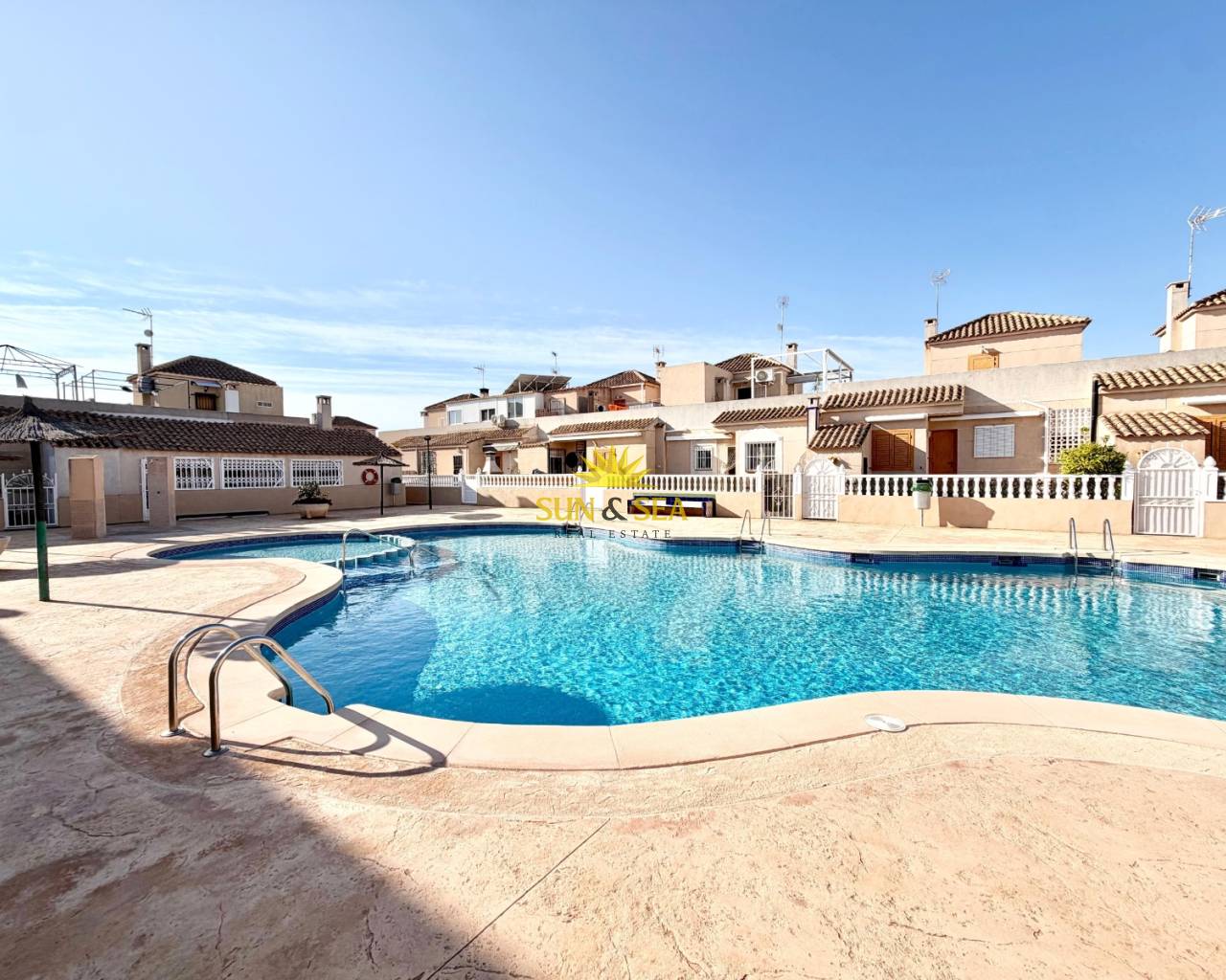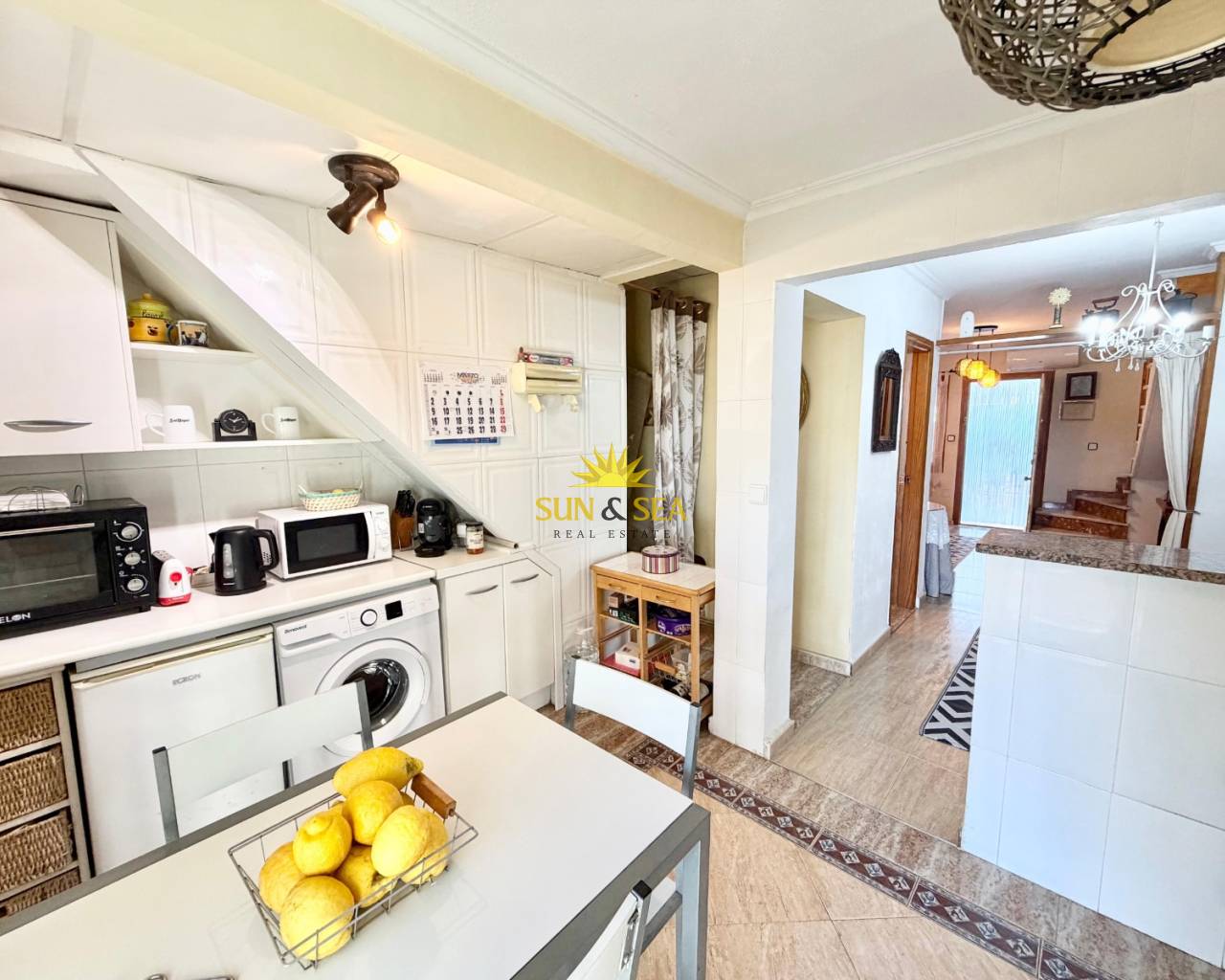 Chalet pareado de 2 dormitorios y 2 baños, con 55 m² construidos, situado en Los Altos (Torrevieja). Vivienda distribuida en dos plantas, muy luminosa y bien cuidada. Dispone de salón amplio con chimenea, cocina totalmente equipada con electrodomésticos, y armario empotrado en el dormitorio principal.