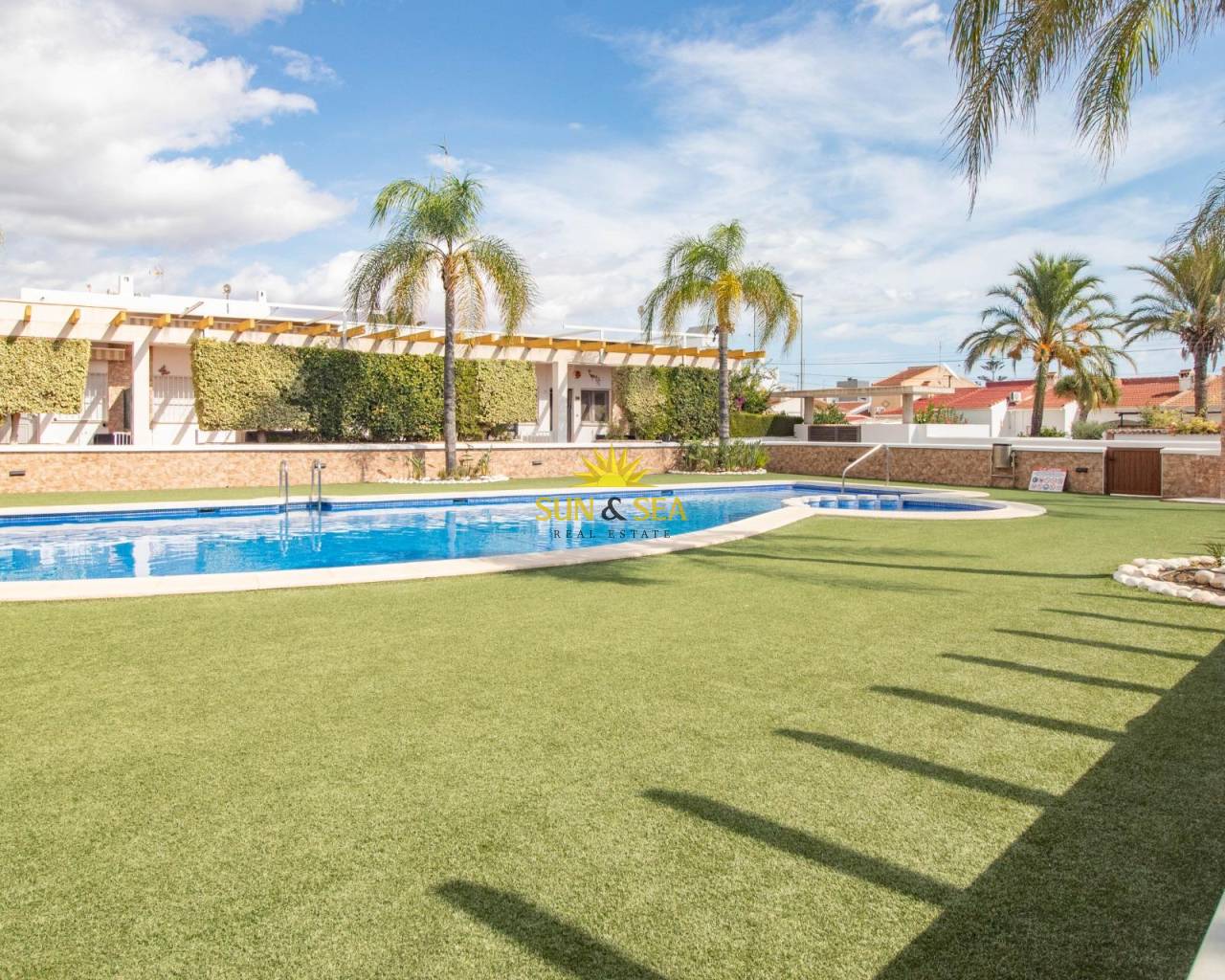 ???? Encantador bungalow en planta baja sin vecino arriba – Mil Palmeras, Pilar de la Horadada.~~Descubre este acogedor bungalow en planta baja, ideal para disfrutar del sol y la tranquilidad de la Costa Blanca. La vivienda cuenta con 2 dormitorios, 1 baño, cocina independiente y un salón luminoso con acceso directo a las terrazas. ~Una de sus grandes ventajas es que no tiene vecino arriba, lo que garantiza privacidad y comodidad. Además, dispone de amplias terrazas que rodean gran parte de la vivienda: una frontal de 23 metros, una lateral y una trasera acristalada, perfecta como terraza de invierno. Total metros de parcela y terrazas 130 metros.~Situada en un residencial cerrado con piscina comunitaria, esta propiedad ofrece un entorno seguro y agradable para vivir todo el año o pasar tus vacaciones.~~La playa de Mil Palmeras se encuentra a tan solo 1 kilómetro, donde podrás disfrutar del mar, los restaurantes y el ambiente mediterráneo.