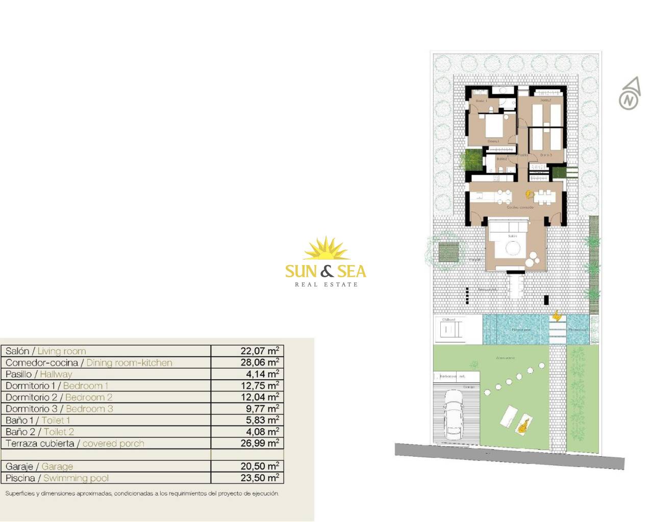 VILLAS DE OBRA NUEVA EN SAN FULGENCIO Villas de obra nueva San Fulgencio, a tan solo 5 km de la playa. Las villas ofrecen 3 dormitorios, 2 baños y amplia cocina, comedor, sala de estar, piscina con cascada y dos piscinas: piscina de chapoteo de 1,95x2,60 m y 0,6 m de profundidad, y piscina de 5,60x2,60 m, entre 1 y 1,5 m de profundidad variable. Un gran porche orientado al sur permite la continuidad del salón con el exterior, abriéndose a un moderno y funcional espacio exterior donde disfrutar de la piscina privada, barbacoa, chillout y amplia zona ajardinada que la rodea. Las líneas sencillas y claras del mobiliario contribuyen a su integración con el resto de la casa. Los detalles en madera aportan calidez al ambiente. Baños donde el color combinado con tonos naturales y cálidos, crean un ambiente acogedor, que unido a la relación directa con el exterior ,permite conectar con la naturaleza, consiguiendo grandes momentos de relax. El dormitorio principal dispone de un patio privado, que junto con la luz que penetra por sus ventanas, crea un ambiente relajante, perfecto para el descanso y la relajación. San Fulgencio es un pueblo agradable con varios restaurantes y tiendas y la ubicación es muy buena por su proximidad a las fantásticas playas de La Marina y al pueblo de Guardamar, un poco más grande. El pueblo de San Fulgencio está situado a unos 30 minutos del aeropuerto de Alicante-Elche, a 6 km del campo de golf más cercano y a sólo 5 km de la playa más cercana.