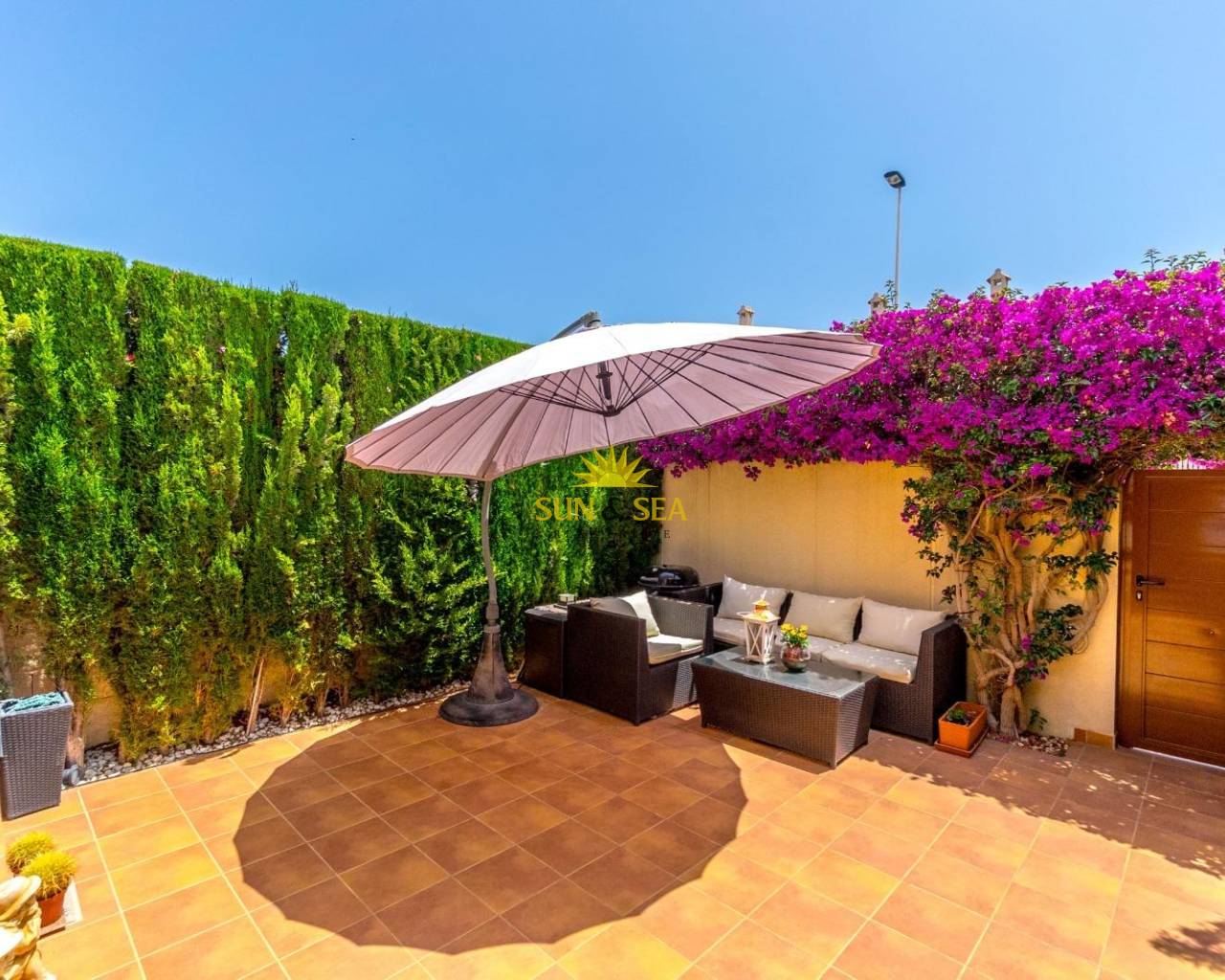 Presentamos este magnífico adosado de 2010, reformado con todo lujo de detalles, situado en el codiciado Residencial Habaneras, en la zona de Aguas Nuevas. Una vivienda lista para entrar a vivir, con acabados de calidad y pensada para disfrutar del máximo confort.~~La propiedad dispone de un jardín delantero ajardinado que da la bienvenida con encanto mediterráneo y un jardín trasero privado con acceso directo a la piscina comunitaria, lo que aporta privacidad y, a la vez, comodidad para disfrutar del sol y el agua a cualquier hora del día.~~En el interior encontramos:~•Salón-comedor luminoso y acogedor, perfecto para reuniones familiares.~•Cocina independiente totalmente equipada, moderna y funcional.~•3 dormitorios amplios con armarios y buena iluminación natural.~•2 baños completos de diseño actual.~•2 terrazas, una de ellas cubierta y acondicionada como zona de gimnasio, ideal para el día a día.~~La vivienda cuenta con extras de gran valor:~•Ventanas antirrobo para mayor seguridad.~•Aire acondicionado y calefacción por infrarrojos, que garantizan confort todo el año.~•Se vende amueblada y lista para entrar a vivir. ~Aguas Nuevas es una de las áreas más demandadas de Torrevieja gracias a su ubicación estratégica:~•A pocos minutos en coche de las playas de Los Locos y La Mata.~•Rodeada de servicios de primera necesidad: supermercados, restaurantes, cafeterías, farmacias, colegios y centros deportivos.