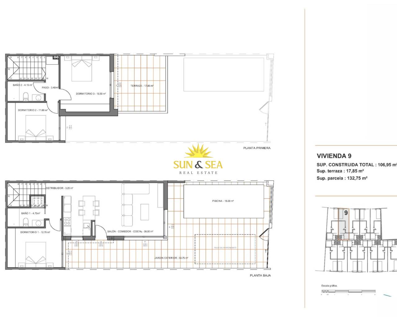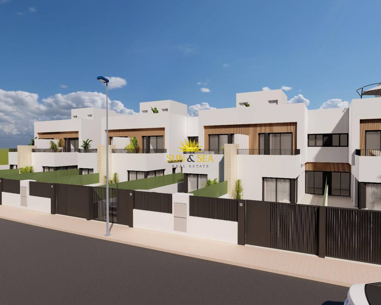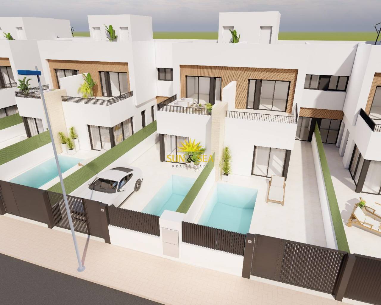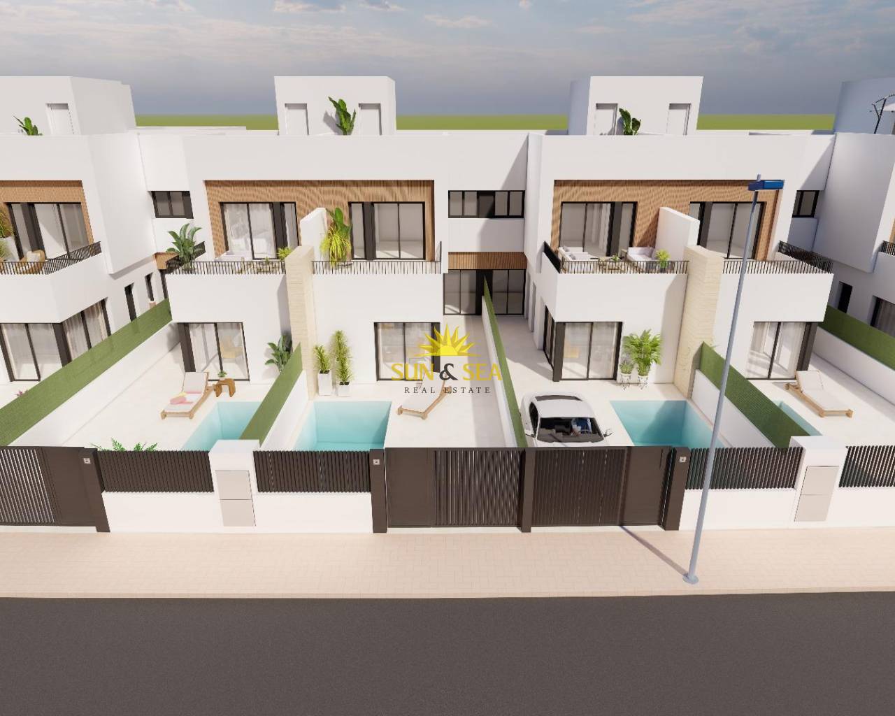 Modernas villas adosadas con piscina privada cerca del mar en Santiago de la Ribera Ubicada en la zona de San Blas en Santiago de la Ribera, Murcia, una de las zonas más atractivas del Mar Menor. Esta promoción está diseñada con 12 villas de 3 dormitorios y 2/3 baños, incluyendo piscina privada, terraza y solárium con cocina de verano en viviendas seleccionadas. Las villas cuentan con interiores elegantes y funcionales, cocinas totalmente equipadas con todos los electrodomésticos, y además, incluyen preinstalación de climatización por conductos. Esta promoción ofrece una oportunidad única para disfrutar de diseño, comodidad y estilo a solo unos minutos del mar. Exclusiva promoción de obra nueva a solo 1 km de la playa Descubra esta promoción de edición limitada de villas adosadas situadas en Santiago de la Ribera, una encantadora localidad costera de la costa murciana, conocida por su estilo de vida relajado, sus playas limpias y su excelente clima durante todo el año. Estas nuevas viviendas están situadas a solo 1 km de la costa del Mar Menor, ofreciendo la combinación perfecta de privacidad, comodidad y proximidad a los servicios esenciales y a las opciones de ocio. Diseño contemporáneo con distribución funcional Cada villa está distribuida cuidadosamente en dos plantas y algunas unidades disfrutan de un solárium en la azotea, lo que proporciona un amplio espacio para la vida moderna. Las propiedades cuentan con: 3 amplios dormitorios, incluyendo uno en la planta baja 2 o 3 baños completos. Jardín privado y piscina. Terraza en la primera planta y algunas unidades con solárium en la azotea, ideal para tomar el sol o recibir invitados. Aparcamiento privado dentro de la parcela. Además, dos de las viviendas disponen de instalación de placas fotovoltaicas para el ahorro de energía. Acabados y prestaciones de alta calidad Construidas con atención al detalle y según los estándares modernos, las viviendas incluyen: Puerta de entrada a vivienda acorazada Persianas de aluminio motorizadas Cocina amueblada con electrodomésticos Muebles de baño con espejo y luz Plato de ducha en porcelánico a medida del baño con mamparas instaladas Preinstalación de Aire Acondicionado por conductos Estas viviendas están diseñadas para disfrutar de todo el año, ya sea como residencia principal, segunda vivienda o inversión para alquiler vacacional. Ubicación privilegiada en la Costa Cálida Santiago de la Ribera ofrece un estilo de vida mediterráneo y dinámico con todo a mano: Playa (Mar Menor) – 1 km Centro comercial La Ribera – 2 km Roda Golf – 5 km Aeropuerto de San Javier – 6 km Puerto deportivo de Lo Pagán – 4 km Centro comercial Dos Mares – 3 km Excelente acceso por carretera a Murcia (40 km) y Cartagena (30 km) Con su rica cultura local, mercados semanales, paseos marítimos y opciones para practicar deportes acuáticos, Santiago de la Ribera es un lugar ideal para disfrutar de lo mejor de la Costa Cálida. Haga realidad su sueño de vivir en la costa No pierda esta oportunidad única de adquirir una elegante villa de nueva construcción en una de las zonas más codiciadas de la costa murciana. Póngase en contacto con nosotros ahora para obtener más información o concertar una visita.