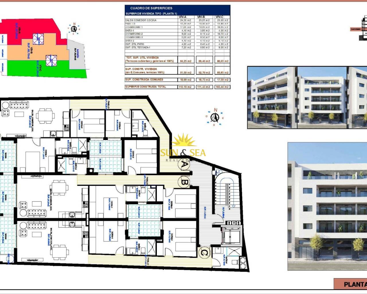 Apartamentos de nueva construcción en Torrevieja A solo 400 m de la Playa del Cura Ubicación privilegiada en el corazón de Torrevieja Descubra estos apartamentos y áticos a estrenar en una de las zonas más cotizadas de Torrevieja, a solo 400 m de la Playa del Cura y a 150 m del paseo marítimo. Situado en el centro de la ciudad, este animado barrio ofrece todos los servicios esenciales a poca distancia, incluyendo supermercados, tiendas, restaurantes, cafeterías y transporte público. Torrevieja es una conocida ciudad costera de la Costa Blanca, famosa por su clima mediterráneo templado, su animado ambiente y su estilo de vida junto al mar durante todo el año. Apartamentos modernos con distribuciones espaciosas Esta exclusiva promoción nueva consta de solo 12 apartamentos y áticos de 2 o 3 dormitorios, diseñados para ofrecer comodidad, funcionalidad y estilo contemporáneo. Los apartamentos de las plantas intermedias cuentan con amplias terrazas, mientras que los áticos disfrutan de un solárium privado adicional, ideal para tomar el sol o comer al aire libre. Todas las viviendas incluyen una cocina abierta conectada con el salón-comedor, lo que crea interiores luminosos y acogedores. Los dormitorios cuentan con armarios empotrados y los baños están totalmente equipados con muebles, espejos y mamparas de ducha. Hay plazas de aparcamiento subterráneo y trasteros opcionales disponibles con un coste adicional. Acabados de calidad y características de eficiencia energética Los apartamentos están construidos con materiales de alta calidad y un fuerte enfoque en la eficiencia energética. La carpintería exterior de aluminio incluye tecnología de rotura de puente térmico y doble acristalamiento para el aislamiento térmico y acústico. Las persianas motorizadas añaden comodidad y seguridad. Cada vivienda cuenta con preinstalación de aire acondicionado y calefacción por conductos, puertas de entrada reforzadas y puertas interiores lacadas en blanco. El agua caliente se produce mediante un sistema aerotérmico, lo que reduce el consumo de energía y mejora la sostenibilidad. Solárium en la azotea con piscina comunitaria Los residentes pueden disfrutar de un solárium exclusivo en la azotea con piscina comunitaria, accesible por ascensor o escaleras. Esta zona privada es perfecta para relajarse, tomar el sol y disfrutar de las vistas panorámicas de la ciudad. Ofrece un refugio tranquilo sobre las animadas calles de Torrevieja y añade un valor significativo a la promoción. Estilo de vida y alrededores de Torrevieja Torrevieja es conocida por su extenso litoral, sus playas de arena y sus emblemáticas salinas. El Parque Natural de las Lagunas de La Mata y Torrevieja se encuentra a unos 5 km y ofrece rutas de senderismo y paisajes únicos. Varios campos de golf, como Villamartin Golf y Las Colinas Golf, se encuentran a entre 12 y 18 km. El puerto deportivo y el puerto de Torrevieja están a aproximadamente 1 km. El aeropuerto de Alicante está a unos 45 km y el aeropuerto internacional de Murcia a unos 65 km, ambos con excelentes conexiones europeas. Su hogar en la costa le espera No pierda esta oportunidad de adquirir un moderno apartamento de nueva construcción cerca de la playa en Torrevieja. Póngase en contacto con nosotros hoy mismo para obtener más información o concertar una visita privada.