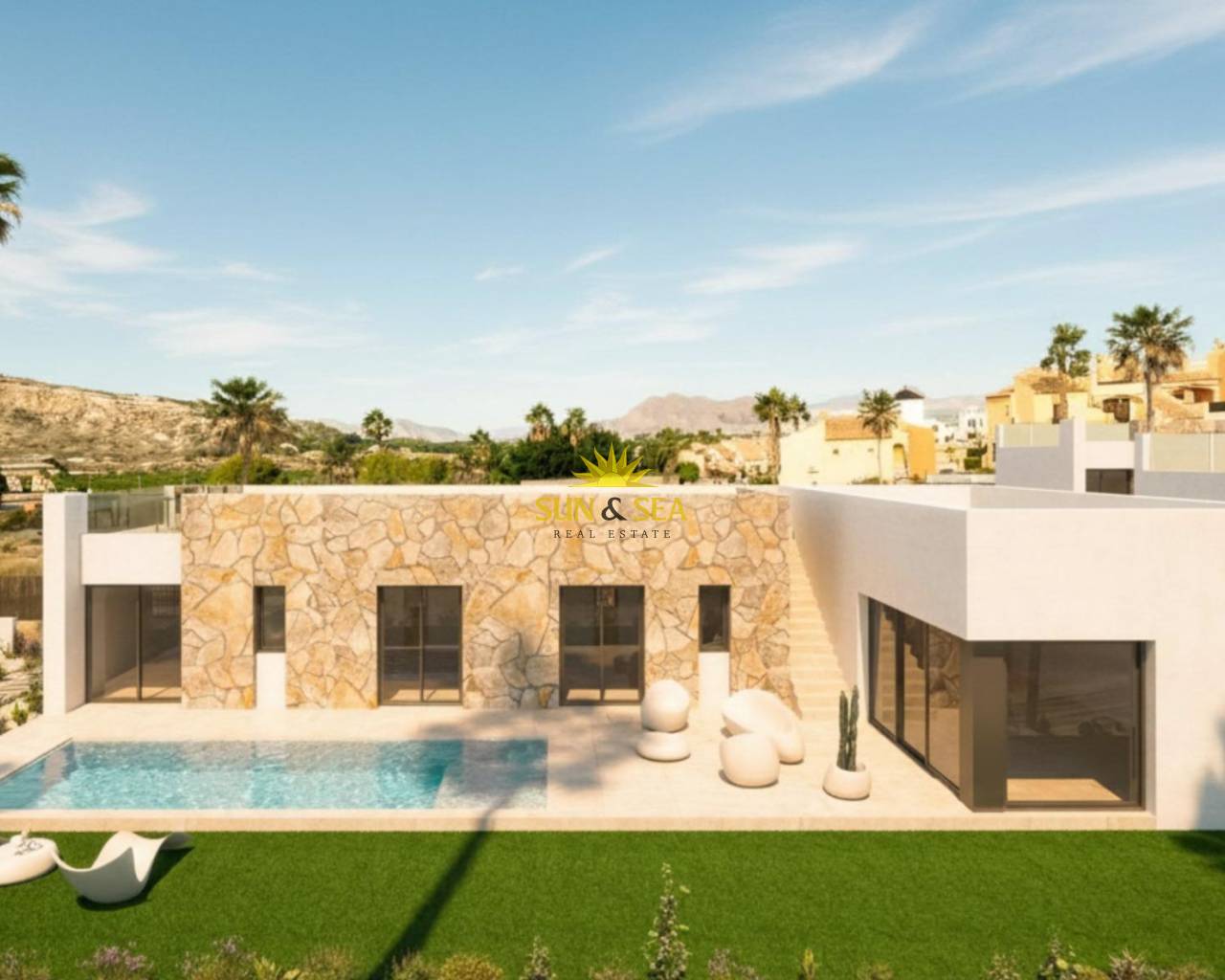 Villas de lujo de nueva construcción junto al campo de golf La Finca en Algorfa Villas exclusivas en un prestigioso entorno de golf Esta urbanización boutique de solo 8 villas independientes de lujo se encuentra en segunda línea del famoso complejo de golf La Finca en Algorfa. Situadas en una zona residencial tranquila y bien establecida, estas villas de nueva construcción ofrecen privacidad, comodidad y un estilo de vida mediterráneo excepcional rodeado de naturaleza y paisajes de golf. La ubicación es ideal para aquellos que buscan tranquilidad sin renunciar a la proximidad a los servicios, las opciones de ocio y las mejores playas de la Costa Blanca. Algorfa es una encantadora localidad española conocida por su ambiente relajado, sus restaurantes tradicionales y su proximidad a los mejores complejos de golf. La Finca Golf es uno de los complejos de golf más prestigiosos de la zona, con un campo de 18 hoyos, hotel, spa, instalaciones deportivas y restaurantes de calidad. Diseño moderno de una sola planta con carácter mediterráneo Todas las villas están diseñadas en una sola planta, lo que maximiza la comodidad y la funcionalidad. La distribución en forma de L separa claramente las zonas de estar y la cocina de los dormitorios, creando interiores luminosos y bien equilibrados. Los grandes ventanales permiten que la luz natural fluya por toda la casa y conectan a la perfección con las zonas exteriores. Cada villa ofrece 3 amplios dormitorios y 2 modernos cuartos de baño, construidos en generosas parcelas de más de 400 m². Los espacios exteriores incluyen una piscina privada, un jardín ajardinado con riego automático, aparcamiento en la parcela y un gran solárium privado ideal para disfrutar del sol durante todo el año. Características de alta calidad y eficiencia energética Estas villas combinan la inspiración tradicional mediterránea con la arquitectura contemporánea y la tecnología moderna. Las viviendas se entregan con sistema aerotérmico para agua caliente, preinstalación de aire acondicionado por conductos, sistema domótico, ventanas de aluminio con persianas eléctricas y cocinas totalmente equipadas con electrodomésticos. Los baños incluyen muebles, mamparas de ducha y calefacción por suelo radiante, lo que garantiza el confort y la calidad en cada detalle. Los estándares generales de construcción se centran en la eficiencia, el diseño y el valor a largo plazo. Ubicación estratégica cerca de playas y servicios La Finca Golf Resort ofrece un estilo de vida saludable y relajado con instalaciones deportivas y de ocio en las inmediaciones. Las playas de Guardamar del Segura se encuentran a unos 14 km. Torrevieja y Orihuela Costa, con sus centros comerciales y puertos deportivos, se encuentran a entre 15 y 18 km. El aeropuerto internacional de Alicante se encuentra a unos 35 km y ofrece excelentes conexiones con toda Europa. Hay varios otros campos de golf a menos de 10 km. Una vivienda ideal o una inversión en la Costa Blanca Estas lujosas villas representan una oportunidad única de adquirir una vivienda moderna en una de las zonas de golf más codiciadas del sur de la Costa Blanca. Perfectas como residencia permanente, vivienda vacacional o propiedad de inversión. Póngase en contacto con nosotros hoy mismo para obtener más información o concertar una visita privada a esta exclusiva promoción.