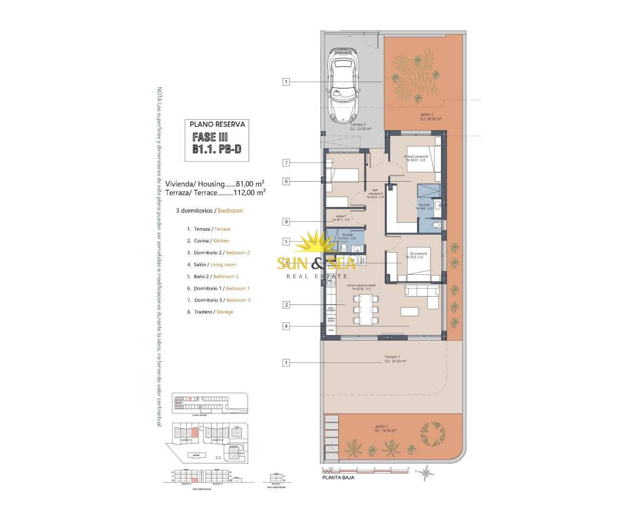 Complejo residencial de nueva construcción cerca de Serena Golf y el Mar Menor en Los Alcázares Vida moderna en la costa de la Costa Cálida Descubra este atractivo complejo residencial de nueva construcción situado en Los Alcázares, una de las localidades costeras más populares de la Costa Cálida. Situado a solo 500 m de las playas del Mar Menor y a poca distancia del centro de la ciudad, este complejo ofrece una excelente combinación de vida costera, entorno de golf y comodidades cotidianas. Los Alcázares es conocido por su ambiente relajado, sus largos paseos marítimos, sus cálidas aguas poco profundas y una amplia gama de restaurantes, tiendas y servicios abiertos todo el año. Apartamentos contemporáneos diseñados para el confort La promoción consta de 29 viviendas modernas de 2 o 3 dormitorios, diseñadas con líneas arquitectónicas limpias y acabados de alta calidad. Los compradores pueden elegir entre apartamentos en planta baja con jardín y terraza privados, viviendas en plantas intermedias con amplias terrazas o áticos con terraza privada y solárium en la azotea con vistas panorámicas. Muchas de las propiedades disfrutan de vistas al campo de golf Serena y al Mar Menor, lo que crea un entorno tranquilo y agradable. Todas las viviendas están diseñadas para maximizar la luz natural y la funcionalidad, lo que las hace ideales como residencia permanente, vivienda vacacional o propiedad de inversión. Características de alta calidad y zonas comunes Cada propiedad incluye una plaza de aparcamiento privada y un trastero. Las especificaciones están diseñadas para proporcionar comodidad y eficiencia energética, incluyendo ventanas de doble acristalamiento con rotura de puente térmico, preinstalación de aire acondicionado por conductos, sistema aerotérmico para agua caliente sanitaria, persianas eléctricas en los dormitorios y un completo paquete de iluminación interior y exterior. Los baños se entregan totalmente equipados con muebles, espejo y mampara de ducha. Los residentes pueden disfrutar de atractivas zonas comunes con jardines y una piscina comunitaria, perfectas para relajarse y disfrutar del clima mediterráneo. Algunos bloques están equipados con ascensores para mayor comodidad. Ubicación privilegiada entre el golf y el mar Este complejo residencial goza de una ubicación privilegiada junto al Serena Golf, uno de los campos de golf más famosos de la zona, y a pocos pasos de las tranquilas aguas del Mar Menor. La zona es ideal para practicar natación, vela, paddle surf y otros deportes acuáticos durante todo el año. Las distancias clave incluyen las playas del Mar Menor a 0,5 km, Serena Golf justo al lado de la urbanización, el centro de Los Alcázares a 2 km, Cartagena a 22 km y la ciudad de Murcia a 40 km. El aeropuerto de Murcia Corvera está a unos 30 km y el de Alicante a unos 90 km. Una vivienda ideal o una oportunidad de inversión Con su excelente ubicación, su diseño moderno y su proximidad tanto al golf como al mar, este nuevo complejo residencial en Los Alcázares ofrece una oportunidad excepcional para disfrutar de un estilo de vida excepcional en la Costa Cálida. Póngase en contacto con nosotros hoy mismo para recibir más información o concertar una visita privada y asegurarse su nueva vivienda junto al Mar Menor.