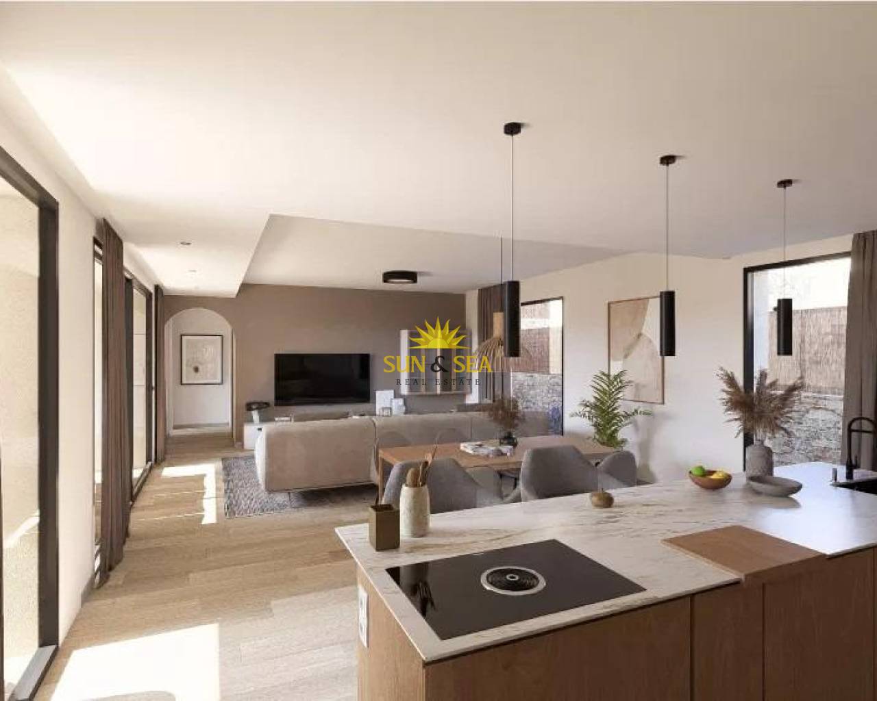 Villas contemporáneas de una sola planta en Altaona Golf Resort Murcia Ubicación privilegiada en un complejo de golf cerca de la ciudad de Murcia Descubra esta exclusiva colección de villas independientes de nueva construcción situadas en el prestigioso complejo Altaona Golf Resort en Murcia. Ubicada en un entorno seguro y tranquilo, rodeada de naturaleza y de un campo de golf de 18 hoyos, esta comunidad residencial ofrece el equilibrio perfecto entre tranquilidad y accesibilidad. Altaona Golf se encuentra a solo 15 km del centro de Murcia, donde encontrará centros comerciales, restaurantes, colegios y servicios médicos, mientras que las playas de la Costa Cálida están a solo 20 km. El aeropuerto de Murcia-Corvera está convenientemente situado a 15 km del complejo, lo que lo convierte en un lugar ideal tanto para vivir de forma permanente como para pasar las vacaciones. Diseño moderno de una sola planta con jardín y piscina privados Estas elegantes villas están diseñadas en una sola planta para ofrecer el máximo confort y funcionalidad. Los compradores pueden elegir entre 2, 3 o 4 dormitorios y 2 o 3 baños, además de un aseo para invitados. Cada vivienda cuenta con una cocina y una sala de estar diáfanas que conectan a la perfección con la terraza exterior y el jardín privado con piscina. La parcela incluye una plaza de aparcamiento privada, lo que garantiza la comodidad y la privacidad. Viviendas energéticamente eficientes con características de alta calidad Todas las villas cuentan con un certificado energético de clase A, lo que garantiza una excelente eficiencia energética y bajos costes de funcionamiento. Las propiedades incluyen aire acondicionado por conductos con bomba de calor en toda la casa, excepto en los baños, y calefacción eléctrica por suelo radiante en el salón y los baños con termostatos independientes por zonas. Un sistema de ventilación mecánica renueva el aire de las cocinas, los baños, el lavadero y el aseo de invitados, mejorando el confort interior. La cocina está equipada con campana extractora y placa de inducción eléctrica. La iluminación LED está incluida en el salón, el pasillo y las zonas exteriores, mientras que el resto de habitaciones están preparadas para que el propietario personalice la iluminación. Los dormitorios están equipados con puntos de carga USB para mayor comodidad. Tecnología domótica y comunidad segura Cada villa incluye un sistema de videoportero, domótica con dos interruptores inteligentes y acceso motorizado para vehículos a la comunidad cerrada. El jardín privado se entrega ajardinado con un sistema de riego por goteo y una atractiva piscina privada, ideal para disfrutar del clima mediterráneo durante todo el año. Distancias a puntos de interés clave Campo de golf Altaona 0,1 km Centro de la ciudad de Murcia 15 km Playas de Los Alcázares y Mar Menor 20 km Aeropuerto de Murcia Corvera 15 km Centros comerciales y servicios 10 km Hacienda Riquelme Golf Resort 12 km Su nuevo estilo de vida en Altaona Golf le espera Disfrute del golf, la naturaleza, la seguridad y el confort moderno en uno de los complejos turísticos más atractivos de la región de Murcia. Póngase en contacto con nosotros hoy mismo para recibir más información o concertar una visita a estas hermosas villas de nueva construcción.