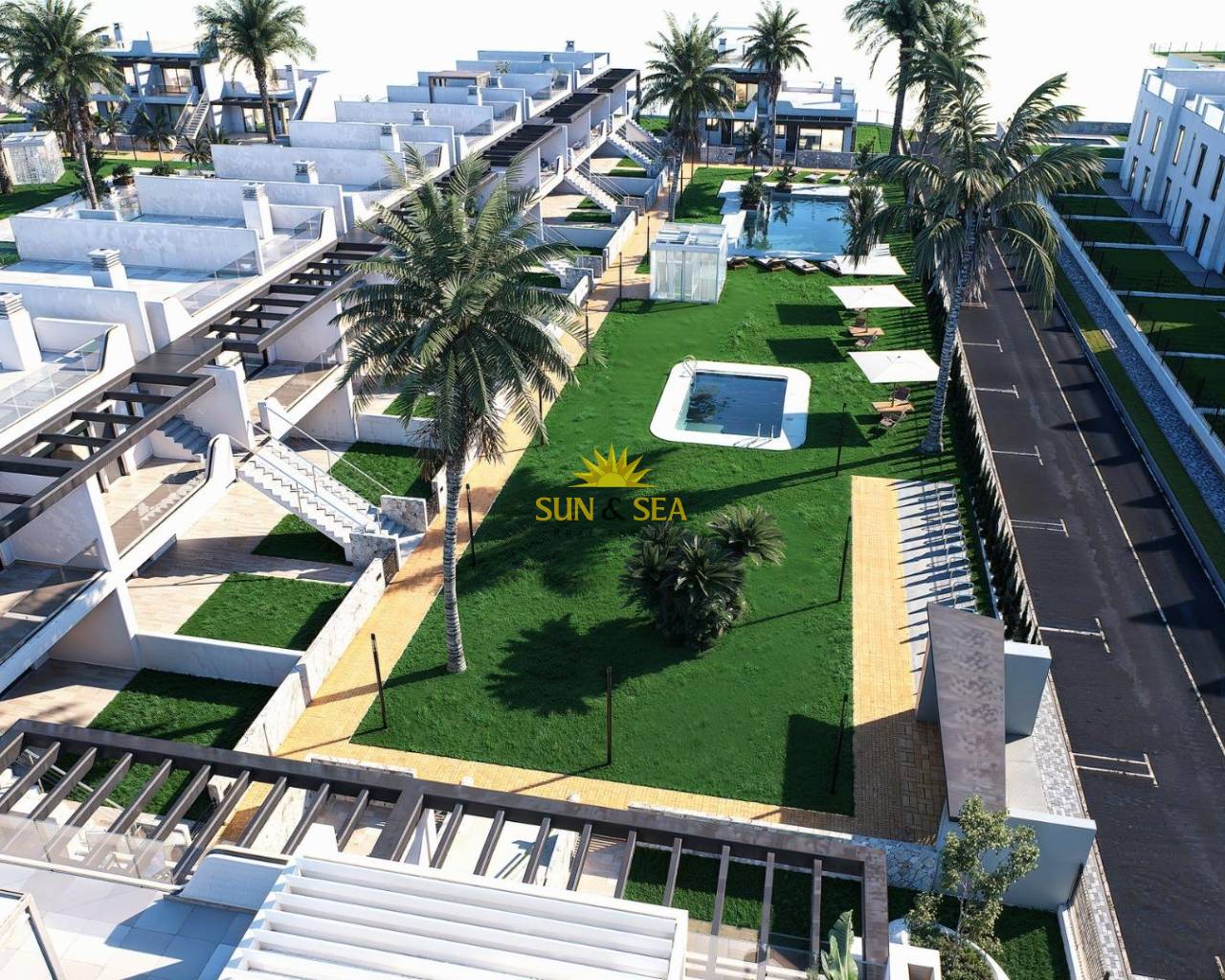 Bungalows neufs avec jardin ou solarium près de la plage à Pilar de la Horadada Maisons méditerranéennes modernes conçues pour le confort Découvrez ce complexe résidentiel neuf exclusif à Pilar de la Horadada, proposant des bungalows contemporains situés à moins de 2 km de la plage. Conçues pour allier confort, style et fonctionnalité, ces maisons sont idéales pour y vivre toute l'année, pour les vacances ou comme investissement intelligent sur la Costa Blanca. Le complexe propose un choix entre des bungalows au rez-de-chaussée avec jardin privé et des bungalows au dernier étage avec solarium privé sur le toit. Chaque propriété est soigneusement conçue pour maximiser la vie en plein air et tirer le meilleur parti du climat méditerranéen. Propriétés spacieuses de 2 chambres avec des finitions de haute qualité Chaque bungalow dispose de 2 chambres et 2 salles de bains, dont une attenante, ainsi que d'une place de parking privée dans le garage souterrain. Les maisons sont construites avec des matériaux de qualité et des finitions modernes qui garantissent l'efficacité énergétique et la durabilité. Les principales caractéristiques sont les suivantes Préinstallation pour la climatisation centralisée Menuiserie extérieure en aluminium avec double vitrage et volets motorisés Porte d'entrée sécurisée pour une tranquillité d'esprit Système aérothermique pour une production d'eau chaude efficace Armoires encastrées dans toutes les chambres Salles de bains entièrement équipées avec meubles et parois de douche Ces spécifications offrent une maison confortable et pratique, adaptée à toutes les saisons. Communauté privée avec piscine et jardins paysagers Le complexe résidentiel est privé et sécurisé, avec de magnifiques jardins communs paysagers et une grande piscine commune. Cela crée un environnement agréable et relaxant où les résidents peuvent se détendre et profiter de l'excellent climat. Situé juste à l'extérieur du centre-ville, le complexe permet aux résidents de se rendre à pied aux supermarchés, restaurants, bars, écoles et services essentiels sans avoir besoin d'une voiture. Excellent emplacement à proximité des plages et des services Pilar de la Horadada est une charmante ville espagnole située à l'extrémité sud de la Costa Blanca, connue pour son atmosphère animée, ses commerces locaux, ses places traditionnelles et sa communauté accueillante. Les plages de sable de Torre de la Horadada et Mil Palmeras sont à seulement 2 km et offrent un sable fin et doré, une promenade pittoresque et un port de plaisance. La région est également idéale pour le cyclisme, la marche et les sports de plein air. Distances vers les principaux points d'intérêt Lo Romero Golf 5 km La Zenia Boulevard 15 km Aéroport de Murcie Corvera 40 km Aéroport d'Alicante 55 km Port de plaisance de Torre de la Horadada 3 km Réservez votre nouvelle maison dès aujourd'hui Ne manquez pas cette occasion d'acquérir un bungalow neuf près de la plage dans l'une des zones les plus prisées de la Costa Blanca. Contactez-nous dès aujourd'hui pour obtenir plus d'informations et organiser une visite.