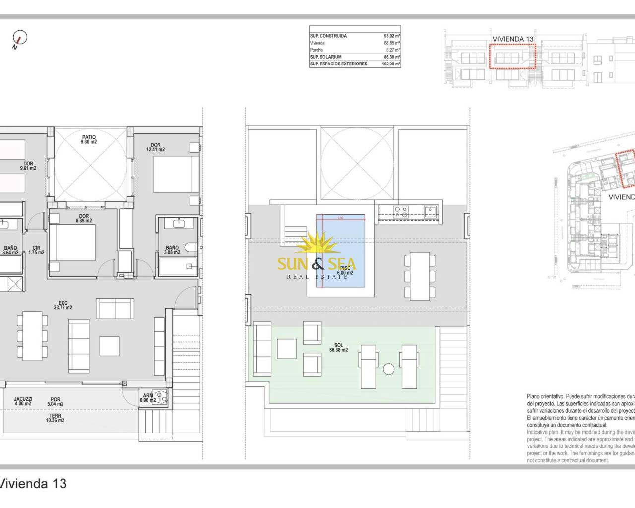 Bungalows neufs à vendre à Pilar de la Horadada, à 3 km de la plage Complexe résidentiel boutique à Pilar de la Horadada Découvrez ce complexe résidentiel exclusif de bungalows modernes situés à Pilar de la Horadada, la ville la plus au sud de la Costa Blanca. Ce projet boutique se compose de seulement 14 maisons soigneusement conçues, avec 2 ou 3 chambres et 2 salles de bains, offrant une combinaison idéale de confort, de style et de mode de vie méditerranéen. Le complexe est situé dans un quartier résidentiel calme, à quelques pas du centre-ville, ce qui permet aux résidents de profiter d'un accès facile aux commerces, restaurants, supermarchés et services essentiels. Pilar de la Horadada est connue pour son atmosphère accueillante, son charme espagnol traditionnel et sa rue principale animée, regorgeant de cafés, de boutiques et de charmantes places. Bungalows modernes avec espaces extérieurs privés Les maisons ont été conçues pour offrir des intérieurs lumineux et des agencements fonctionnels, parfaits pour une utilisation permanente ou comme résidence secondaire. Les bungalows du rez-de-chaussée disposent d'un jardin privé et d'une piscine privée, créant ainsi le cadre idéal pour profiter de la vie en plein air, prendre des bains de soleil ou recevoir famille et amis. Les bungalows du dernier étage comprennent une terrasse spacieuse et un solarium privé sur le toit. Le solarium est équipé d'une cuisine d'été et offre la possibilité d'ajouter une piscine privée ou un jacuzzi moyennant un supplément, ce qui en fait un espace idéal pour se détendre tout en profitant du climat méditerranéen chaud et d'une vue dégagée. Chaque propriété comprend une place de parking privée au sein du complexe résidentiel pour plus de commodité. Construction de qualité et équipements modernes Ces maisons neuves sont construites avec des matériaux de qualité et des installations modernes conçues pour garantir confort et efficacité énergétique tout au long de l'année. Menuiserie extérieure en aluminium avec rupture thermique Cuisines entièrement équipées avec appareils électroménagers inclus Salles de bains équipées de miroirs et de parois de douche Éclairage LED intérieur et extérieur Système d'eau chaude avec technologie aérothermique à haut rendement énergétique Pré-installation pour la climatisation canalisée La combinaison d'un design moderne et d'équipements pratiques fait de ces maisons une excellente option pour les acheteurs à la recherche d'une propriété contemporaine sur la Costa Blanca. Excellent emplacement à proximité des plages et des terrains de golf Pilar de la Horadada bénéficie d'un emplacement stratégique à proximité de certaines des meilleures plages et terrains de golf de la région. Plage de Torre de la Horadada 3 km Plage de Mil Palmeras 3 km Lo Romero Golf 6 km Aéroport international de la région de Murcie 45 km Aéroport d'Alicante Elche 75 km La région offre également d'excellentes liaisons routières vers les villes côtières, les marinas et les installations de loisirs voisines, ce qui en fait un point de départ idéal pour explorer la Costa Blanca et la Costa Calida. Trouvez votre nouvelle maison sur la Costa Blanca Si vous recherchez un bungalow moderne de construction récente près de la plage, doté d'excellentes commodités et bénéficiant d'un emplacement fantastique, ce complexe résidentiel à Pilar de la Horadada est une opportunité exceptionnelle. Contactez-nous dès aujourd'hui pour obtenir plus d'informations ou pour organiser une visite.