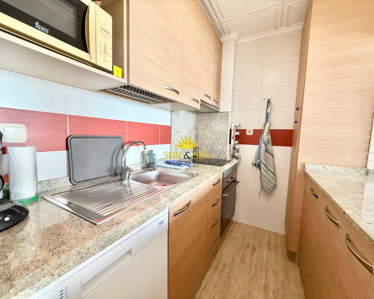 Le logement se distingue par son emplacement exceptionnel face à la mer et sa distribution fonctionnelle, avec un salon spacieux et une cuisine ouverte avec bar reliée à l’espace de vie. Le balcon offre d’agréables vues sur la mer, idéal pour profiter du climat méditerranéen.