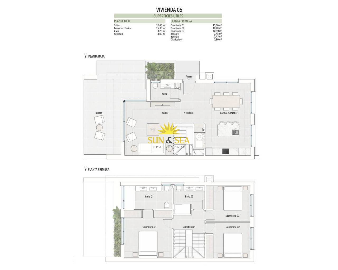 Villas jumelées modernes avec piscine privée à Las Filipinas-Orihuela Costa Villas neuves exclusives dans un emplacement de choix sur la Costa Blanca Découvrez ce programme immobilier de prestige comprenant huit villas jumelées modernes situées à Las Filipinas, Orihuela Costa, l'un des quartiers résidentiels les plus prisés du sud de la Costa Blanca. Ce quartier bien établi offre un excellent accès aux commodités quotidiennes, notamment des supermarchés, des restaurants, des pharmacies et des installations de loisirs, le tout à proximité. Idéalement situées à proximité de certains des meilleurs parcours de golf de la région, notamment Villamartin Golf, Campoamor Golf, Las Ramblas Golf et Las Colinas Golf, ces villas offrent un cadre de vie exceptionnel aux amateurs de golf et aux acheteurs internationaux. Les magnifiques plages d'Orihuela Costa ne sont qu'à 6 km, ce qui en fait un emplacement idéal tant pour une résidence principale que pour une résidence secondaire. Design contemporain et agencements spacieux Chaque villa est construite sur un terrain privé d’environ 300 m² et offre environ 140 m² d’espace de vie moderne répartis sur deux étages. Les propriétés comprennent trois chambres doubles, deux salles de bains complètes avec double vasque, dont une en suite, et des toilettes supplémentaires pour les invités. Le rez-de-chaussée présente un espace de vie lumineux et élégant avec un mur d'accent en pierre naturelle, créant une atmosphère chaleureuse et raffinée. De grandes baies vitrées donnent directement sur la terrasse extérieure et la piscine privée, agrémentée de jeux d'eau décoratifs. À l'arrière de la propriété, une cuisine italienne design avec îlot central et éclairage LED s'ouvre sur une spacieuse salle à manger donnant accès au jardin et au parking privé. Chambres élégantes et vie en plein air Le premier étage comprend deux chambres d'amis avec placards intégrés et une salle de bains familiale. La chambre principale se distingue par un design sophistiqué, avec une tête de lit en chêne allant du sol au plafond, des détails en miroir et une luxueuse salle de bains attenante, ainsi qu'une vue sur la piscine. Il est également possible d'ajouter un solarium sur le toit ou un demi-sous-sol, offrant ainsi un espace supplémentaire et des possibilités de personnalisation. Équipements haut de gamme et confort moderne Ces villas sont construites avec des matériaux de haute qualité et les dernières technologies pour garantir confort et efficacité. Les équipements comprennent la pré-installation pour la climatisation centralisée, un système aérothermique pour l'eau chaude, le chauffage au sol dans les salles de bains et des volets électriques. Les spécifications supplémentaires comprennent un système d'alarme, un interphone vidéo et un portail d'accès automatisé, garantissant à la fois commodité et sécurité. Emplacement de choix à proximité des plages et des terrains de golf Las Filipinas bénéficie d'un emplacement stratégique et d'une excellente desserte. Les plages d'Orihuela Costa se trouvent à environ 6 km, tandis que l'aéroport international de Murcie est à 50 km et celui d'Alicante à 55 km. Plusieurs terrains de golf de premier ordre sont situés dans un rayon de 2 à 5 km. Une opportunité d'investissement idéale sur la Costa Blanca Ces villas modernes offrent une combinaison parfaite entre design, emplacement et style de vie, ce qui en fait un excellent investissement ou une résidence secondaire sur la Costa Blanca. Contactez-nous dès aujourd'hui pour obtenir plus d'informations ou pour organiser une visite et réserver votre nouvelle villa à Orihuela Costa.