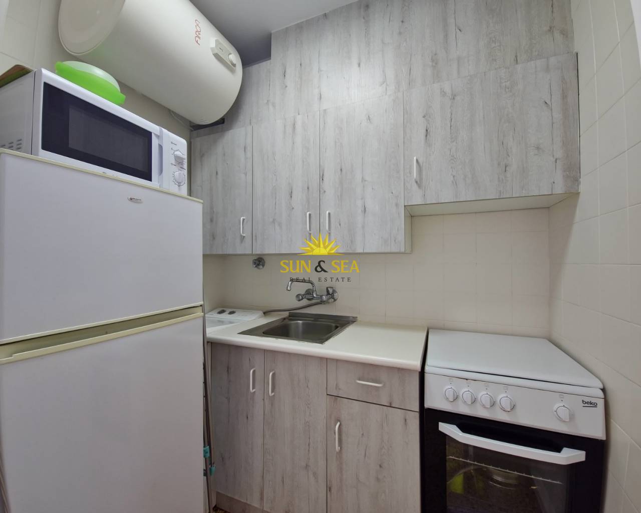 Il a 40 m2 construits où se trouvent 1 chambre, 1 salle de bain, cuisine équipée, salon/salle à manger et terrasse avec vue sur la ville et la mer. Étage 8, immeuble AVEC ascenseur. Place de parking.