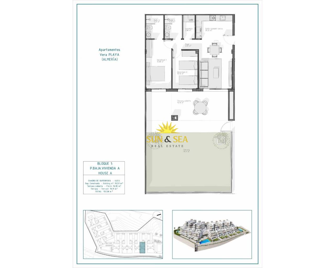 Appartements neufs à Vera Playa, Almería – Maisons modernes près de la mer Une vie contemporaine à Pueblo Salinas, à seulement 2 km de la plage Découvrez un superbe nouveau complexe résidentiel situé dans le quartier très prisé de Vera Playa, au sein de l'urbanisation exclusive de Pueblo Salinas. Ce complexe moderne offre un style de vie privilégié à seulement 2 km des plages de Vera (Almería), avec des vues spectaculaires sur la mer et un environnement méditerranéen paisible, idéal pour vivre toute l'année ou passer des vacances agréables. Des maisons élégantes alliant confort et style moderne Ce nouveau projet comprend 60 appartements de haute qualité répartis dans 5 immeubles de faible densité, avec seulement deux propriétés par étage. Choisissez entre des agencements de 2 ou 3 chambres conçus dans un souci de fonctionnalité, de confort et de style. Les options comprennent : Rez-de-chaussée avec jardins privés Appartements intermédiaires avec terrasses spacieuses Penthouses au dernier étage avec grands solariums comprenant une cuisine d'été et une pergola avec panneaux solaires. Toutes les propriétés disposent de : Cuisines ouvertes entièrement équipées avec réfrigérateur intégré, lave-vaisselle, plaque à induction, four, micro-ondes et hotte aspirante Espaces de vie lumineux et éclairage LED dans toute la maison (sauf dans les chambres) Volets motorisés en aluminium dans les chambres Salles de bains aux finitions modernes, avec sèche-serviettes, receveurs de douche avec parois en verre et meubles encastrés Pré-installation de la climatisation gainable Système aérothermique pour une production efficace d'eau chaude Porte d'entrée sécurisée Des équipements collectifs exceptionnels Les résidents bénéficieront d'un accès à un large éventail d'équipements conçus pour améliorer leur confort et leurs loisirs, notamment : Deux piscines extérieures idéales pour les mois d'été Une piscine intérieure chauffée pour une utilisation toute l'année Une place de parking privée et un espace de rangement inclus avec chaque propriété Pré-installation pour la recharge de véhicules électriques dans les parkings Emplacement privilégié avec d'excellentes connexions Vera Playa est une destination côtière très prisée, connue pour ses larges plages de sable et son style de vie décontracté. L'emplacement du complexe offre un accès facile aux services et attractions essentiels : Plage : 2 km Desert Springs Golf Resort : 8 km Centre-ville de Vera : 5 km Port de plaisance et restaurants de Garrucha : 6 km Parque Comercial Mojácar : 10 km Aéroport d'Almería : 85 km (1 heure en voiture) Faites de Vera Playa votre nouveau chez-vous Que vous recherchiez une résidence permanente, une maison de vacances ou un investissement intelligent, ces appartements neufs offrent un rapport qualité-prix inégalé dans l'une des zones les plus prisées de la Costa de Almería. Contactez-nous dès aujourd'hui pour obtenir plus d'informations et planifier votre visite.
