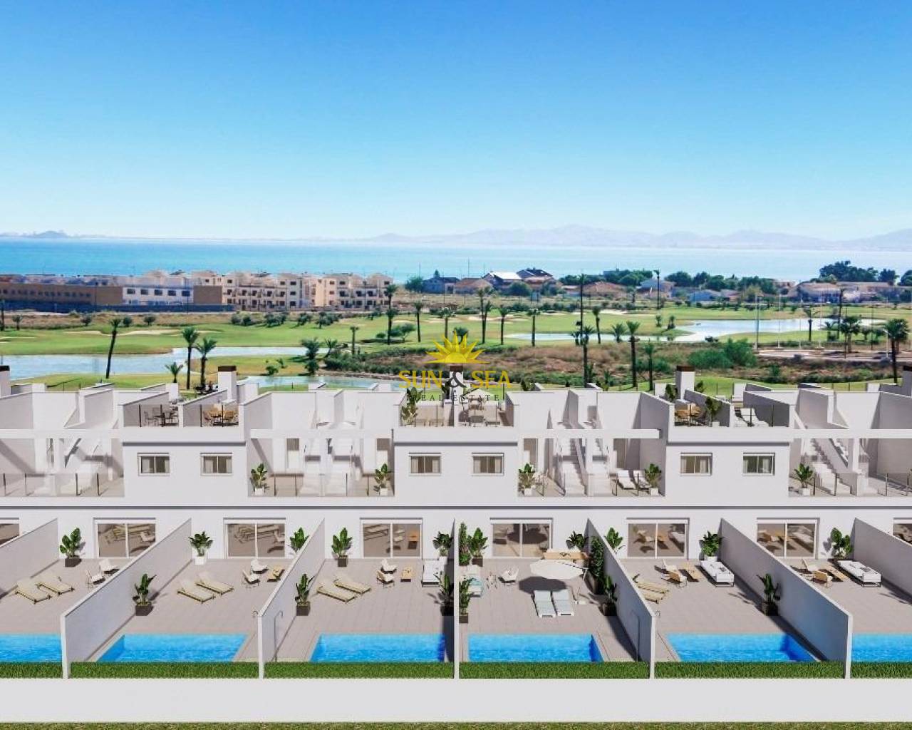 Maisons mitoyennes neuves en première ligne du golf La Serena à Los Alcázares Emplacement privilégié près du golf et de la mer Découvrez un lotissement résidentiel exclusif de 31 maisons mitoyennes neuves situées en première ligne du golf La Serena à Los Alcázares, à seulement 600 m de la Mar Menor. Situé au cœur de la Costa Cálida, cet emplacement privilégié combine golf, plage et style de vie méditerranéen. Avec toutes les commodités à proximité et un excellent accès routier, c'est l'endroit idéal pour les vacances et pour y vivre toute l'année. Maisons modernes avec piscine privée et solarium sur le toit Chaque maison présente un design contemporain élégant et des espaces intérieurs lumineux. Les maisons sont réparties sur trois niveaux plus un solarium sur le toit, offrant un maximum de confort et d'intimité : Sous-sol avec garage privé pour 2 voitures et accès à un patio Rez-de-chaussée avec salon et cuisine ouverts donnant sur un jardin et une piscine privée, 1 chambre et 1 salle de bains Premier étage avec 2 chambres, 1 salle de bains et 2 terrasses Solarium sur le toit avec cuisine d'été, idéal pour se détendre et profiter d'une vue panoramique L'orientation est et ouest garantit un excellent éclairage naturel et une vie en plein air tout au long de la journée. Finitions de haute qualité et confort Ces maisons sont construites selon les normes les plus élevées et offrent des caractéristiques haut de gamme, notamment : Piscine privée Garage en sous-sol pour 2 voitures avec porte motorisée Système d'eau chaude aérothermique Climatisation gainable entièrement installée Cuisine meublée et équipée Salles de bains entièrement équipées avec meubles, miroirs et parois de douche Porte d'entrée sécurisée Vivez entre la mer et le fairway Nichée au cœur d'un paysage méditerranéen luxuriant, cette communauté exclusive offre une vie paisible à proximité du parcours de golf Serena, un parcours 18 trous réputé, entouré par la nature et des lacs tranquilles. Les eaux chaudes et peu profondes de la Mar Menor sont parfaites pour la baignade et la pratique de sports nautiques tels que la voile, le paddle surf et le kayak tout au long de l'année. Distances clés : Plage (Mar Menor) : 600 m La Serena Golf : à côté du complexe Centre de Los Alcázares : 2 km Carthagène : 22 km Ville de Murcie : 40 km Aéroport de Murcie : 30 km Aéroport d'Alicante : 90 km Assurez-vous un style de vie méditerranéen Que vous recherchiez une résidence permanente, une maison de vacances ou un investissement rentable, ces maisons offrent luxe, confort et un style de vie côtier de qualité supérieure. Contactez-nous dès aujourd'hui pour organiser une visite et vous assurer votre nouvelle maison à Los Alcázares.