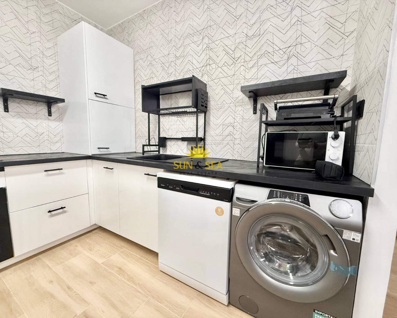 Agréable rez-de-chaussée neuf, entièrement meublé, situé dans l’un des quartiers les plus recherchés de la côte d’Alicante, à quelques mètres de la mer.