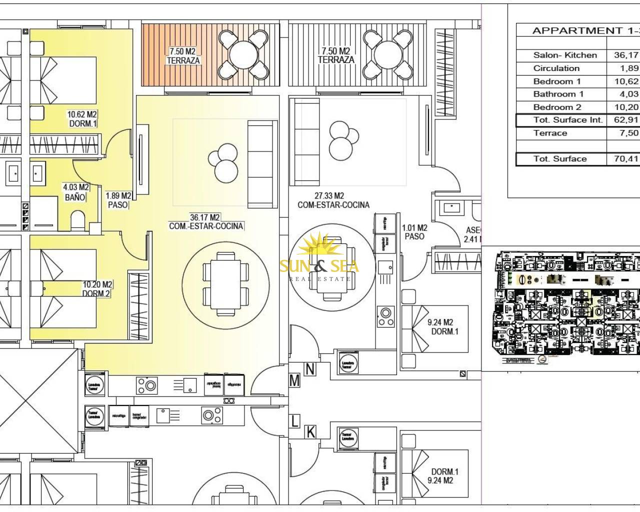 Modern New Build Apartments in the Center of San Miguel de Salinas Contemporary Living in a Healthy Mediterranean Environment Located in the charming town of San Miguel de Salinas, just 10 km from the Mediterranean Sea, this new residential development offers the perfect balance between modern comfort and natural surroundings. The area is well known for its nearby salt lakes and exceptional microclimate, considered one of the healthiest in Europe. This peaceful yet vibrant town allows residents to enjoy the authentic Mediterranean lifestyle while being within walking distance of shops, restaurants, supermarkets and all essential services. San Miguel de Salinas sits slightly inland on the Costa Blanca South, offering open views, fresh air and easy access to beaches, golf courses and shopping areas. Stylish Apartments Designed for Comfort and Efficiency The project consists of two modern buildings separated by a landscaped communal garden area. A total of 56 contemporary apartments are available with 1, 2 or 3 bedrooms, each featuring a private terrace. Every home has been designed with comfort, aesthetics and energy efficiency in mind, using high quality materials and modern insulation systems. Each apartment includes: Armored entrance door Bathrooms with vanity units Pre installation of ducted air conditioning Energy certificate rating A The layout and orientation of the homes ensure natural light throughout the day, creating bright and welcoming interiors ideal for both permanent living and holiday use. Exceptional Communal Areas for Relaxation and Social Life The ground floor communal space is designed as the social heart of the development, surrounded by landscaped gardens, seating areas, bicycle parking and a children’s playground. It is an ideal meeting point for residents of all ages. On the rooftop, an impressive 350 m2 leisure area awaits. This space includes a 70 m2 swimming pool with a separate children’s splash area, pergolas, sun loungers and shaded areas, allowing residents to relax while enjoying panoramic views. The rooftop is easily accessible by one of the three lifts and includes sanitary facilities for added comfort. Excellent Location Close to Key Points of Interest Mediterranean beaches 10 km Zenia Boulevard Shopping Center 9 km Villamartin Golf 6 km Las Colinas Golf 8 km Torrevieja Marina 12 km Alicante Airport 60 km Murcia Corvera Airport 55 km A Smart Investment in Costa Blanca South This residential complex combines modern architecture, quality finishes and a prime central location, making it an excellent choice for living, holiday enjoyment or rental investment. Contact us today for more information or to arrange a visit to these modern apartments in San Miguel de Salinas.