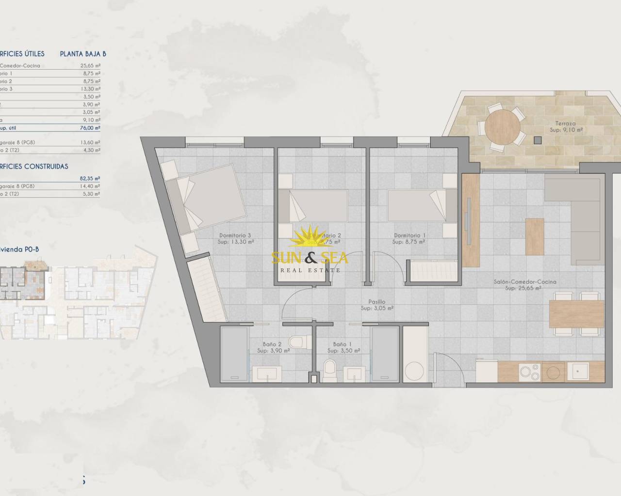 New Build Apartments for Sale in Lo Pagan (San Pedro del Pinatar) Near the Beach Modern Mediterranean Living in Lo Pagan Discover these stylish new build apartments for sale in Lo Pagan, a charming coastal area within San Pedro del Pinatar on the beautiful Costa Calida. Located in the well known neighborhood of Los Cuarteros, this residential development offers a privileged lifestyle just 500 meters from the beach and close to all essential services, restaurants, shops and leisure areas. Lo Pagan is famous for its relaxed seaside atmosphere, the calm waters of the Mar Menor and more than 300 days of sunshine each year. The area combines traditional Spanish charm with modern amenities, making it an ideal destination for both permanent living and holiday homes. Contemporary Apartments with Terraces and Private Solariums The development offers a selection of ground floor and middle floor apartments with spacious terraces, as well as exclusive penthouses with private rooftop solariums. The solariums include a pergola and barbecue area, creating the perfect setting for outdoor dining and relaxing under the Mediterranean sun. Each property has been designed to combine contemporary architecture with warm Mediterranean style. The open plan kitchen integrates seamlessly with the living and dining area, creating bright and comfortable living spaces. Large terraces extend the indoor areas and provide the perfect place for outdoor breakfasts or evening gatherings. Bedrooms feature built in wardrobes and the modern bathrooms are fully equipped, offering comfort and elegant finishes throughout the home. Quality Features and Community Facilities These homes are built with attention to detail and include high quality specifications to ensure comfort and efficiency. Fully furnished kitchen equipped with appliances Fully fitted bathrooms with modern finishes Ducted air conditioning fully installed Private parking space and storage room included with every property Residents can also enjoy excellent communal facilities including a swimming pool surrounded by relaxation areas and a fully equipped gym, ideal for maintaining an active lifestyle all year round. Excellent Location on the Costa Calida This development enjoys a strategic location close to beaches, golf courses and key destinations along the coast. Playa de Villananitos 0.5 km Real Club Nautico de Lo Pagan 0.5 km Lo Romero Golf 10 km Murcia International Airport 40 km Cartagena 35 km The nearby beaches of the Mar Menor such as Playa de La Puntica are known for their fine sand calm waters, ideal for swimming, sailing and water sports. Your New Home by the Sea Awaits Enjoy sunshine, beaches and a vibrant coastal lifestyle in one of the most sought after areas of the Costa Calida. Contact us today for more information about these new build apartments in Lo Pagan and secure your place by the sea.