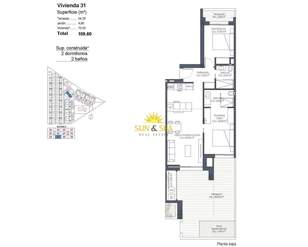 New Build Resort Apartments at La Serena Golf-Los Alcazares Near the Beach Modern Golf Front Living on the Costa Calida Discover this exclusive new build residential resort located at La Serena Golf in Los Alcazares. This contemporary development features 66 stylish apartments with 2 or 3 bedrooms and 2 bathrooms, one of them en suite, designed to offer comfort, elegance and an exceptional Mediterranean lifestyle just 300 meters from the Mar Menor. Los Alcazares is a charming coastal town known for its relaxed atmosphere, sandy beaches and long seaside promenade. With more than 300 days of sunshine per year, the area offers a perfect environment for outdoor living, water sports and golf. The town also provides a wide selection of restaurants, shops, marinas and sports facilities, making it a highly desirable destination for both permanent residence and holiday homes. Apartments with Terraces, Gardens and Private Solariums The residential complex offers several property types to suit different lifestyles. Buyers can choose between ground floor apartments with private gardens, middle floor homes with spacious terraces or penthouses with terraces and large rooftop solariums. The solariums include an outdoor shower and offer the option to add a summer kitchen and private jacuzzi, creating an ideal space for relaxation and entertaining while enjoying open views of the golf course and surrounding landscape. Each home has been designed with bright interiors and open plan living spaces that connect seamlessly with the outdoor areas. Resort Style Amenities and Exceptional Communal Areas One of the most distinctive features of this development is its resort style concept. Residents can enjoy a spectacular lagoon style swimming pool of approximately 190 m2 with beach style access and relaxing areas with Balinese beds. Additional communal facilities include landscaped gardens, a spa area, gym and sauna located in the basement level. The complex also offers a children playground, two petanque courts and communal restrooms near the pool area, creating a welcoming environment for residents and guests. Quality Finishes and Modern Features The apartments are built with modern materials and high quality specifications designed for comfort and style. Fully equipped kitchen with white glass finish appliances Bathrooms with vanity units, shower screens and backlit mirrors Motorized window shutters Basic lighting package Fully installed ducted air conditioning Underground parking space for each property Underground bicycle parking and optional storage rooms Prime Location Close to Beach and Golf Mar Menor beach 0.3 km La Serena Golf next to the development Los Alcazares town center 2 km Cartagena 22 km Murcia 40 km Region de Murcia International Airport 30 km Alicante Elche Airport 90 km The calm and shallow waters of the Mar Menor are ideal for swimming, sailing and paddle surfing throughout the year. Secure Your Home at La Serena Golf Resort These modern apartments combine beachside living, golf views from most units and resort style amenities in one of the most attractive areas of the Costa Calida. Contact us today to receive more information or arrange a visit and secure your new home in La Serena Golf-Los Alcazares.