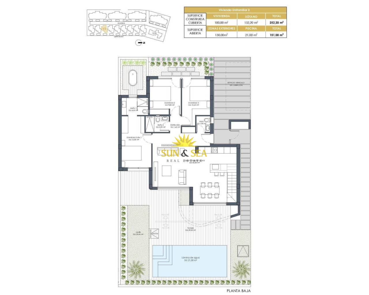 New Build Golf Front Apartments and Villas in La Serena Golf Los Alcazares Exclusive Residential Development Frontline to La Serena Golf Discover this exceptional new build residential development located frontline to La Serena Golf in Los Alcazares, one of the most desirable coastal towns on the Costa Calida. This exclusive community offers a premium lifestyle surrounded by nature, open views and direct access to a renowned 18 hole golf course known for its flat terrain, scenic lakes and technical challenges. Ideally situated just 1.7 km from the beaches of the Mar Menor and the town center, residents can enjoy both tranquility and easy access to restaurants, shops and all essential services. Los Alcazares is well known for its relaxed atmosphere, long promenades and warm shallow waters, making it perfect for year round living or holiday stays. Modern Apartments with Terraces and Private Solariums The development includes 36 contemporary apartments distributed across four blocks. Buyers can choose between two or three bedroom layouts with two bathrooms, including an en suite. Ground floor apartments feature spacious terraces with the option to add a private pool. Middle floor units offer generous outdoor terraces, while penthouses include private solariums ideal for sunbathing and outdoor dining. All apartments include underground parking and a storage room with elevator access. The community also offers beautifully landscaped Mediterranean gardens and a large communal swimming pool for residents to enjoy. Stylish Single Level Villas with Private Pool In addition to the apartments, the development offers nine exclusive single level villas. These homes feature three bedrooms, two bathrooms and an additional guest toilet, all designed to provide seamless indoor and outdoor living. Each villa includes a private swimming pool, garden, storage room and private parking. A spacious open basement provides additional flexible space that can be adapted to suit individual needs such as a gym, entertainment area or extra storage. High Quality Finishes and Energy Efficient Design All properties are built with high quality materials and modern specifications. Features include aluminum exterior carpentry with thermal break, fully equipped bathrooms with vanity units and glass shower screens, and pre installation for ducted air conditioning and furnished kitchens in apartments. Villas come with fully installed air conditioning systems and fully equipped kitchens with appliances. Elevators are available in apartment blocks, ensuring comfort and accessibility. Prime Location Close to Golf, Beaches and Amenities This development offers excellent connectivity to key points of interest. Murcia International Airport is 35 km away and Alicante Airport is 95 km. The marina of Los Alcazares is just 2 km away, Dos Mares shopping center is 15 km and Roda Golf is only 4 km from the development. Cartagena city center is located 25 km away. Ideal Investment and Mediterranean Lifestyle Opportunity This golf front development offers a unique opportunity to enjoy modern living in a privileged setting close to both the sea and golf. Contact us today to receive more information or to arrange a viewing and find your perfect home in Los Alcazares.