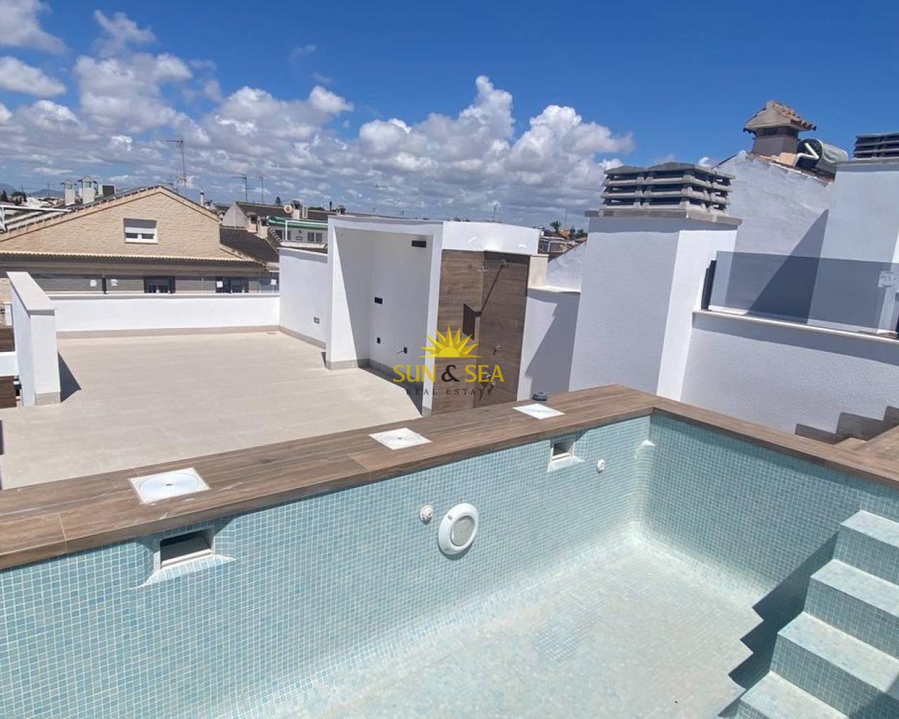 New Build Bungalows in San Pedro del Pinatar Modern Living Near the Beach Contemporary Coastal Homes in El Salero San Pedro del Pinatar Discover these stylish 12 new build bungalows located in El Salero, a charming residential area of San Pedro del Pinatar on the Costa Calida. This sought after location offers the perfect balance between coastal living and everyday convenience, with supermarkets, restaurants, cafes and essential services all within walking distance. San Pedro del Pinatar is well known for its natural mud baths, salt flats and relaxed Mediterranean lifestyle. With a welcoming community and a mild climate all year round, it is an ideal destination for both permanent living and holiday homes. Prime Location Close to the Mar Menor and Mediterranean Sea These properties are ideally located just 2 km from the beaches of Villa Nanitos on the Mar Menor and El Mojon on the Mediterranean Sea, both easily reachable within a 20 minute walk. The area is perfect for water sports enthusiasts, with nearby marinas, sailing clubs and coastal promenades. Modern Design and Functional Layouts The development offers modern bungalows with 2 bedrooms and 2 bathrooms, designed with open plan kitchens and bright living spaces that maximize natural light. Ground floor units feature spacious private terraces with the option to add a private swimming pool at an additional cost. Top floor properties include a private rooftop solarium with a swimming pool already included, providing the perfect space to relax and enjoy the Mediterranean sun. Each property also includes a private parking space. High Quality Finishes and Energy Efficiency These homes are built with high quality materials and modern specifications to ensure comfort and efficiency. Features include pre installation for ducted air conditioning, aerothermal system for hot water and electric shutters. Bathrooms come fully equipped with vanity units, mirrors, shower screens and underfloor heating. A complete LED lighting package is included both indoors and outdoors, enhancing the overall ambiance of the property. Excellent Connectivity and Nearby Amenities San Pedro del Pinatar offers excellent connections to key destinations. The Dos Mares shopping center is approximately 4 km away, while Murcia International Airport is around 35 km. Alicante Airport can be reached in approximately 75 km. Several golf courses and marinas are located within a short drive, making this an ideal location for leisure and recreation. Ideal Property for Investment or Year Round Living These new build bungalows combine modern design, a prime coastal location and high quality finishes, making them an excellent choice for investment, holiday use or permanent residence. Contact us today to receive more information or to arrange a viewing and secure your new home in San Pedro del Pinatar.