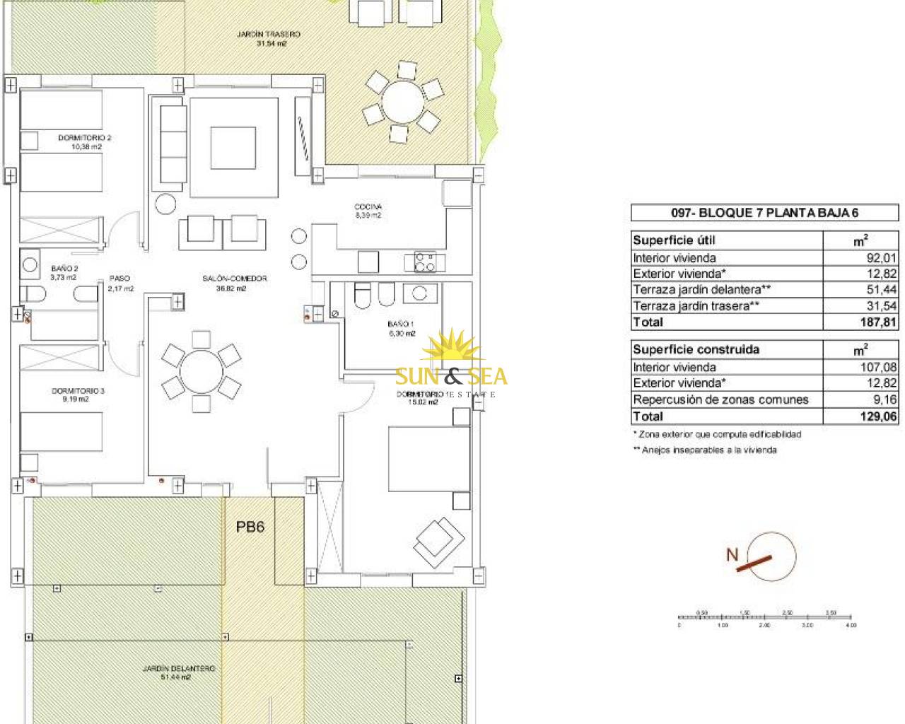 NEW BUILD RESIDENTIAL COMPLEX IN VERA New Build residential of apartments in Vera just 400m from the huge Vera beach named "El Playazo". The typologies are ground floor with two private gardens, one in each orientation, which allows you to enjoy sun or shade whenever you want depending on the time of day or the season of the year. The first floors have terraces and the penthouses have large solariums. All the apartments have extra height ceilings (2.95 m) providing a great feeling of spaciousness. The kitchen comes fully furnished and equipped integrated with the living-dining area with a bar area. The doors and fitted wardrobes are lacquered in white and the floor is made of laminated wood. The hot-cold air conditioning and the hot water are generated by a state-of-the-art DAIKIN Aerothermal device, a technology that saves up to 70% of electricity consumption compared to traditional systems. All bathrooms come with a shower instead of a bathtub, with recessed mirrors and also with a stone countertop and glass partition in the main bathroom. The blinds in the living room and master bedroom are electric, hermetically sealed and with adjustable slats. The gardens and solarium are delivered with the floors finished combining artificial grass and a beautiful paving imitating wood. Each house includes a private outdoor parking space. Each block of the promotion has an independent elevator. Both the buildings and the apartments have a series of bioclimatic architecture characteristics (orientation, insulation, windows and shutters, pergolas) that allow optimal natural regulation of ventilation, temperature and light throughout the different seasons of the year. The communal areas are made up of pedestrian squares and green areas, with a large swimming pool for adults and another for children in the central square. The entire urbanization is free of architectural barriers for the disabled. Here tranquillity and relaxation are guaranteed. Vera is one of the best naturist places in Europe, recognized for the quality and purity of their waters. It offers six kilometres of beaches (Las Marinas-Bolaga, Puerto Rey, El Playazo, Quitapellejos). Vera bordering with the famous tourist destinations such as Mojacar and the Almanzora Caves. Residential complex located about 1,5 hour drive away from Murcia - Corvera airport and about 2 hours away from Alicante airport.