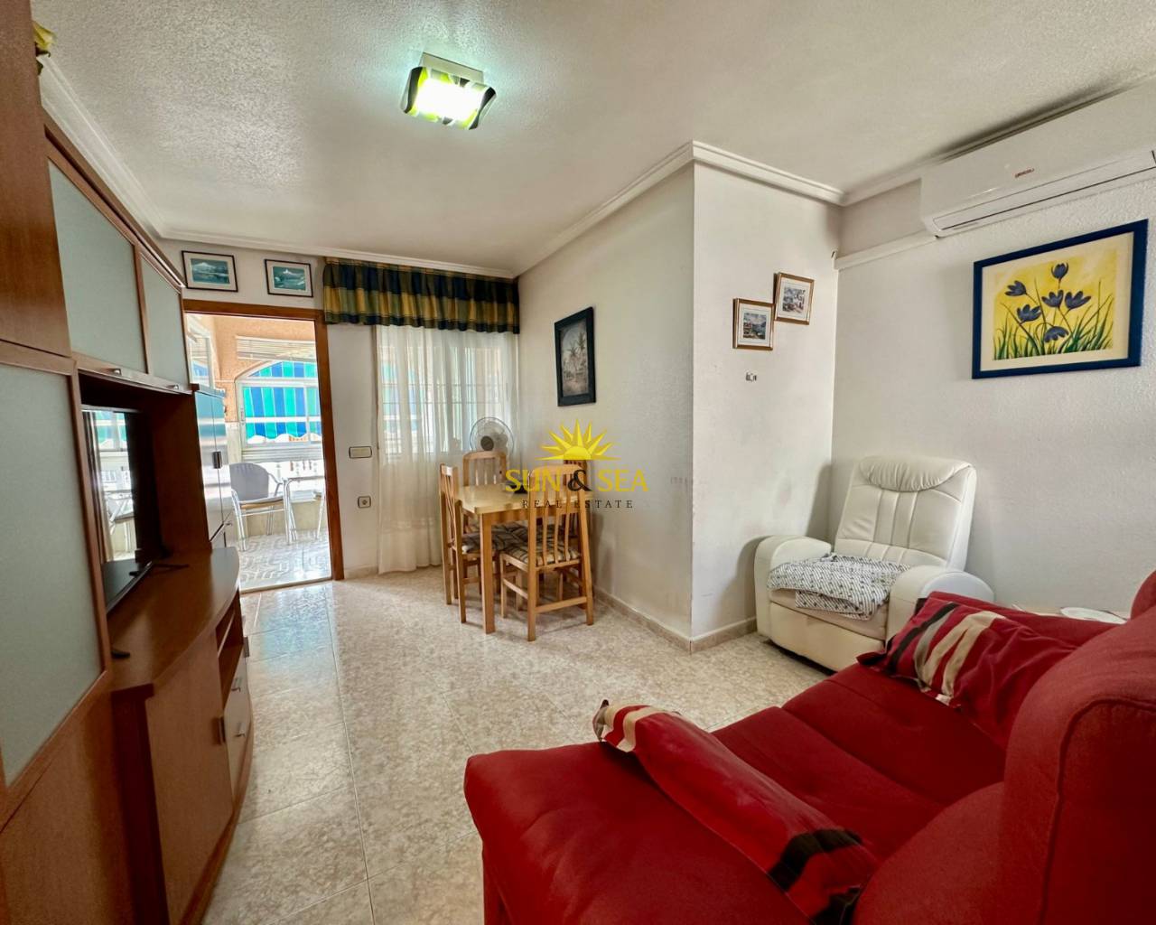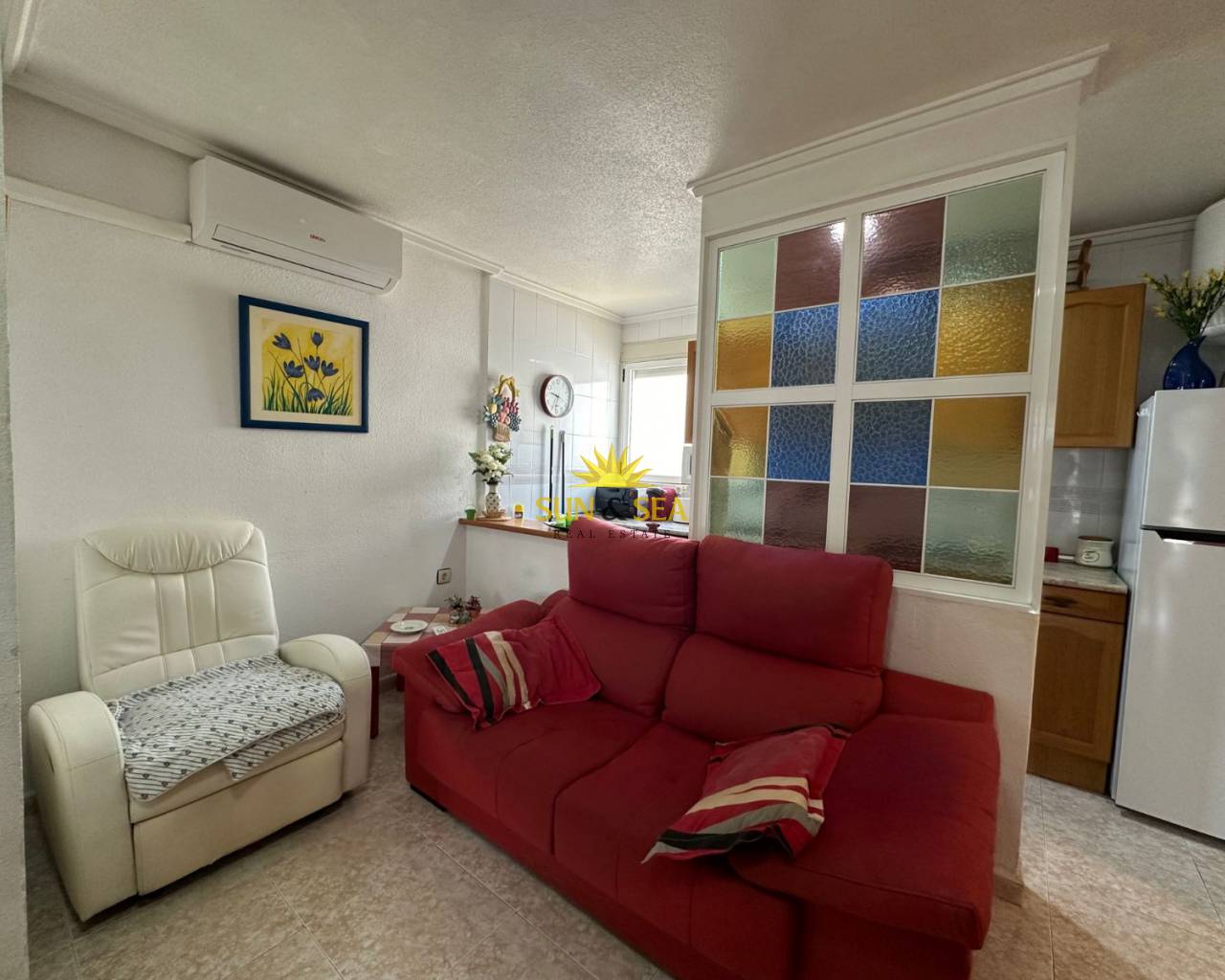 It has a total of 100m2 (60 m2 of the house) and a large solarium with views of the pink lagoons. Then living/dining room with kitchen, glazed terrace, 3 bedrooms (1 of them in solarium) and 1 bathroom. Residential with community pool.