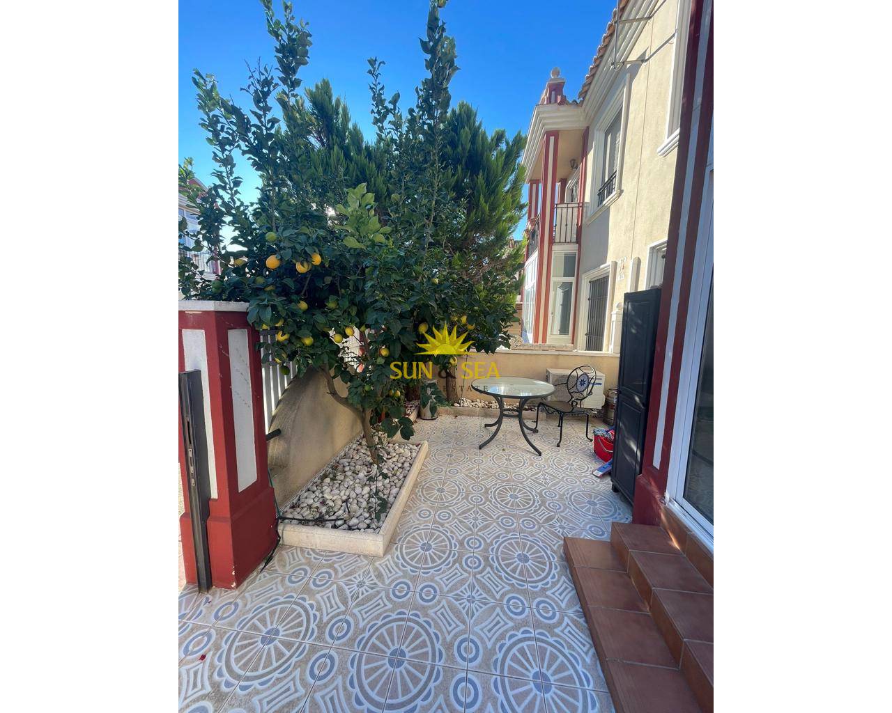 It has 100 m2 where there are 3 bedrooms, 2 bathrooms, open kitchen, living/dining room and garden with pool.