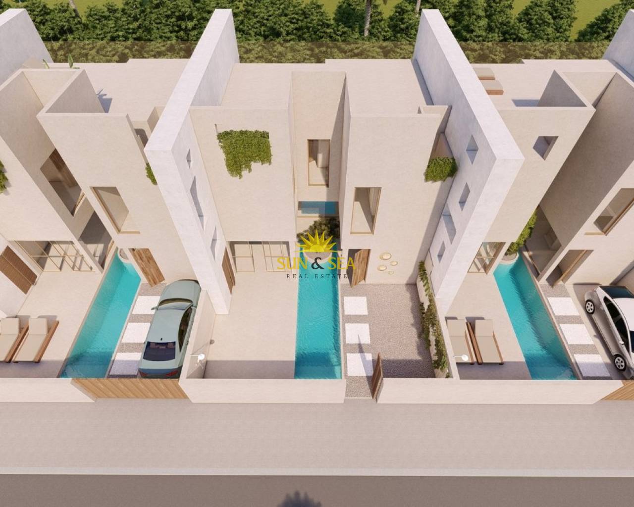 NEW BUILD CORNER TOWNHOUSES IN FORMENTERA DEL SEGURA New Build unique residential of townhouses with a living area of 157m2, have an "Ibiza" style look, with soft and warm earth colours it immediately feels like an oasis of peace. Townhouses have 3 bedrooms and 2 bathrooms, open plan kitchen with living area, swimming pool of 18 meters built between terrace and parking space, private solarium with views over the beautiful countryside and valley of Formentera Del Segura. The living room and kitchen area are made of glass, which ensures that the maximum amount of light enters the house. Popular village of Formentera Del Segura juts a short drive from the villages of Benijofar and Rojales, and only a 10 minute drive to the golden sandy beaches of Guardamar Del Segura. This Traditional Spanish town within easy walking distance of all its amenities, with everything you could need. Complex located 30 minutes from Alicante airport and 1 hour Murcia - Corvera airport.