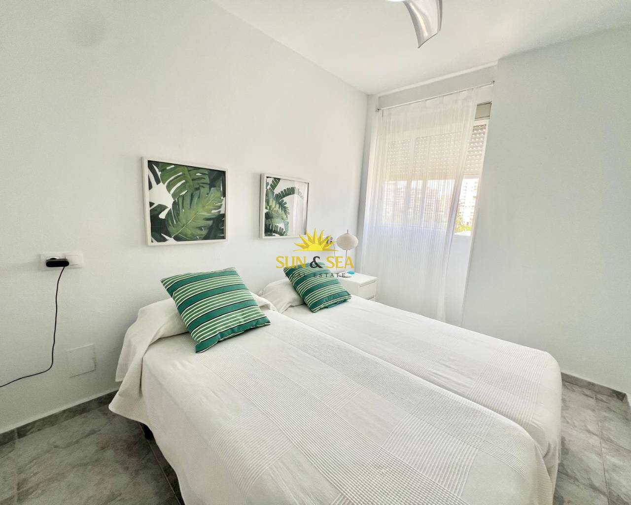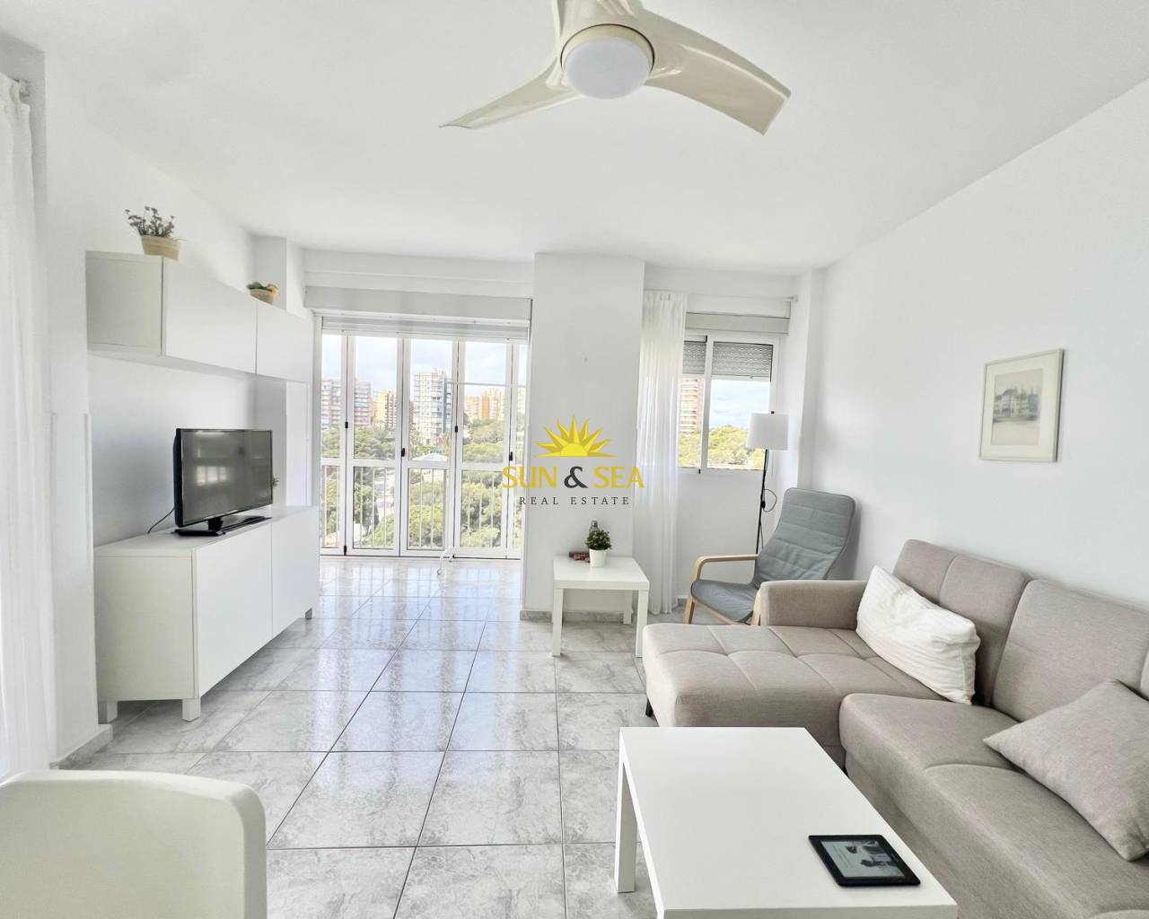It features two bedrooms, two full bathrooms, and 70 m² of built area, totaling 90 m², ensuring enough space for both couples and families. The apartment has an elevator, is furnished, and its east-facing terrace offers beautiful sea views and excellent natural light.