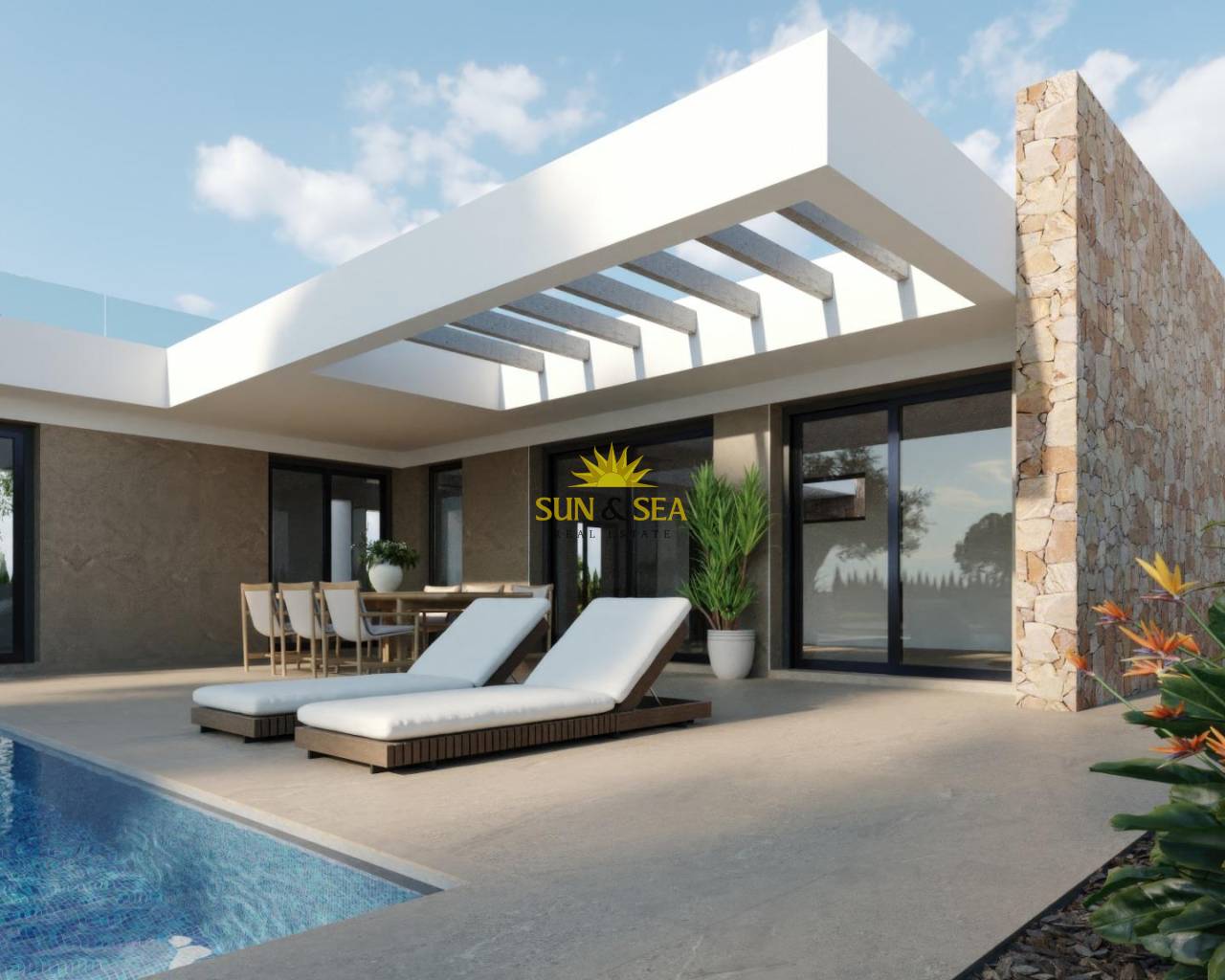 New Build Villas in Hacienda del Álamo Golf Resort, Murcia Modern Homes in an Exclusive Natural Setting Discover these fantastic new-build villas in the prestigious Hacienda del Álamo Golf Resort, a gated community in the region of Murcia that combines tranquillity, security and a full range of services. Surrounded by nature and blessed with a privileged climate, this complex is ideal for those seeking a relaxed lifestyle without sacrificing comfort. 3-bedroom villas on one floor with solarium The residential complex consists of 15 villas on plots starting at 550 m². All homes have 3 bedrooms and 2 full bathrooms on one floor, as well as a terrace area with a private pool and a private solarium on the roof with views of the golf course. High-quality finishes and guaranteed comfort The homes are designed with high-quality materials and built to offer energy efficiency and well-being: Exterior carpentry with thermal break Hot water via aerothermal system Pre-installation of ducted air conditioning Private pool Independent irrigation water system with storage tank and individual pressure pump, with irrigation outlets in the carport and garden. Motorised vehicle access gate. A Resort with Full Services and Golf Course Hacienda del Álamo is one of the most complete complexes on the Costa Cálida. It has: 18-hole professional golf course Hotel with spa Supermarket Restaurants and bars Sports courts and green areas 24-hour security The development recreates the atmosphere of a traditional Mediterranean village, with quiet streets and a careful design. Strategic Location Close to Everything Murcia International Airport (Corvera): 20 km Additional golf courses: less than 10 km Cartagena: 35 km Mar Menor beaches: 30 km Espacio Mediterráneo shopping centre: 28 km Port of Mazarrón: 40 km Live in style on the Costa Cálida These villas represent an excellent opportunity to live or invest in one of the most promising areas of Murcia. Contact us now and discover your next home at Hacienda del Álamo Golf Resort.