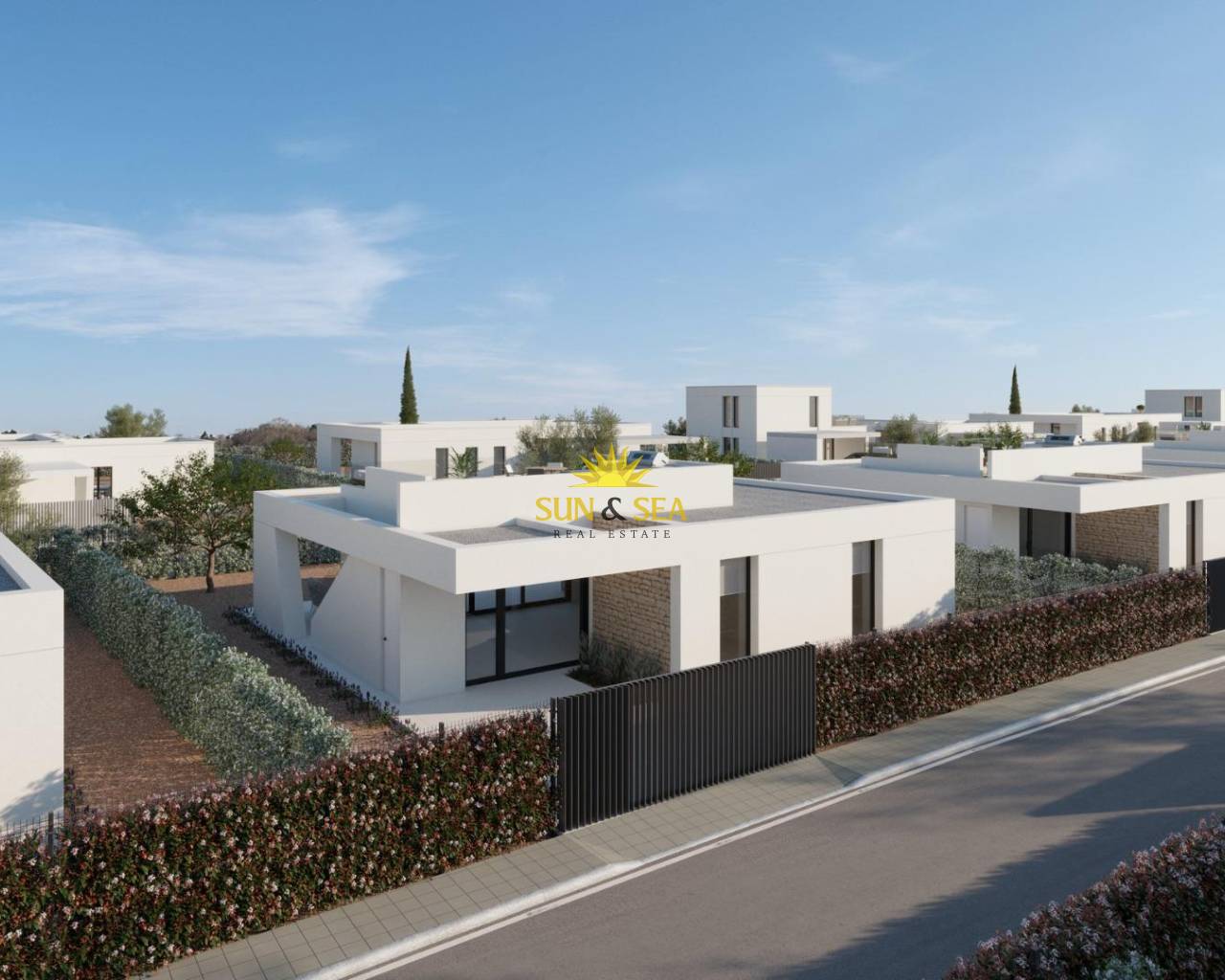 Exclusive villas at Hacienda del Álamo Golf Resort, Costa Cálida Modern villas in one of Spain's finest golf resorts Discover a unique opportunity to purchase a newly built villa at an exceptional price in the Hacienda del Álamo Golf Resort, located between the historic cities of Cartagena and Murcia, in the heart of the Costa Cálida. These contemporary villas are designed to offer comfort, privacy and elegance, and are set in an exceptional environment dedicated to golf and leisure. Each property offers a spacious layout with 3 bedrooms and 2 bathrooms on one floor. Private rooftop solarium. With plots starting at 378 square metres and a built area of 111 square metres, these homes offer ample space for indoor and outdoor living. High-quality features and finishes These villas are equipped with all modern amenities to ensure maximum comfort and style, including: Garden with drip irrigation system Fully equipped kitchen with cupboards and appliances included Pre-installation of ducted air conditioning Bathrooms with furniture, mirrors and shower screens Aluminium windows with thermal break and double glazing Access to a large communal swimming pool with natural grass and children's play area Possibility of adding a private swimming pool at an extra cost Luxury living at Hacienda del Álamo Golf Resort Hacienda del Álamo is renowned as one of Spain's finest golf resorts, offering its residents a relaxed, sporty and comfortable lifestyle. 18-hole golf course and academy Sports facilities including tennis, paddle tennis, gym and fitness classes Main clubhouse with panoramic views, a Mediterranean restaurant and sunny terraces 4-star hotel and spa for relaxation and well-being Spaces for the whole family, with children's play areas, swimming pools and bike lanes. Traditional Spanish village with shops, cafés and new restaurants opening soon. Strategic location with excellent connections Corvera Airport (Murcia): 18 km (approx. 15 minutes) Cartagena: 36 km Murcia city centre: 40 km Mar Menor beaches: 28 km Shopping centres (Dos Mares, Espacio Mediterráneo): less than 30 km Your dream home next to the golf course awaits you Whether you are looking for a permanent residence, a holiday retreat or a smart investment on the Costa Cálida, these golf course villas at Hacienda del Álamo are the perfect choice. Contact us today for more information or to arrange a personalised viewing.