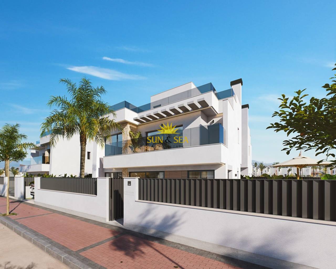 Modern Semi-Detached Villas at Santa Rosalía Lake and Life Resort - A New Standard of Mediterranean Luxury Contemporary Design Inspired by the Mediterranean Discover these exclusive new semi-detached villas located in the prestigious Santa Rosalía Lake and Life Resort, a unique residential destination on the Costa Cálida. Inspired by Mediterranean architecture, these villas combine clean lines, natural light, and modern comfort to create a harmonious and elegant living environment. Each villa is designed to provide a perfect balance between luxury and relaxation, making it ideal as a permanent residence, holiday home, or investment opportunity. Spacious Layout and High-End Finishes Each villa offers 220 m² of living space distributed across a basement, two main floors, and a rooftop solarium, set on generous 295 m² plots. The homes feature 4 bedrooms and 4 bathrooms (3 en suite), providing ample space for family and guests. The private pool with jacuzzi area, large terraces, and rooftop solarium with summer kitchen and toilet invite you to enjoy the region’s exceptional climate all year round. Premium specifications include: Fully furnished kitchen with Bosch appliances Bathrooms with furniture, mirrors, shower screens, and towel heaters Armoured entrance door and motorized access gate for vehicles LED spotlights throughout the interior and exterior Ducted air conditioning (installed on both floors) Private pool with jacuzzi area 2 photovoltaic solar panels for energy efficiency Summer kitchen in the garden Underground level with English patio for natural light and ventilation Resort-Style Living at Santa Rosalía Santa Rosalía Lake and Life Resort is a private, gated community with 24-hour security, designed around an impressive 126,000 m² of green areas. Residents enjoy walking and cycling paths, sports facilities, paddle and tennis courts, mini-golf, gardens, dog parks, and leisure zones. The clubhouse and the resort’s centerpiece-a stunning 17,000 m² crystal-clear lagoon surrounded by white sandy beaches and palm trees-offer a true Caribbean-inspired lifestyle. The lagoon even features two islands, one with its own bar, and several beach chiringuitos for relaxed dining. Prime Location on the Costa Cálida The development enjoys a central location within the resort, close to the lagoon and beach club. It’s less than 4 km from Los Alcázares Beach, 15 minutes from Cartagena, and only 22 km from Murcia International Airport. Golf enthusiasts will find several top-rated courses within a short drive, while local marinas, restaurants, and shopping areas complete the vibrant lifestyle offering. Your Exclusive Mediterranean Retreat Awaits Experience the perfect combination of luxury, comfort, and wellbeing in the heart of the Costa Cálida. Contact us today to schedule a visit and discover your dream villa at Santa Rosalía Lake and Life Resort.