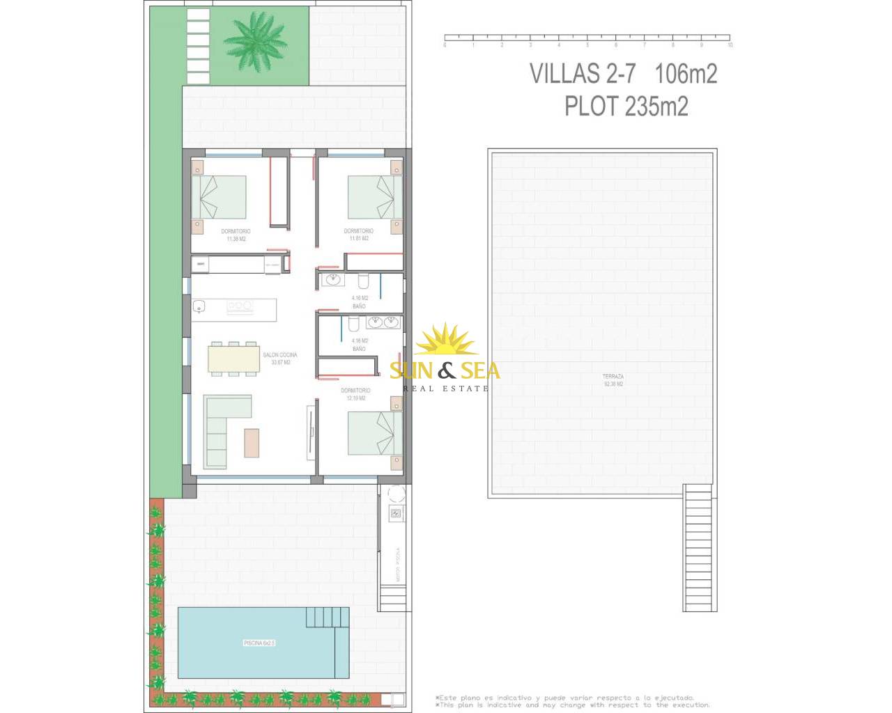 New Build Villas Near Serena Golf in Los Alcazares Modern Villas in a Prime Coastal and Golf Location This exclusive new build residential project offers modern villas located in Los Alcazares, just a short distance from the prestigious Serena Golf and only 1.2 km from the sandy beaches of the Mar Menor. Set in one of the most attractive areas of the Region of Murcia, these homes combine contemporary design, comfort and an excellent location close to the sea, golf and all daily services. Los Alcazares is a well established coastal town known for its relaxed lifestyle, long promenade, water sports and mild climate throughout the year. Single Level Design with Private Outdoor Spaces The development features stylish villas with 3 bedrooms and 2 bathrooms, available in two different built sizes of approximately 106 sqm and 130 sqm. The larger model also includes an additional guest toilet. All villas are designed on a single floor, offering practical and comfortable living. The open plan kitchen, dining and living area connects directly to a terrace and private garden with swimming pool, creating an ideal space for indoor and outdoor living. Each property also includes a private solarium and on plot parking. High Quality Finishes and Modern Equipment These villas are built with high quality materials and equipped with modern features. The fully fitted kitchens are available in white gloss or wood finish and include quartz worktops, stainless steel sink, induction hob with integrated extractor, oven, microwave, washing machine, integrated fridge and dishwasher. Bathrooms are fitted with furniture, mirrors, lighting and electric towel heaters. Additional features include electric blinds in bedrooms, LED lighting throughout the property and a complete ducted air conditioning system by Fujitsu. Private Pool and Energy Efficient Comfort Each villa includes a private swimming pool finished with blue ceramic tiles, integrated steps and white LED lighting. The pool is prepared with pre installation for a heat pump. The combination of efficient climate control, modern construction and thoughtful design ensures comfort all year round. Excellent Connectivity and Key Distances The villas are within walking distance of the town centre of Los Alcazares and very close to Serena Golf. The beach is approximately 1.2 km away. Cartagena city is around 20 km away, offering a rich cultural and gastronomic scene. Murcia Corvera International Airport is about 22 km away, and Alicante Airport is approximately 90 km. Several golf courses and marinas are also nearby, making this location ideal for both permanent living and holidays. Your Ideal Home by the Sea and Golf If you are looking for a modern new build villa near the beach and golf in Los Alcazares, contact us today for more information or to arrange a private viewing.
