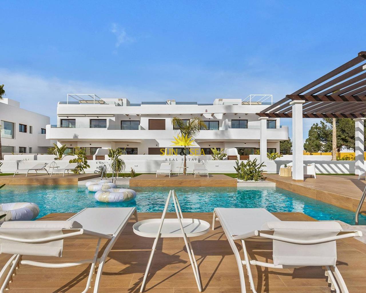New Build Residential Complex Near Serena Golf and the Mar Menor in Los Alcazares Modern Coastal Living on the Costa Calida Discover this attractive new build residential complex located in Los Alcazares, one of the most popular seaside towns on the Costa Calida. Situated just 500 m from the beaches of the Mar Menor and within walking distance of the town center, this development offers an excellent combination of coastal living, golf surroundings and everyday convenience. Los Alcazares is well known for its relaxed atmosphere, long promenades, warm shallow waters and a wide range of restaurants, shops and services open all year round. Contemporary Apartments Designed for Comfort The development consists of 29 modern homes with 2 or 3 bedrooms, designed with clean architectural lines and high quality finishes. Buyers can choose between ground floor apartments with private garden and terrace, middle floor homes with spacious terraces, or penthouses with private terrace and rooftop solarium offering open views. Many of the properties enjoy views towards Serena Golf and the Mar Menor, creating a calm and pleasant living environment. All homes are designed to maximize natural light and functionality, making them ideal as a permanent residence, holiday home or investment property. High Quality Features and Communal Areas Each property includes a private parking space and a storage room. The specifications are designed to provide comfort and energy efficiency, including double glazed windows with thermal break, pre installation of ducted air conditioning, aerothermal system for domestic hot water, electric shutters in bedrooms and a complete interior and exterior lighting package. Bathrooms are delivered fully equipped with furniture, mirror and shower screen. Residents can enjoy attractive communal areas with landscaped gardens and a communal swimming pool, perfect for relaxing and enjoying the Mediterranean climate. Selected blocks are equipped with lifts for added convenience. Prime Location Between Golf and Sea This residential complex enjoys a privileged location next to Serena Golf, one of the most renowned golf courses in the area, and just a short walk from the calm waters of the Mar Menor. The area is ideal for swimming, sailing, paddleboarding and other water sports throughout the year. Key distances include Mar Menor beaches at 0.5 km, Serena Golf directly next to the development, Los Alcazares town center at 2 km, Cartagena at 22 km and Murcia city at 40 km. Murcia Corvera Airport is approximately 30 km away and Alicante Airport is around 90 km. An Ideal Home or Investment Opportunity With its excellent location, modern design and proximity to both golf and the sea, this new residential complex in Los Alcazares offers an outstanding lifestyle opportunity on the Costa Calida. Contact us today to receive more information or to arrange a private viewing and secure your new home by the Mar Menor.