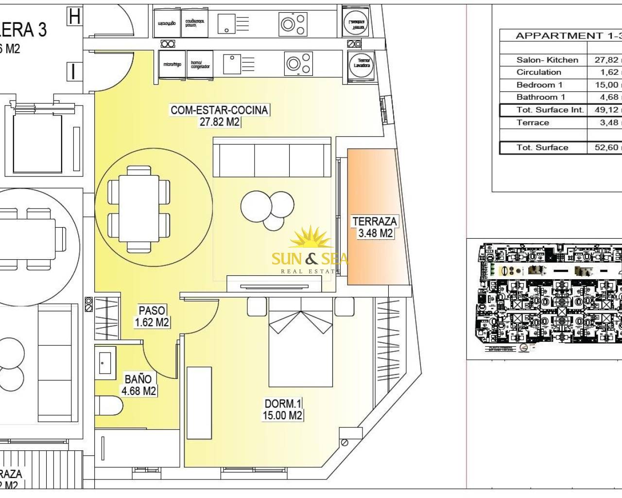 Современные новостройки в центре Сан-Мигель-де-Салинас Современная жизнь в здоровой средиземноморской среде Расположенный в очаровательном городке Сан-Мигель-де-Салинас, всего в 10 км от Средиземного моря, этот новый жилой комплекс предлагает идеальный баланс между современным комфортом и природным окружением. Этот район хорошо известен своими соляными озерами и исключительным микроклиматом, считающимся одним из самых здоровых в Европе. Этот тихий, но оживленный городок позволяет жителям наслаждаться аутентичным средиземноморским образом жизни, находясь в нескольких минутах ходьбы от магазинов, ресторанов, супермаркетов и всех необходимых услуг. Сан-Мигель-де-Салинас расположен немного вглубь суши на юге Коста-Бланки, предлагая открытые виды, свежий воздух и легкий доступ к пляжам, полям для гольфа и торговым районам. Стильные апартаменты, спроектированные для комфорта и эффективности Проект состоит из двух современных зданий, разделенных ландшафтным общим садом. Всего доступно 56 современных апартаментов с 1, 2 или 3 спальнями, каждая из которых имеет собственную террасу. Каждый дом был спроектирован с учетом комфорта, эстетики и энергоэффективности, с использованием высококачественных материалов и современных систем изоляции. Каждый апартамент включает: Бронированная входная дверь Ванные комнаты с туалетными столиками Предварительная установка канального кондиционера Энергетический сертификат класса A Планировка и ориентация домов обеспечивают естественное освещение в течение всего дня, создавая светлые и уютные интерьеры, идеально подходящие как для постоянного проживания, так и для отдыха. Исключительные общие зоны для отдыха и социальной жизни Общая зона на первом этаже спроектирована как социальный центр комплекса, окруженный ландшафтными садами, зонами для отдыха, парковкой для велосипедов и детской игровой площадкой. Это идеальное место для встреч жителей всех возрастов. На крыше вас ждет впечатляющая зона отдыха площадью 350 м2. Это пространство включает в себя бассейн площадью 70 м2 с отдельной детской зоной для купания, перголы, шезлонги и тенистые зоны, позволяющие жильцам расслабиться, наслаждаясь панорамным видом. На крышу легко добраться на одном из трех лифтов, а для дополнительного комфорта здесь есть санузлы. Отличное расположение рядом с ключевыми достопримечательностями Средиземноморские пляжи 10 км Торговый центр Zenia Boulevard 9 км Villamartin Golf 6 км Las Colinas Golf 8 км Пристань для яхт Торревьеха 12 км Аэропорт Аликанте 60 км Аэропорт Мурсия Корвера 55 км Умная инвестиция на юге Коста-Бланки Этот жилой комплекс сочетает в себе современную архитектуру, качественную отделку и выгодное центральное расположение, что делает его отличным выбором для проживания, отдыха или инвестиций в аренду. Свяжитесь с нами сегодня, чтобы получить дополнительную информацию или договориться о посещении этих современных апартаментов в Сан-Мигель-де-Салинас.