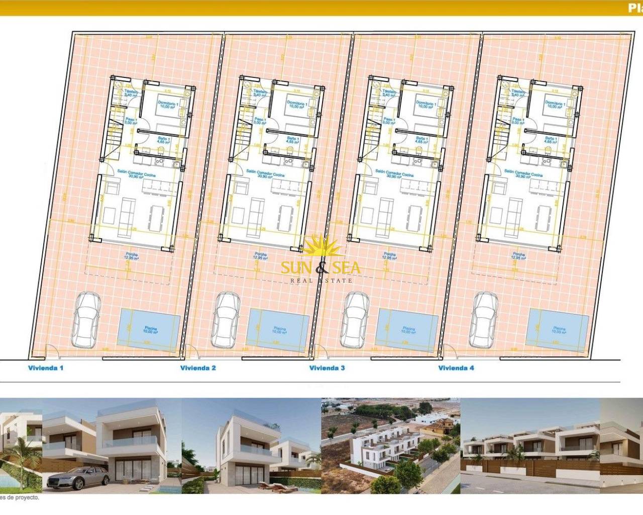 Новые виллы с частным бассейном в Пилар-де-ла-Орадада, недалеко от пляжа Эксклюзивный комплекс современных вилл на побережье Коста-Бланка Откройте для себя этот бутиковый комплекс, состоящий всего из четырёх отдельных вилл в Пилар-де-ла-Орадада — одном из самых привлекательных прибрежных городков на юге Коста-Бланки. Идеально расположенные всего в 2 км от пляжа Лас-Игерикас и в шаговой доступности от центра города, эти дома предлагают идеальное сочетание уединения, удобства и средиземноморского образа жизни. Расположенные в тихом жилом районе с ориентацией на юг, все виллы наслаждаются солнечным светом в течение всего дня, что делает их особенно привлекательными для иностранных покупателей, стремящихся к круглогодичной жизни на свежем воздухе. Современный дизайн с возможностью индивидуальной настройки Одной из отличительных черт этого комплекса является возможность персонализировать свой дом в соответствии с вашим образом жизни и предпочтениями. Эти современные виллы спроектированы с учетом функциональности и комфорта, сочетая чистые архитектурные линии с практичными жилыми помещениями. Каждый объект занимает два этажа плюс частный солярий на крыше. На первом этаже расположена просторная гостиная и столовая открытой планировки со встроенной кухней, прямым выходом на переднюю веранду, спальня, ванная комната и кладовая с выходом на задний дворик. На втором этаже находятся две дополнительные спальни и две ванные комнаты, включая главную спальню с ванной комнатой. Обе спальни имеют выход на частные террасы, создавая светлые и просторные помещения. Частный солярий и открытые жилые зоны Солярий на крыше предназначен для наслаждения средиземноморским климатом и оснащен летней кухней, душем на открытом воздухе, а также подготовкой для установки джакузи и солнечных панелей. Каждая вилла также имеет частный бассейн и парковочное место на участке. Эти открытые пространства создают идеальную обстановку для отдыха, приема гостей и наслаждения солнечным образом жизни на побережье Коста-Бланка круглый год. Высококачественная отделка и современные удобства Виллы построены в соответствии с высокими стандартами и оснащены такими премиальными удобствами, как усиленная бронированная дверь, полностью оборудованная кухня с бытовой техникой, канальная система кондиционирования, электрические жалюзи и аэротермальная система горячего водоснабжения. Ванные комнаты полностью оборудованы мебелью, зеркалами, душевыми перегородками и системой подогрева пола. Комплект светодиодного освещения и дополнительное место для хранения вещей еще больше повышают комфорт и функциональность. Превосходное расположение рядом с пляжами и полями для гольфа Пилар-де-ла-Орадада известна своим традиционным испанским шармом, оживленной главной улицей и отличными местными удобствами, включая магазины, рестораны и кафе. Из города легко добраться до некоторых из лучших пляжей и полей для гольфа в регионе. Основные расстояния: пляж Лас-Игерикас — 2 км, пляж Торре-де-ла-Орадада — 3 км, пляж Миль-Пальмерас — 3 км, гольф-клуб Ло-Ромеро — 6 км, международный аэропорт Мурсии — 45 км и аэропорт Аликанте — 75 км. Идеальная возможность для инвестиций или приобретения дома для отдыха Эти виллы нового строительства представляют собой отличную возможност