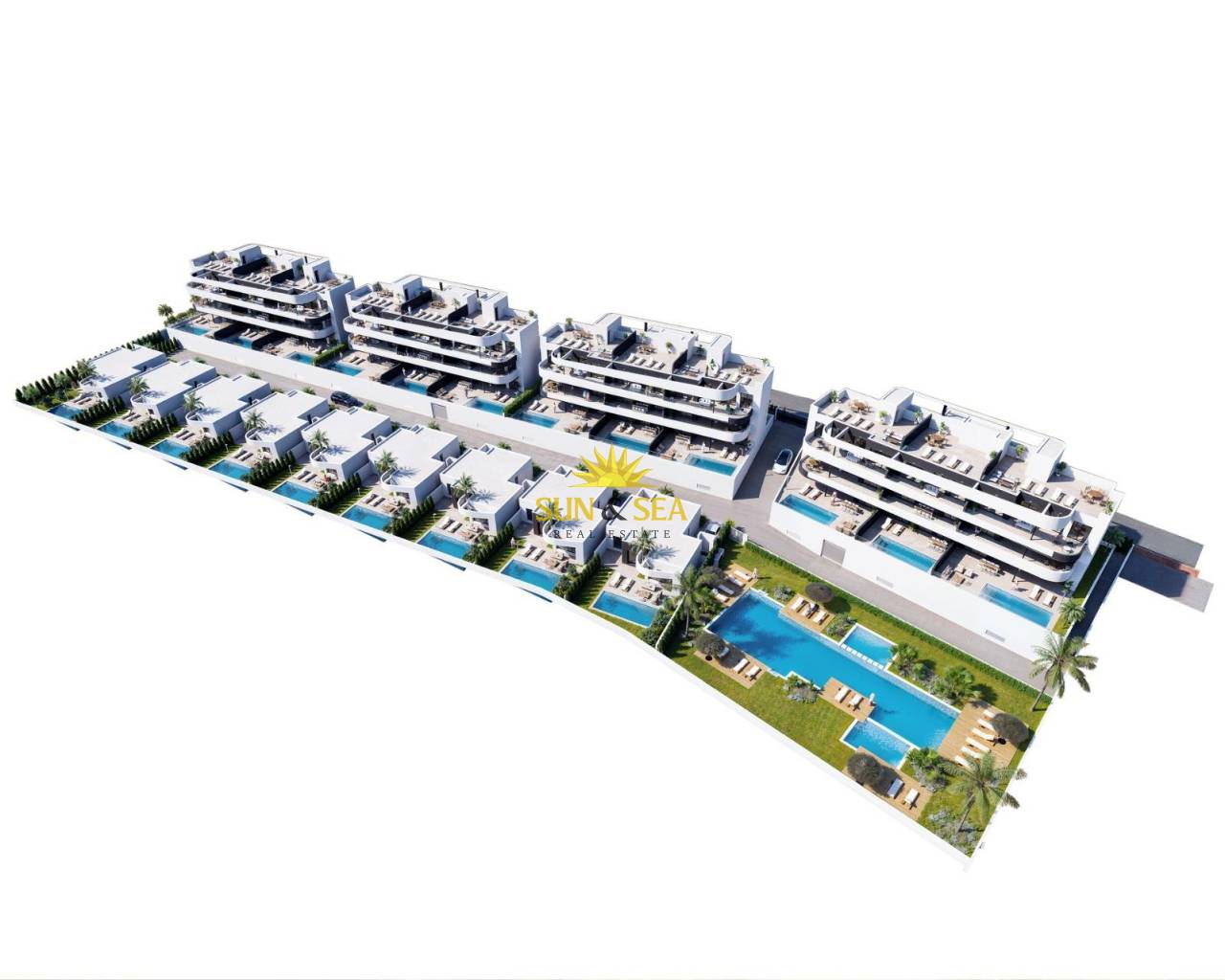 Новые апартаменты и виллы на берегу поля для гольфа La Serena Golf в Лос-Алькасарес Эксклюзивный жилой комплекс на берегу поля для гольфа La Serena Golf Откройте для себя этот исключительный новый жилой комплекс, расположенный на берегу поля для гольфа La Serena Golf в Лос-Алькасарес — одном из самых привлекательных прибрежных городков на побережье Коста-Калида. Этот эксклюзивный жилой комплекс предлагает первоклассный образ жизни в окружении природы, с открытыми видами и прямым доступом к знаменитому 18-луночному полю для гольфа, известному своим ровным рельефом, живописными озерами и техническими сложностями. Благодаря идеальному расположению всего в 1,7 км от пляжей Мар-Менор и центра города, жители могут наслаждаться как спокойствием, так и легким доступом к ресторанам, магазинам и всем необходимым услугам. Лос-Алькасарес хорошо известен своей непринужденной атмосферой, длинными набережными и теплыми мелководными пляжами, что делает его идеальным местом для круглогодичного проживания или отдыха. Современные апартаменты с террасами и частными соляриями Комплекс включает 36 современных апартаментов, распределенных по четырем блокам. Покупатели могут выбрать планировки с двумя или тремя спальнями и двумя ванными комнатами, включая ванную в спальне. Квартиры на первом этаже имеют просторные террасы с возможностью установки частного бассейна. Квартиры на промежуточных этажах располагают просторными открытыми террасами, а пентхаусы — частными соляриями, идеально подходящими для принятия солнечных ванн и трапезы на свежем воздухе. Все квартиры включают подземную парковку и кладовую с доступом на лифте. Комплекс также предлагает жильцам красивые ландшафтные сады в средиземноморском стиле и большой общий бассейн. Стильные одноуровневые виллы с частным бассейном Помимо квартир, комплекс предлагает девять эксклюзивных одноуровневых вилл. Эти дома имеют три спальни, две ванные комнаты и дополнительный гостевой туалет, и все они спроектированы так, чтобы обеспечить плавный переход между внутренним и внешним пространством. Каждая вилла включает частный бассейн, сад, кладовую и частную парковку. Просторный открытый подвал предоставляет дополнительное гибкое пространство, которое можно адаптировать под индивидуальные нужды, например, под тренажерный зал, зону развлечений или дополнительное хранилище. Высококачественная отделка и энергоэффективный дизайн Все объекты построены с использованием высококачественных материалов и в соответствии с современными стандартами. Особенности включают алюминиевые наружные столярные изделия с терморазрывом, полностью оборудованные ванные комнаты с туалетными столиками и стеклянными душевыми перегородками, а также предварительную установку для канальной системы кондиционирования и меблированные кухни в квартирах. Виллы оснащены полностью установленными системами кондиционирования и полностью оборудованными кухнями с бытовой техникой. В многоквартирных домах имеются лифты, обеспечивающие комфорт и доступность. Превосходное расположение рядом с полем для гольфа, пляжами и инфраструктурой Этот комплекс предлагает отличное транспортное сообщение с ключевыми достопримечательностями. Международный аэропорт Мурсии находится в 35 км, а аэропорт Аликанте — в 95 км. Пристань для яхт Л