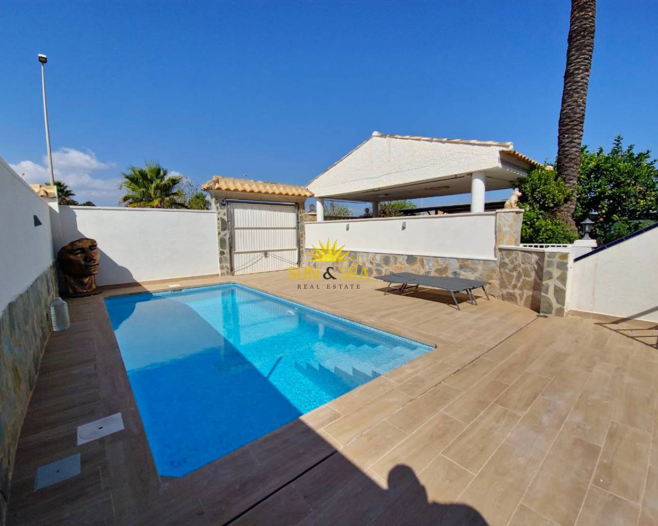 Дом готов к заселению, полностью отремонтирован. Сдается с мебелью и оборудованием. Он имеет площадь 70 м2, 3 спальни и 1 ванную комнату, оборудованную открытую кухню с посудомоечной машиной, гостиную с террасой. Кондиционеры. Сад с частным бассейном, парковка на участке.