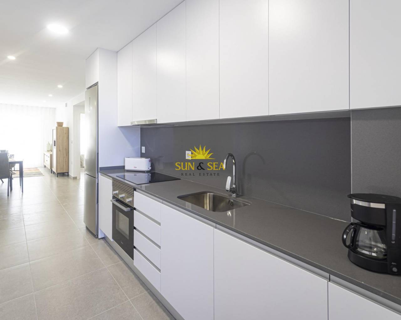 КРАСИВЫЕ КВАРТИРЫ С ВИДОМ НА МОРЕ В ЛА МАНГЕ Эта урбанизация расположена в самой большой зоне расширения Ла-Манги. В этой новой урбанизации дома были спроектированы с учетом всех углов дома, а также тщательности при выборе материалов и их дизайна. Квартиры с бронированной входной дверью и дверями, покрытыми белым лаком, с фурнитурой из нержавеющей стали. Белые, моноблочные жалюзи и стеклопакеты с воздушной камерой. В главной спальне встроенный шкаф с раздвижными дверцами, с разделительной полкой в антресоли, барной стойкой и комодом с тремя ящиками. Кухня с мебелью белого цвета, ручка типа «гола», единственная мойка с крылом для сушки, керамическая плита, электрическая духовка и вытяжка. Предварительная установка кондиционирования воздуха (холода и тепла) по воздуховодам с обеспечением зонирования помещений. Ла-Манга-дель-Мар-Менор - это естественная полоса земли, окруженная двумя морями, Мар-Менор и Средиземным морем. К этой редкости можно добавить множество вариантов досуга и свободного времени, рестораны, супермаркеты, медицинские центры, аптеки, центры морского спорта, поля для гольфа. Ла Манга расположена на северном побережье Коста Калида и является популярным местом отдыха туристов. Узкая полоса суши, разделяющая теплую лагуну и более холодное море, обладает уникальным микроклиматом. Это один из самых экзотических уголков Испании. Поездка до аэропорта Корвера занимает около 1 часа, а до аэропорта Аликанте - около 2 часов
